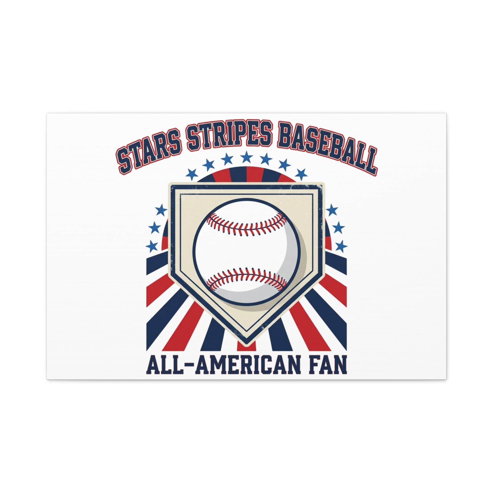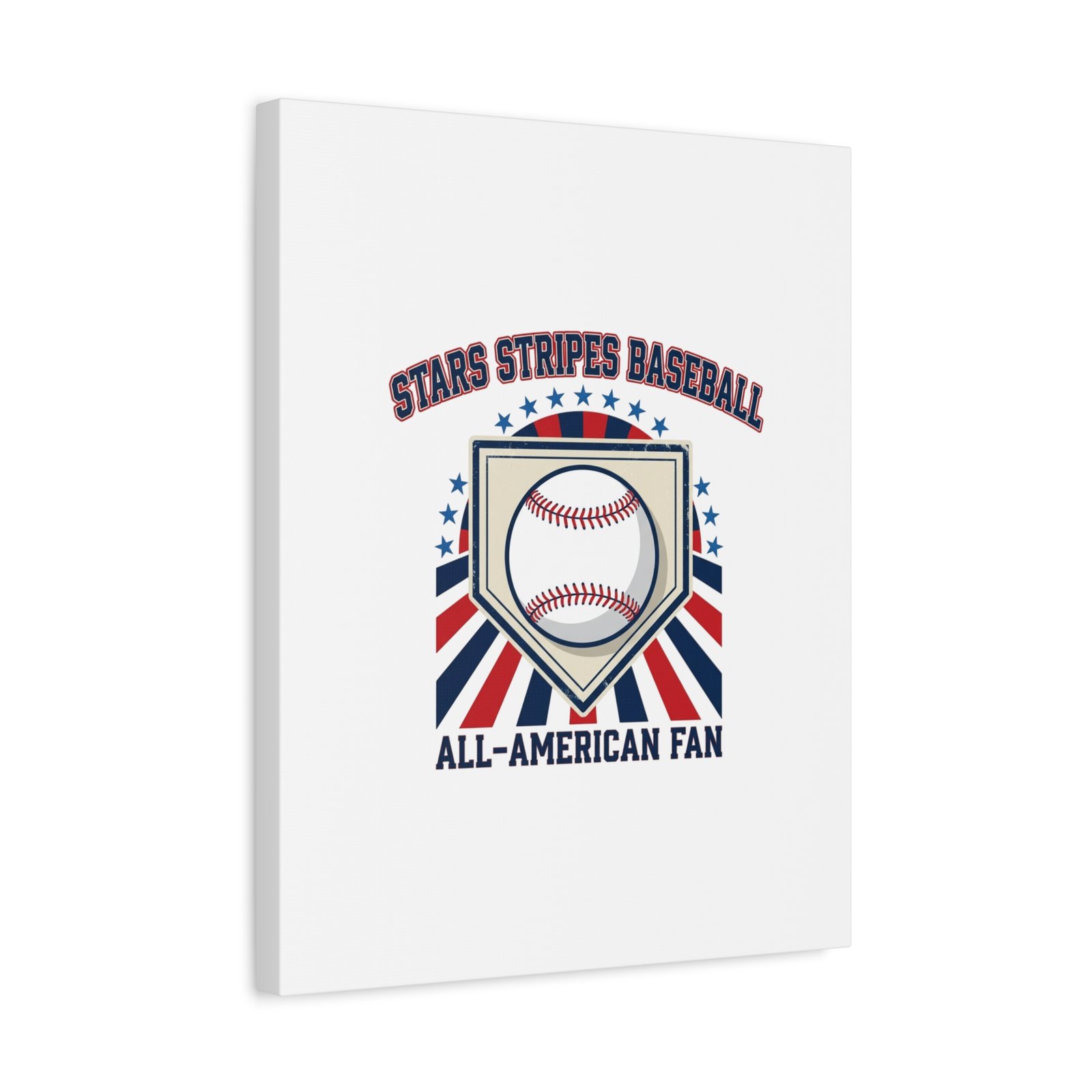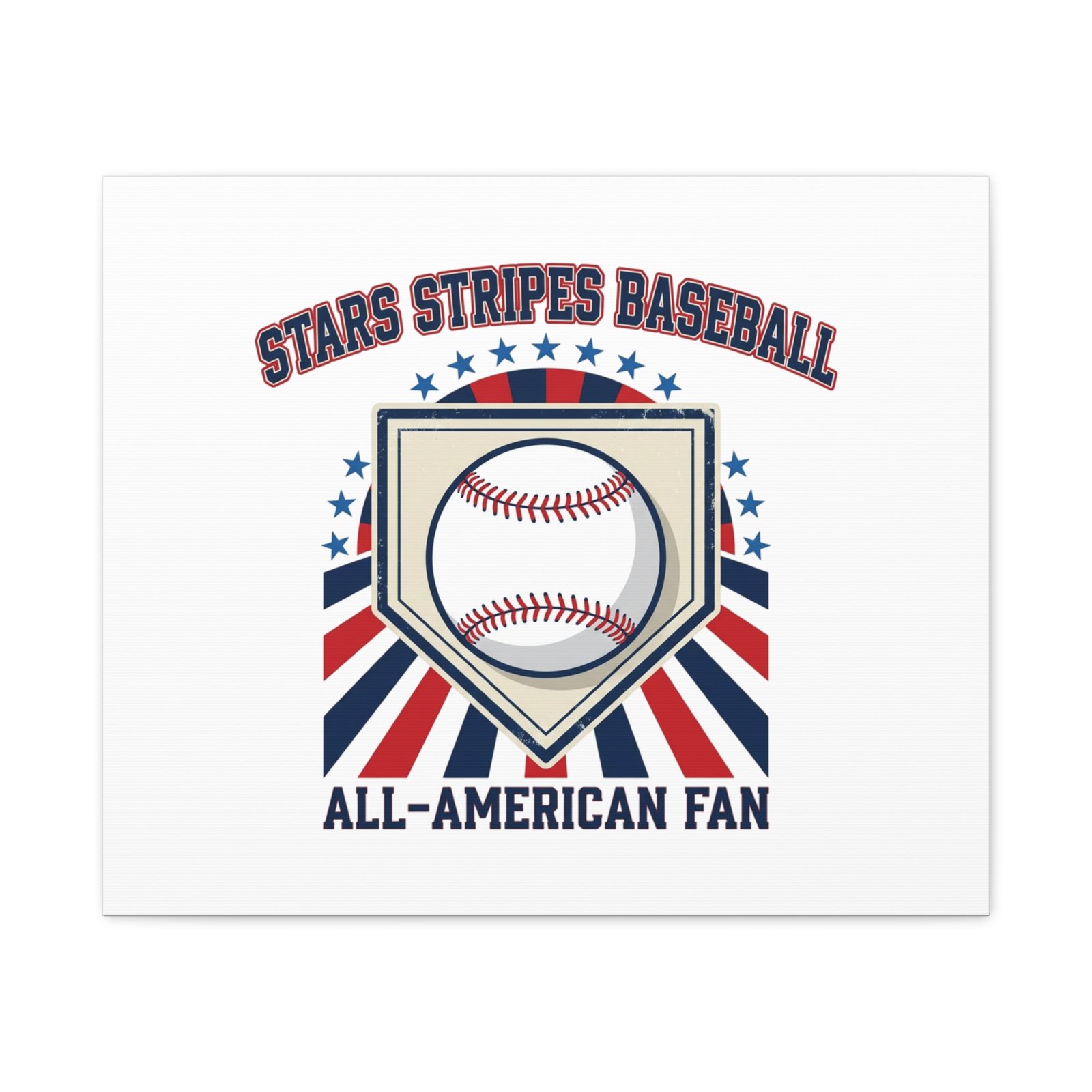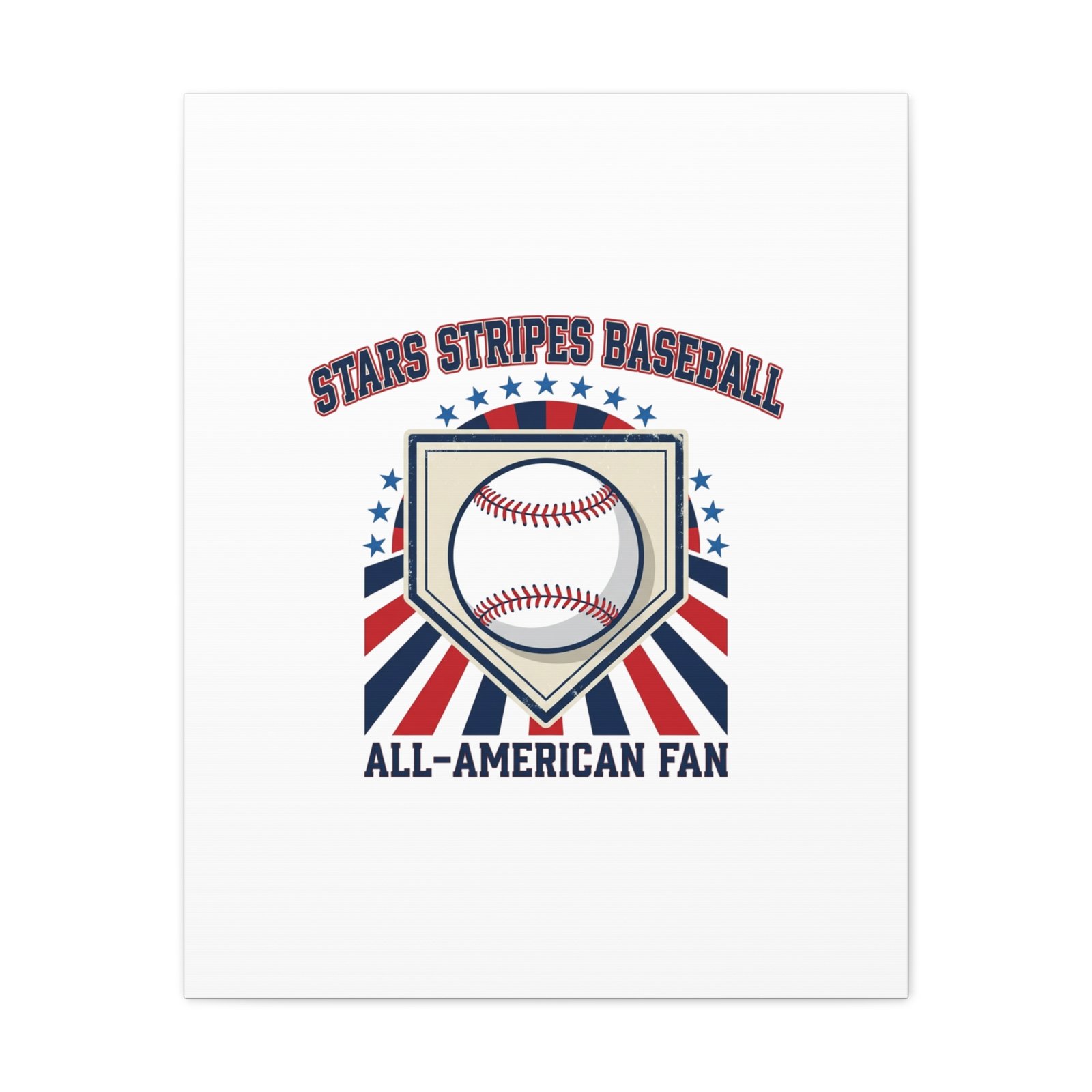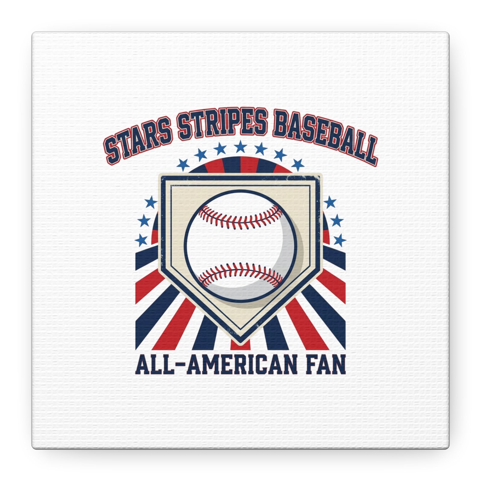 All-American Baseball Canvas | Patriotic Baseball Wall Art, Vintage Ballpark Aesthetic
