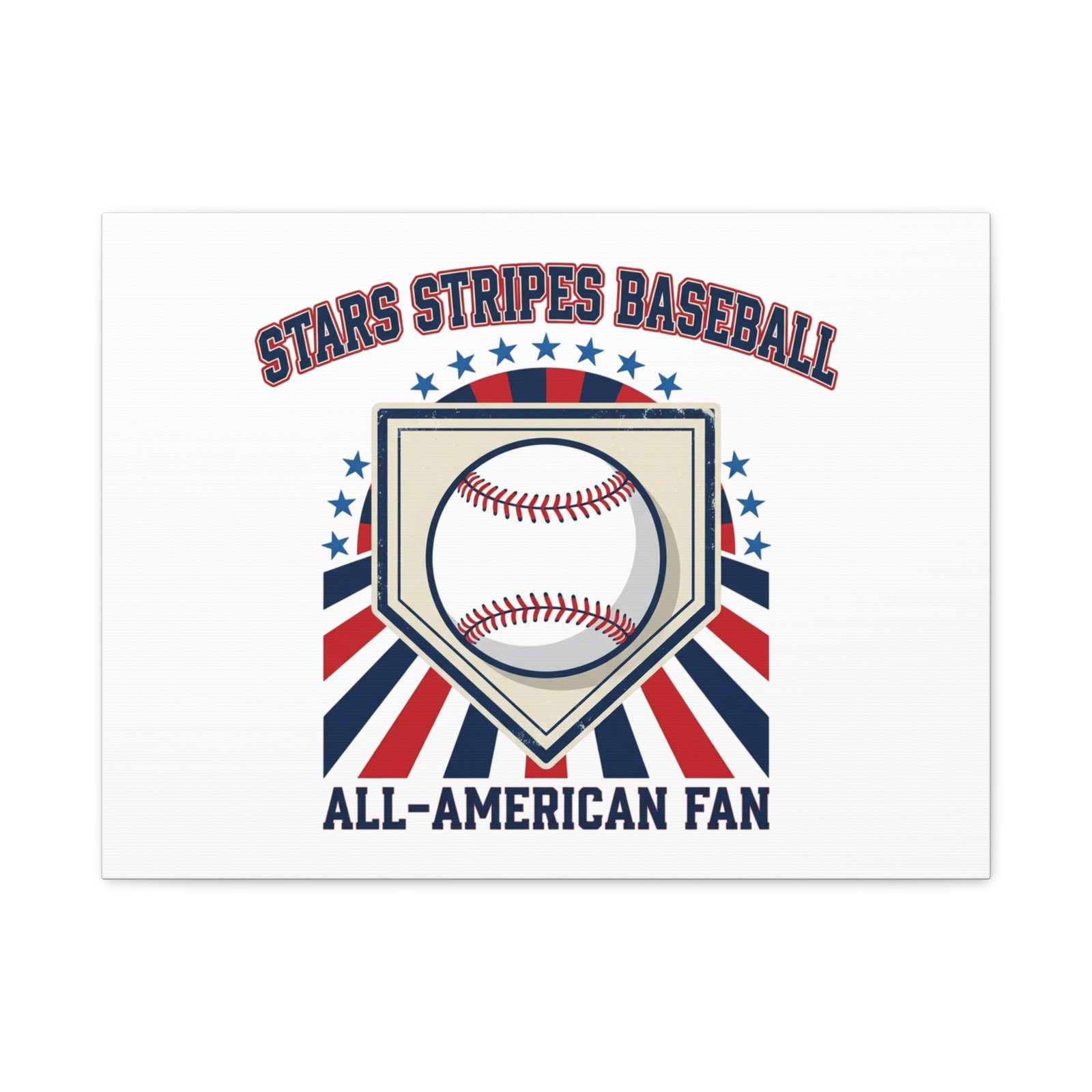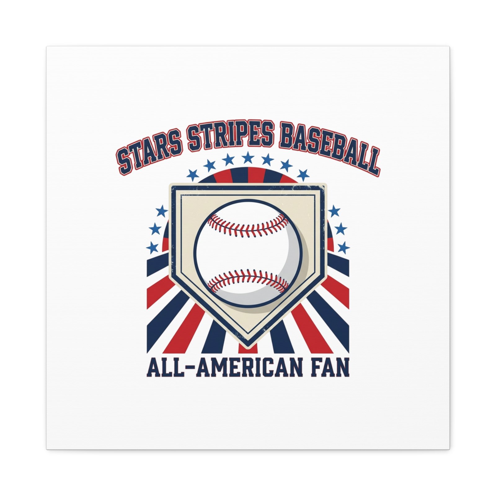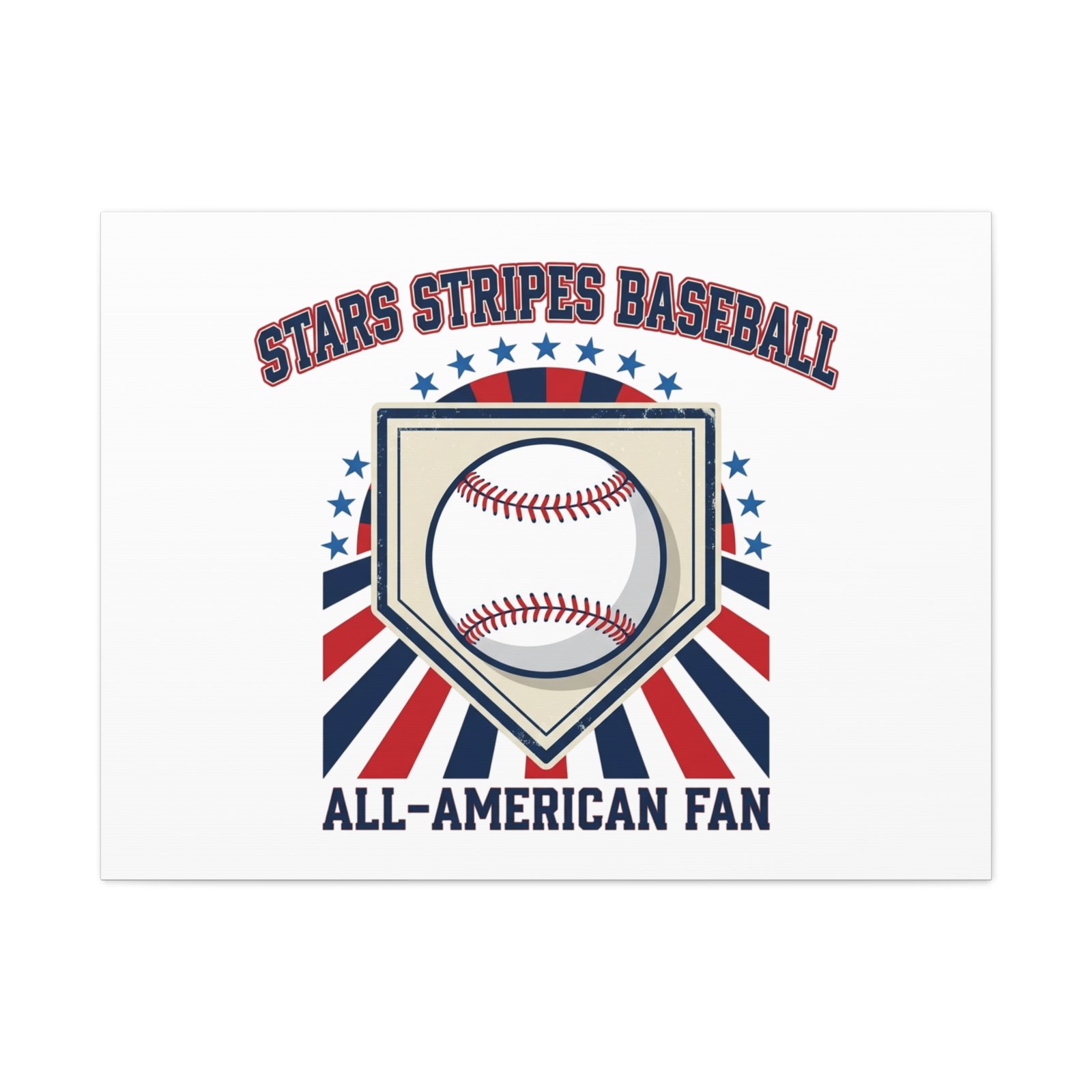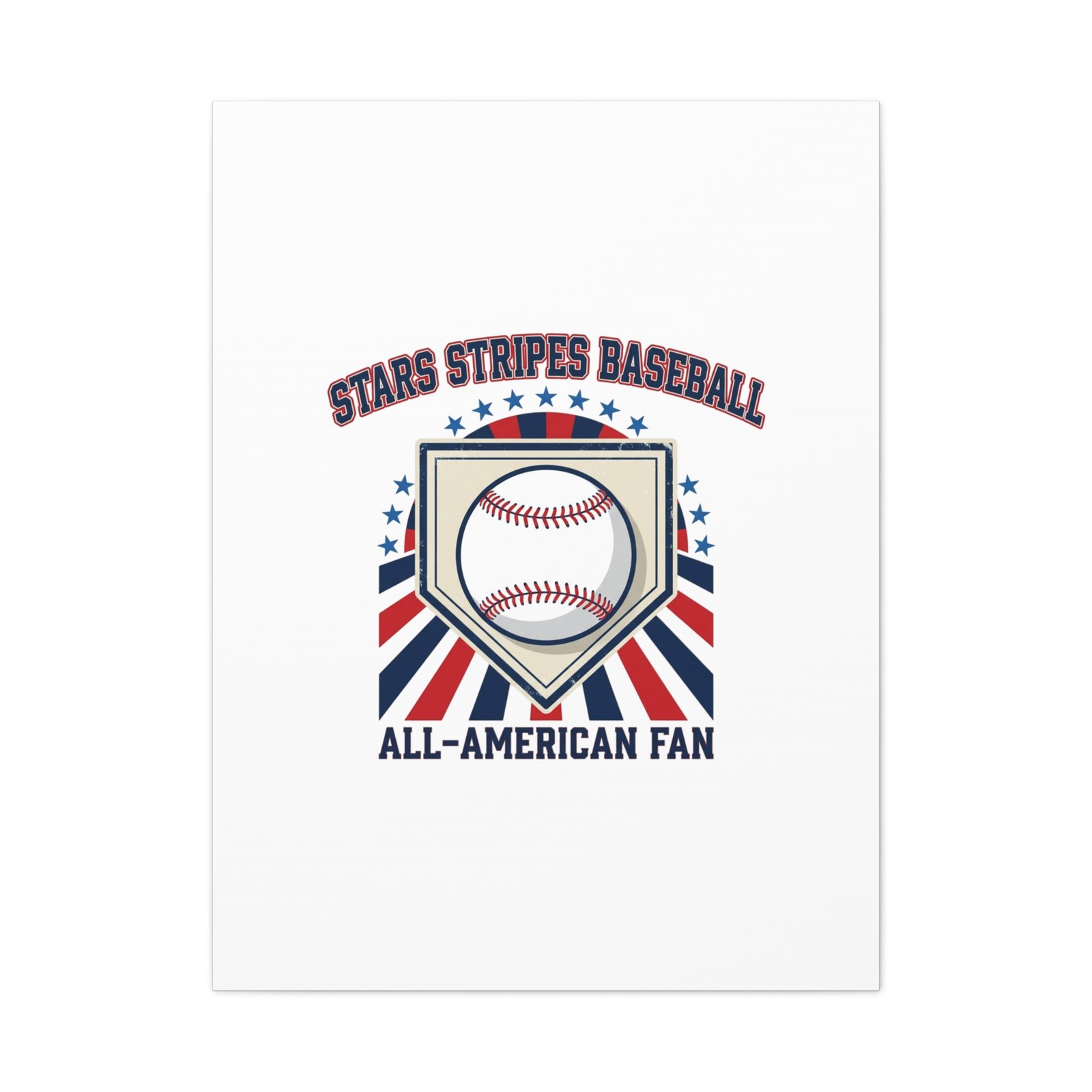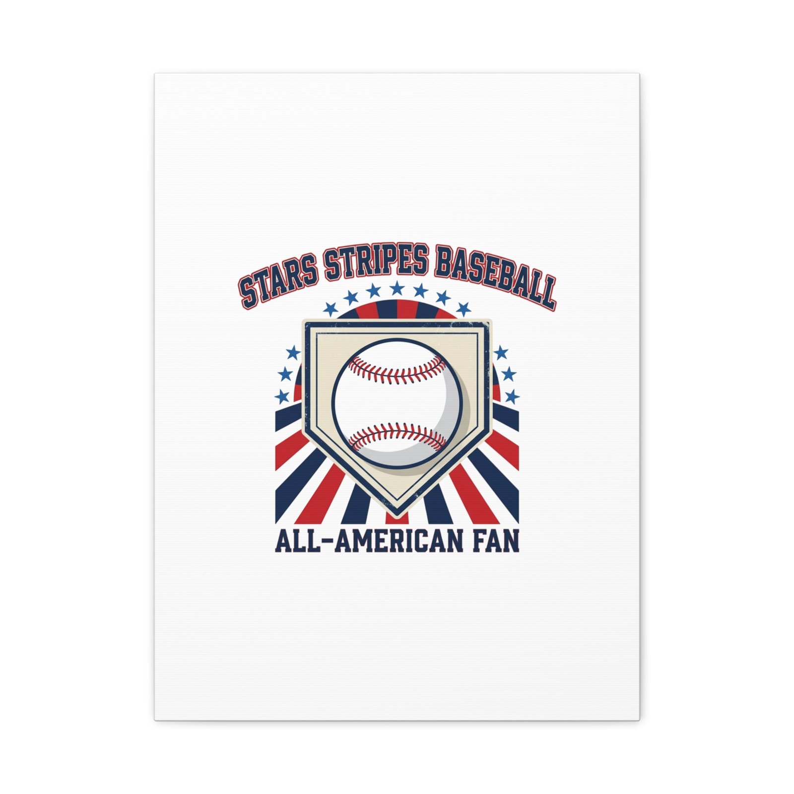 All-American Baseball Canvas | Patriotic Baseball Wall Art, Vintage Ballpark Aesthetic