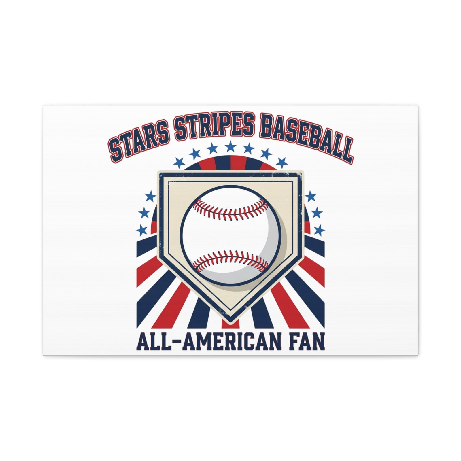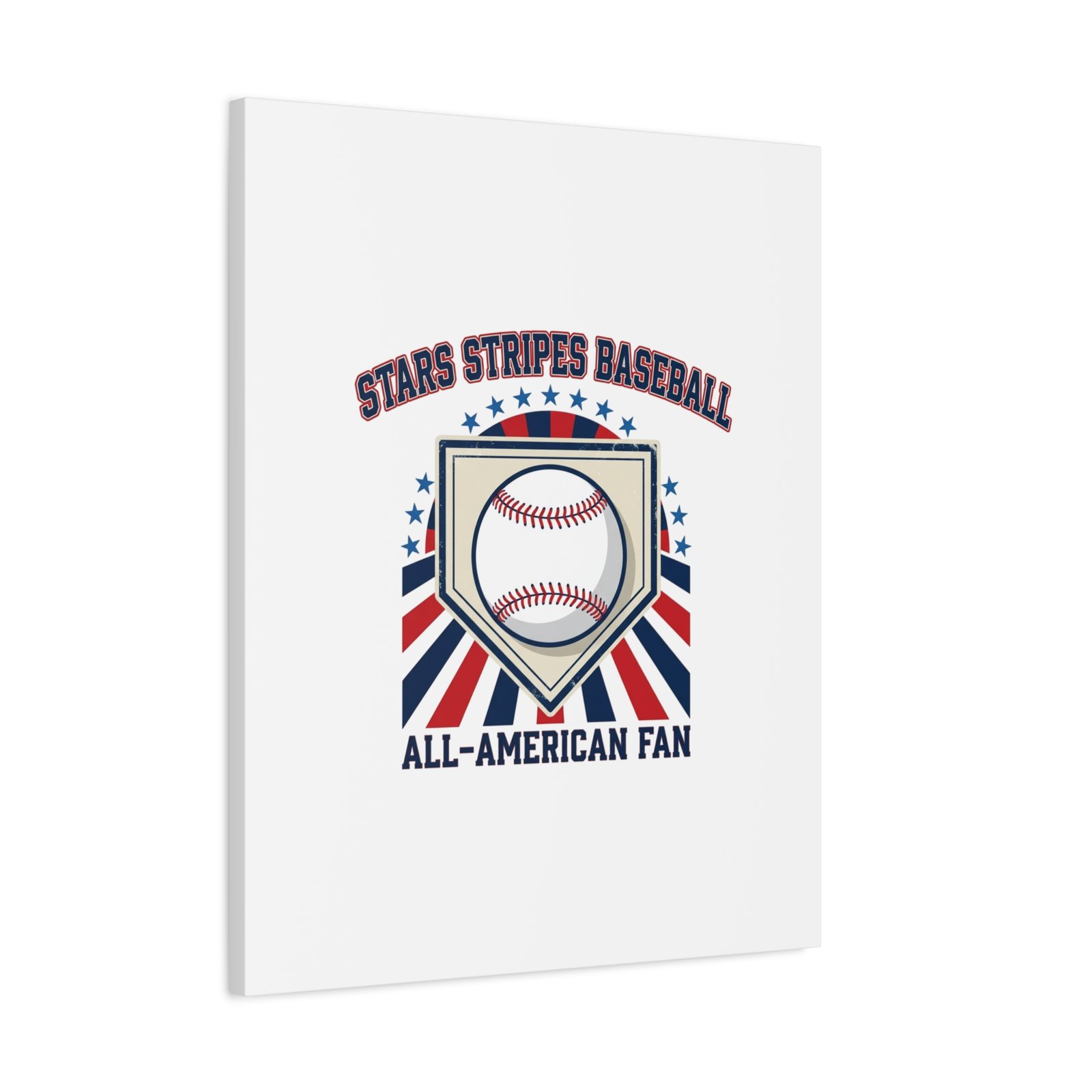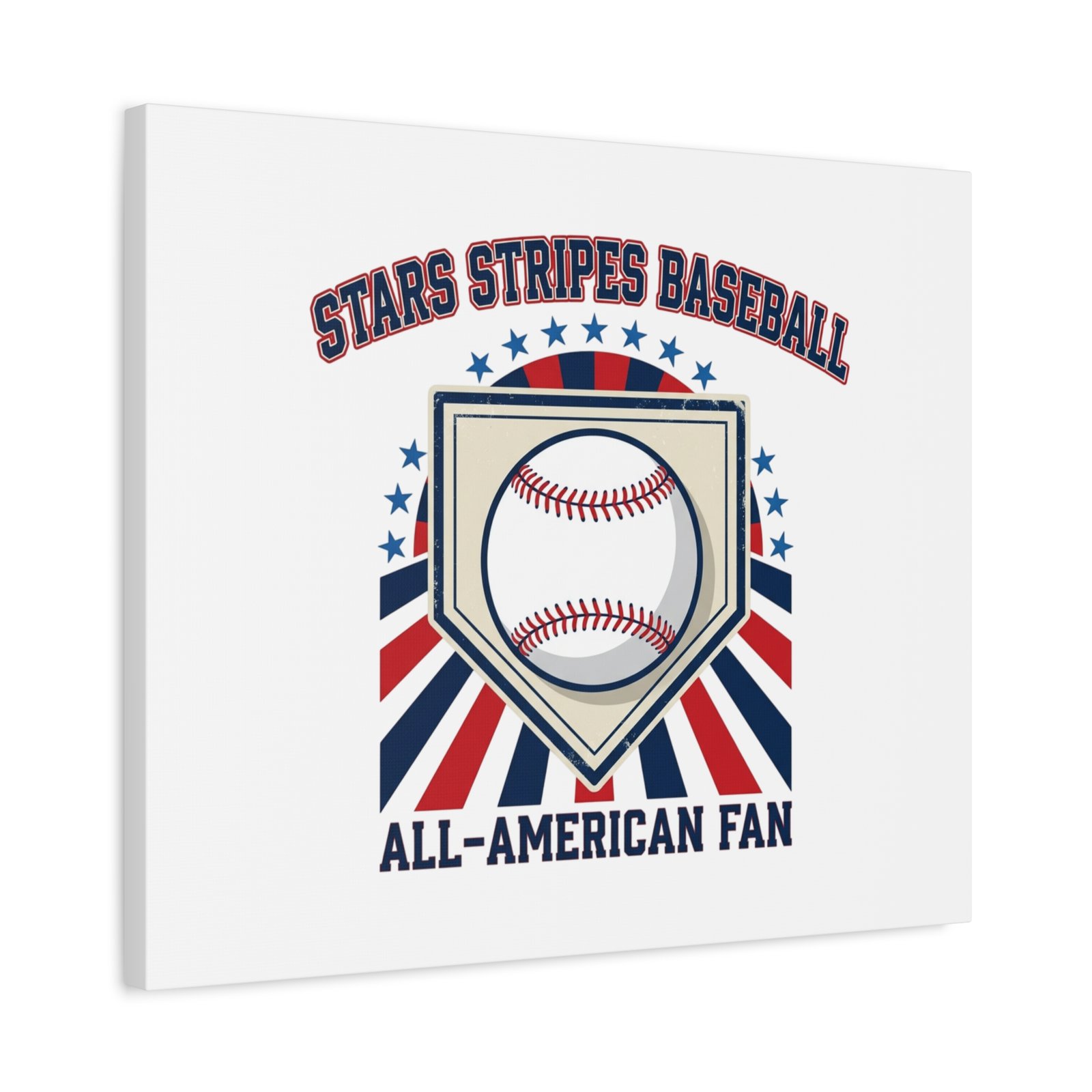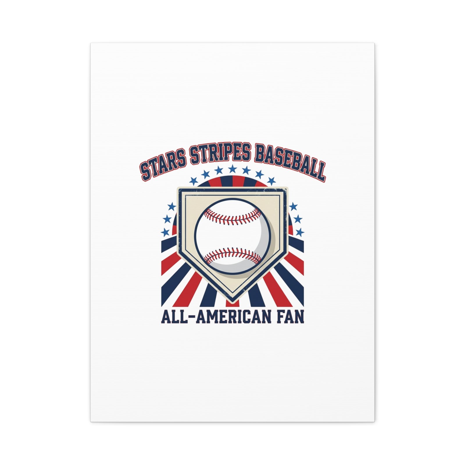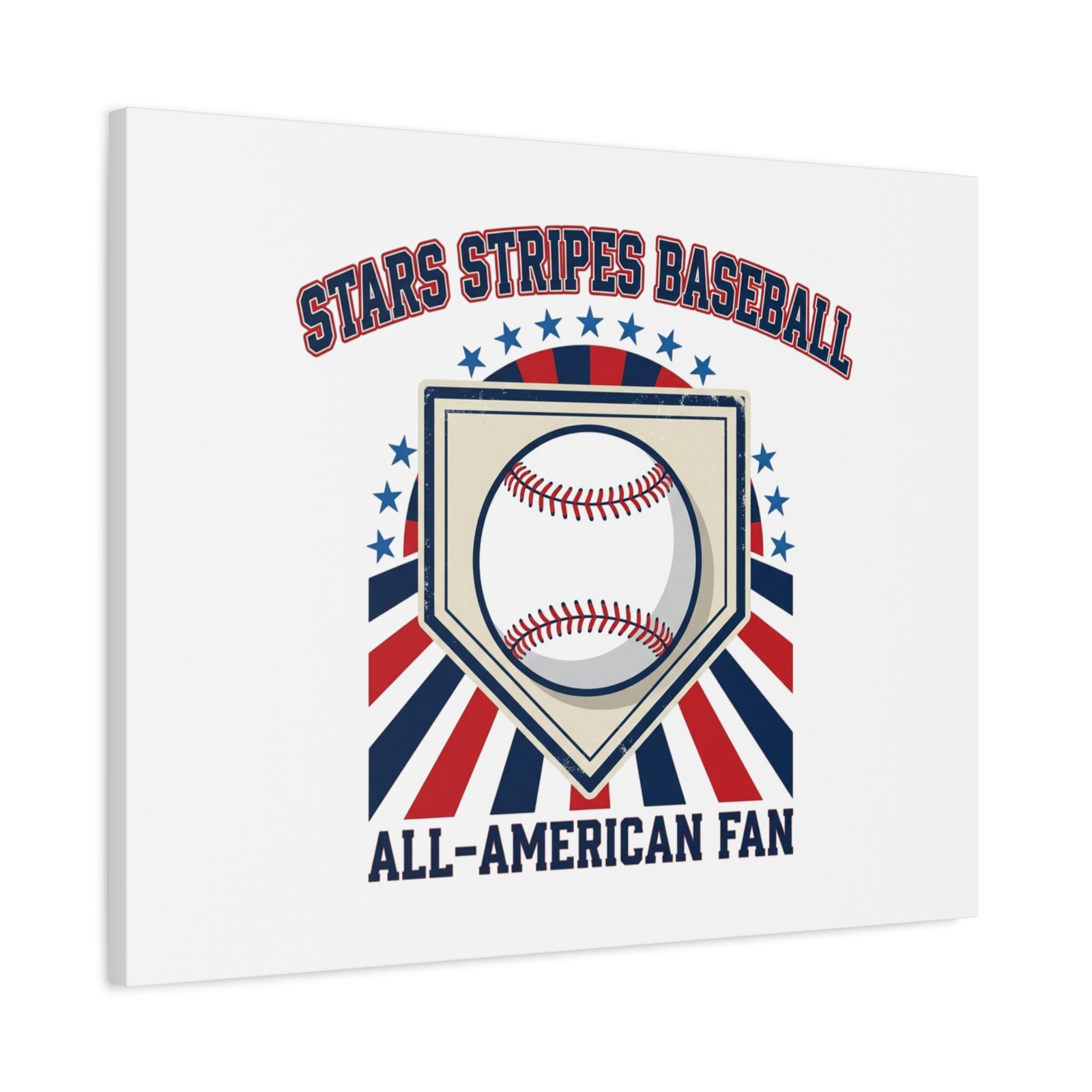 All-American Baseball Canvas | Patriotic Baseball Wall Art, Vintage Ballpark Aesthetic