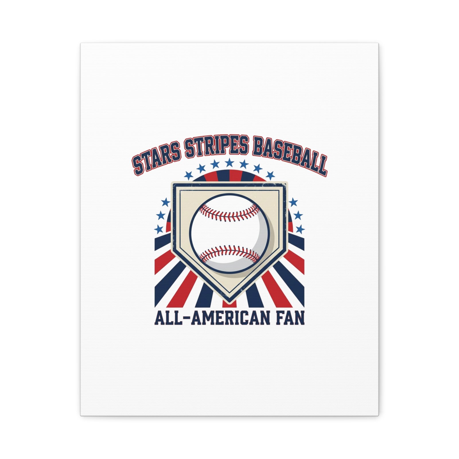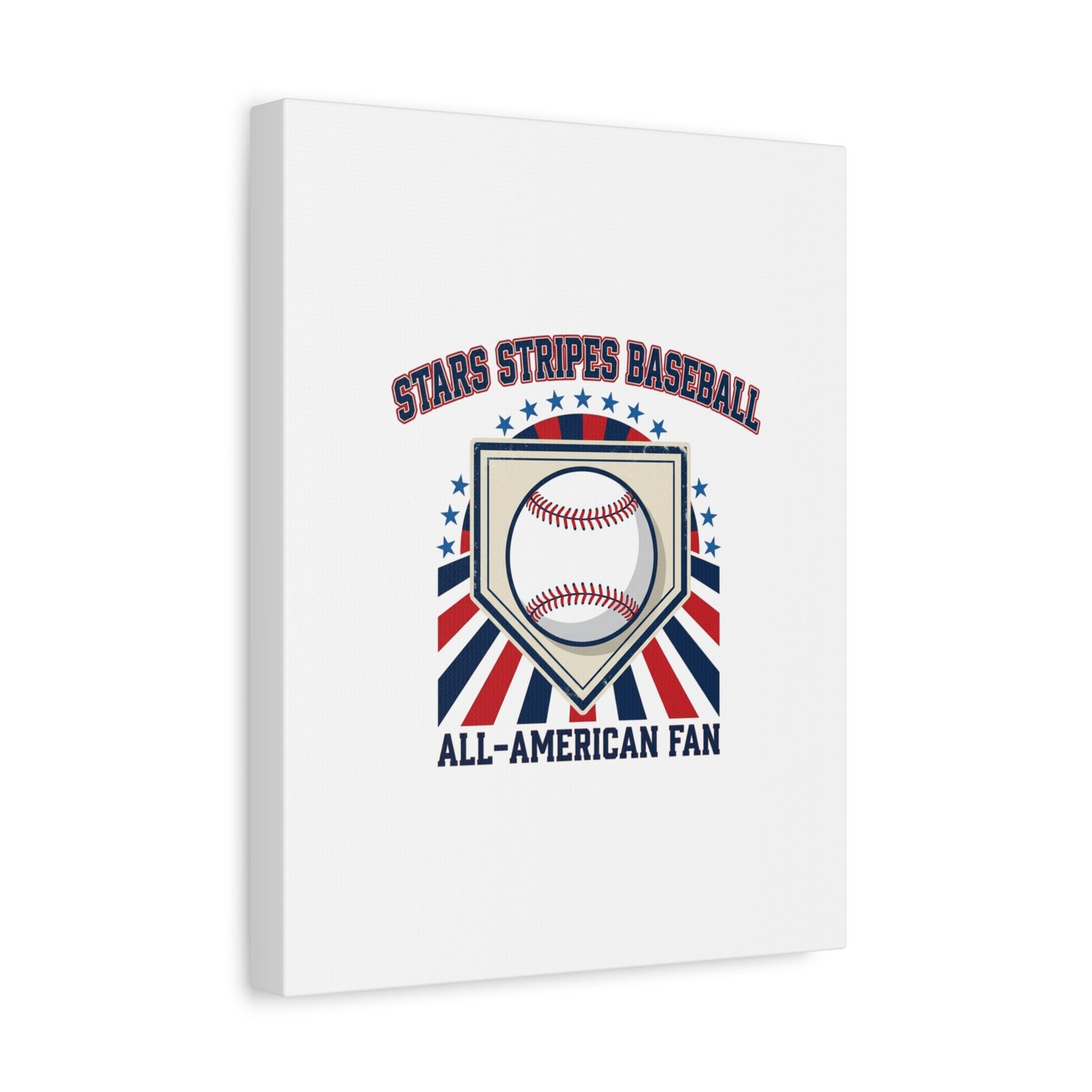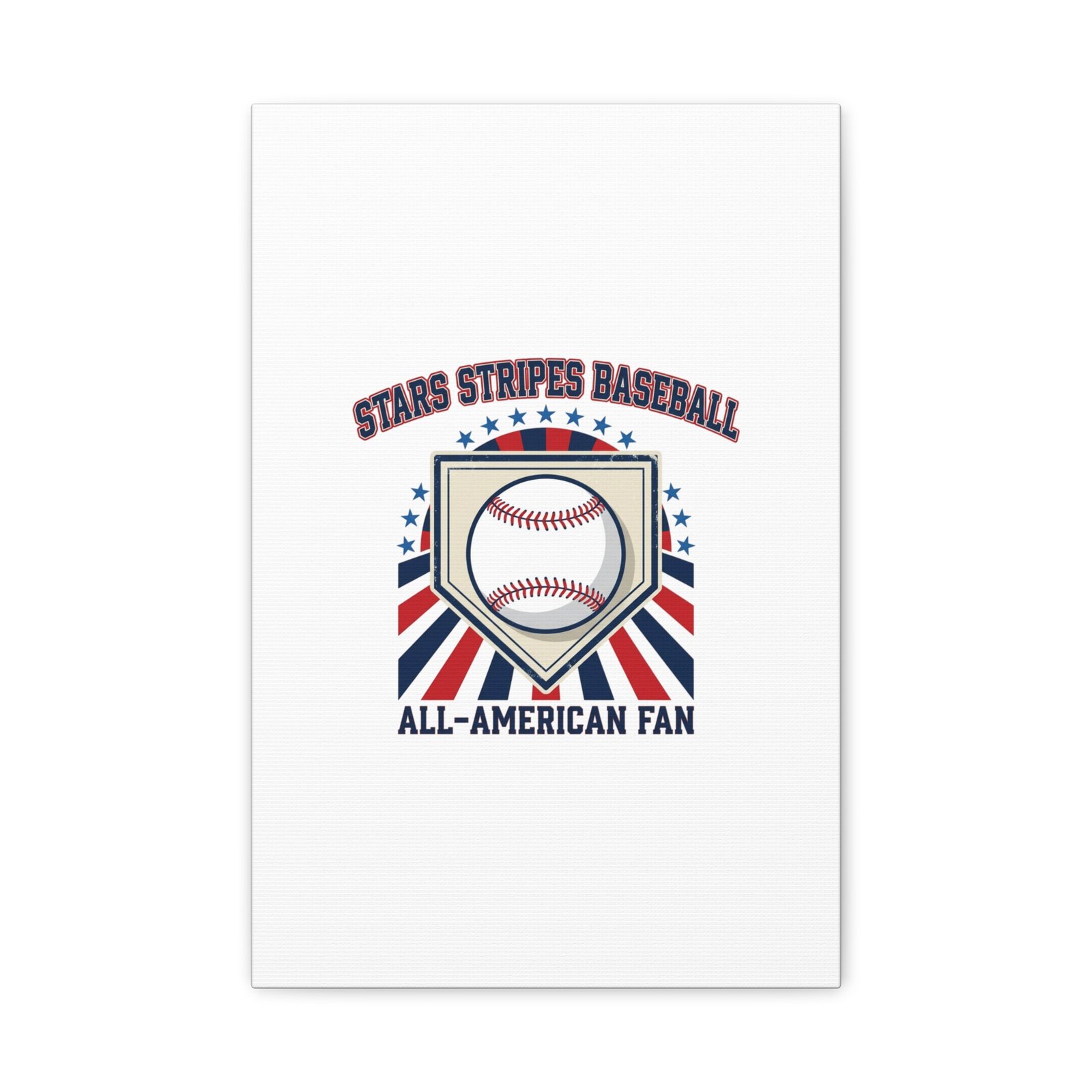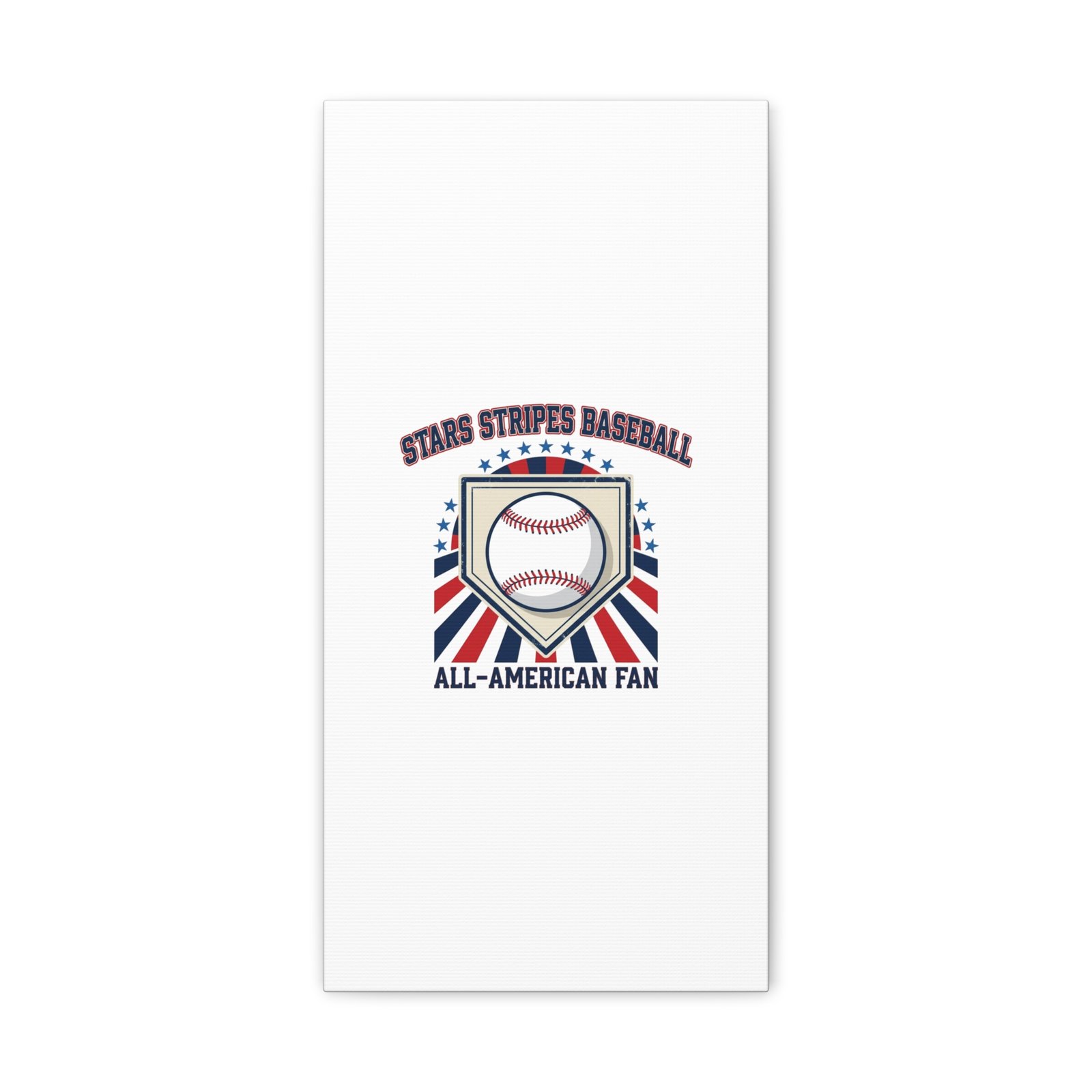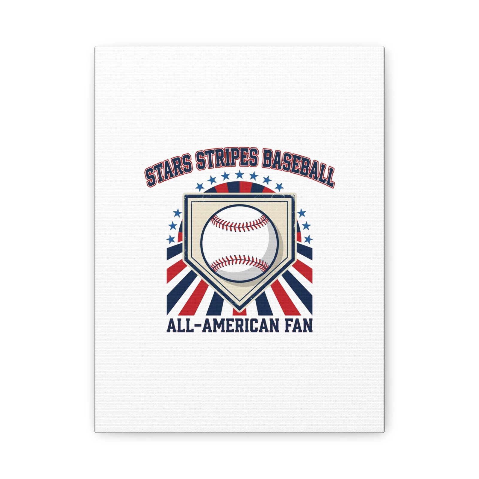 All-American Baseball Canvas | Patriotic Baseball Wall Art, Vintage Ballpark Aesthetic