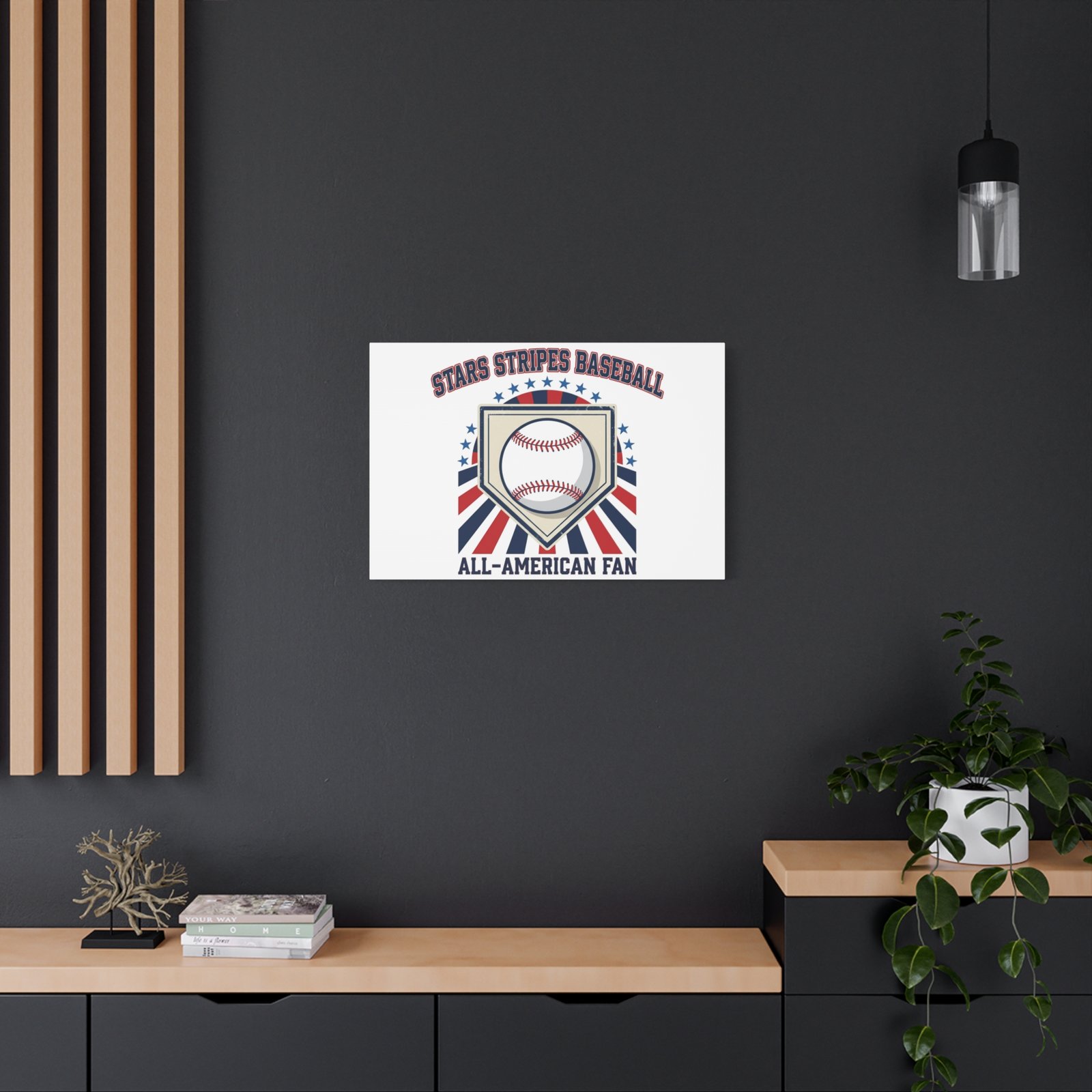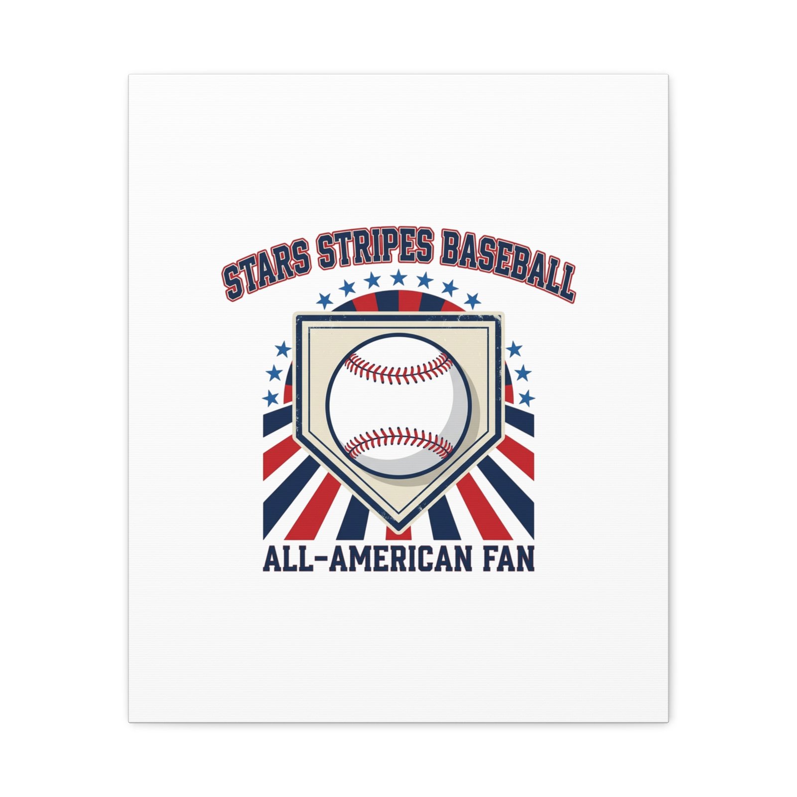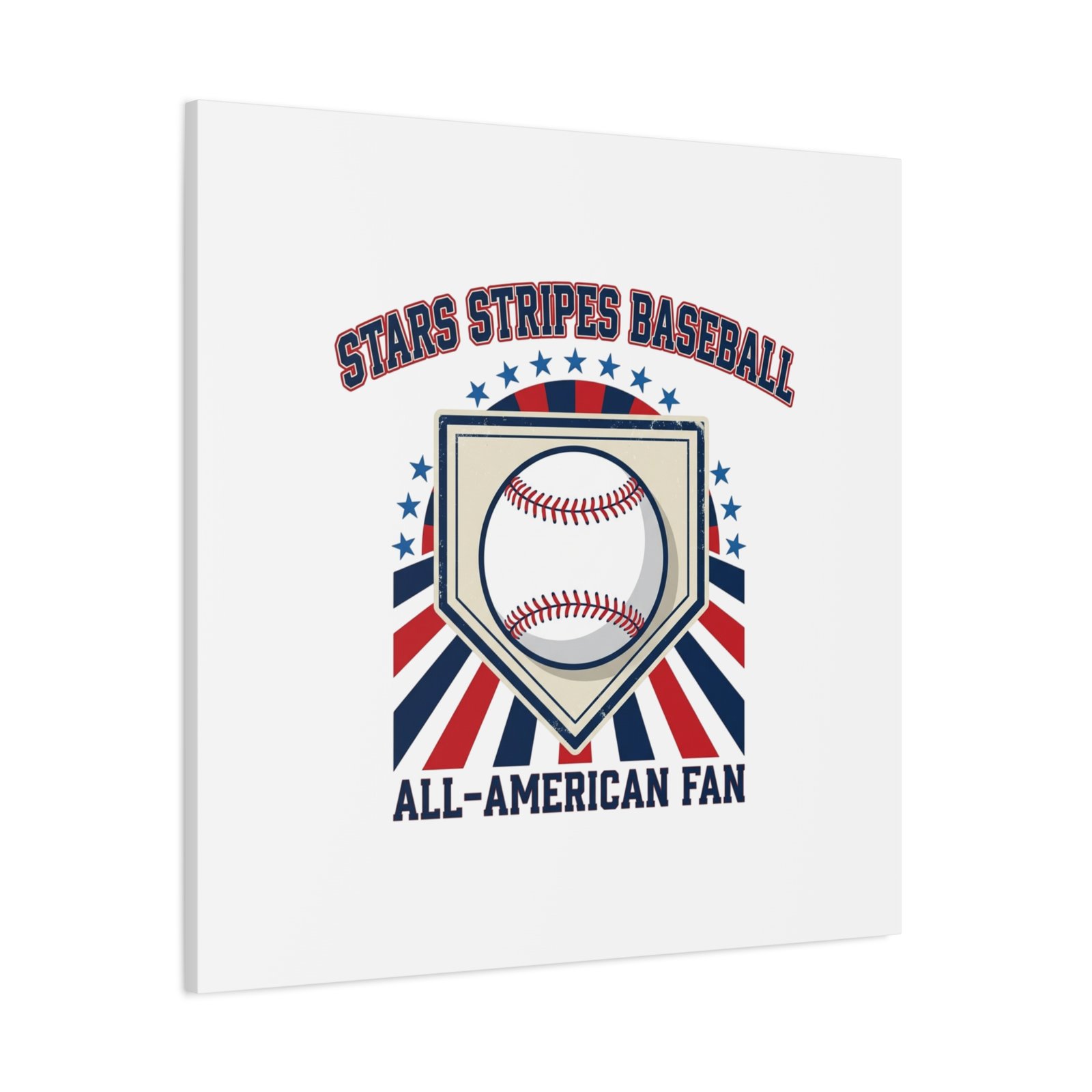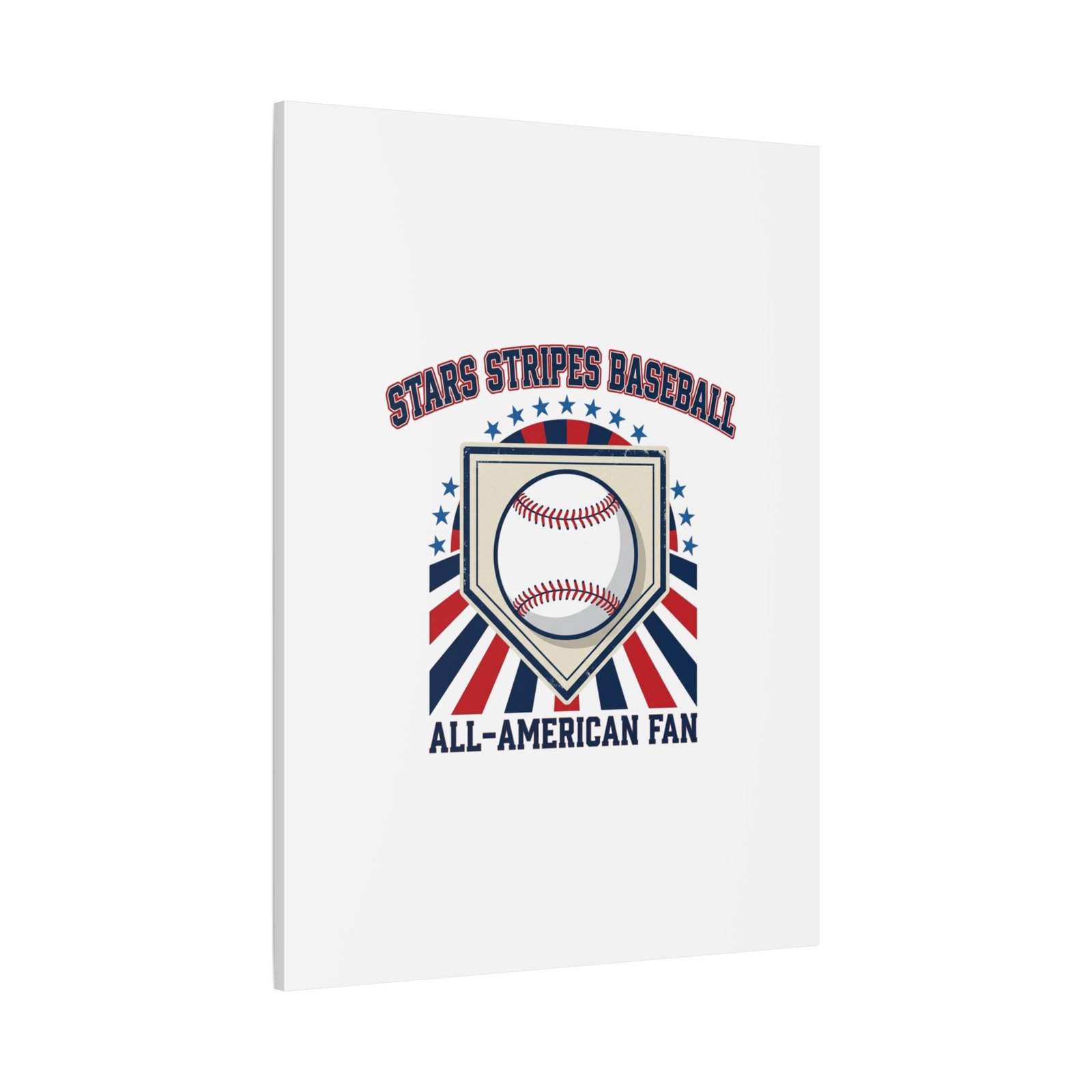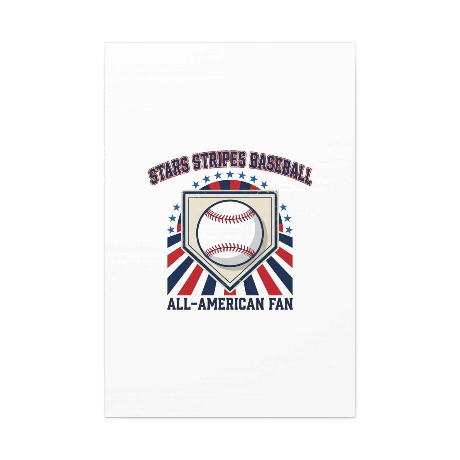 All-American Baseball Canvas | Patriotic Baseball Wall Art, Vintage Ballpark Aesthetic