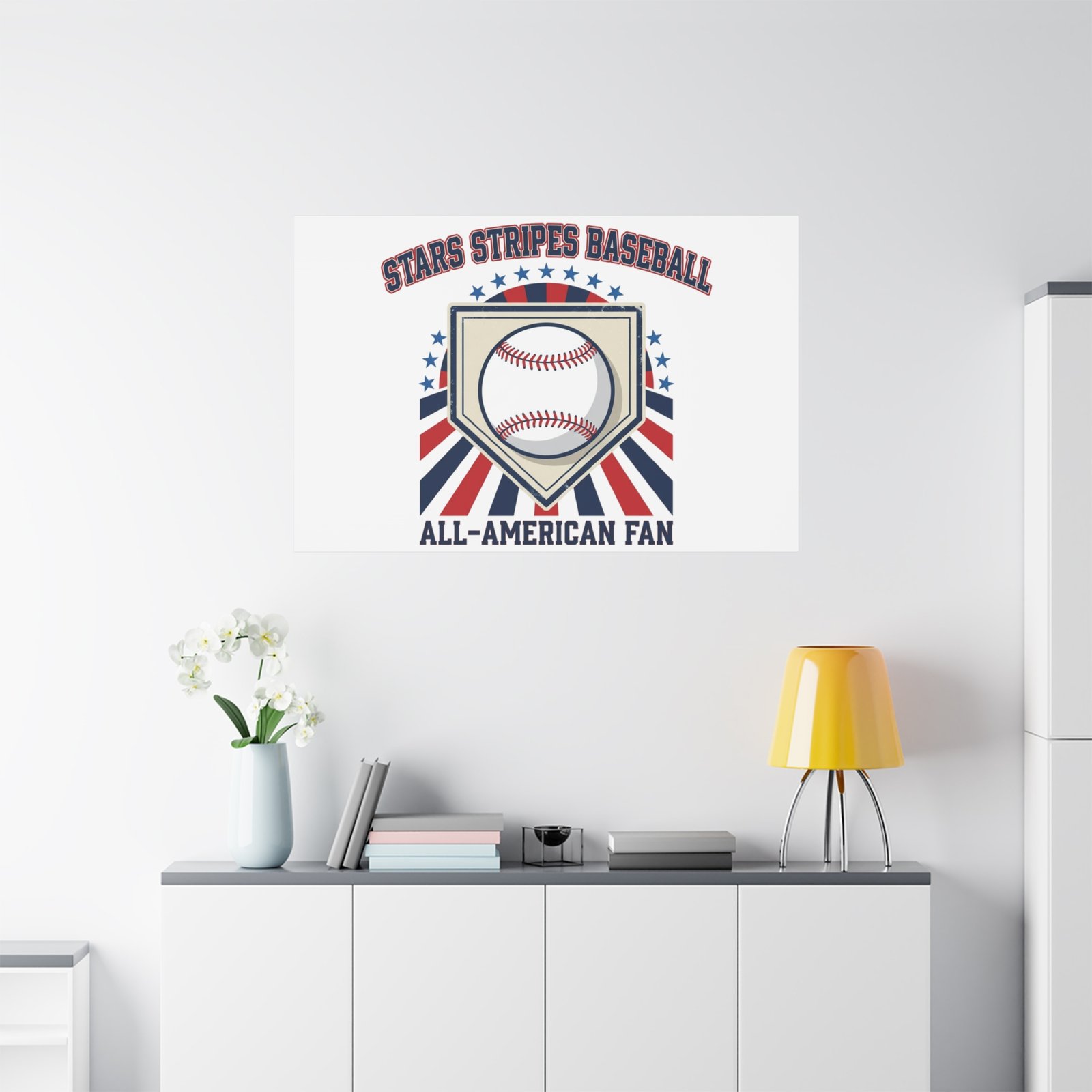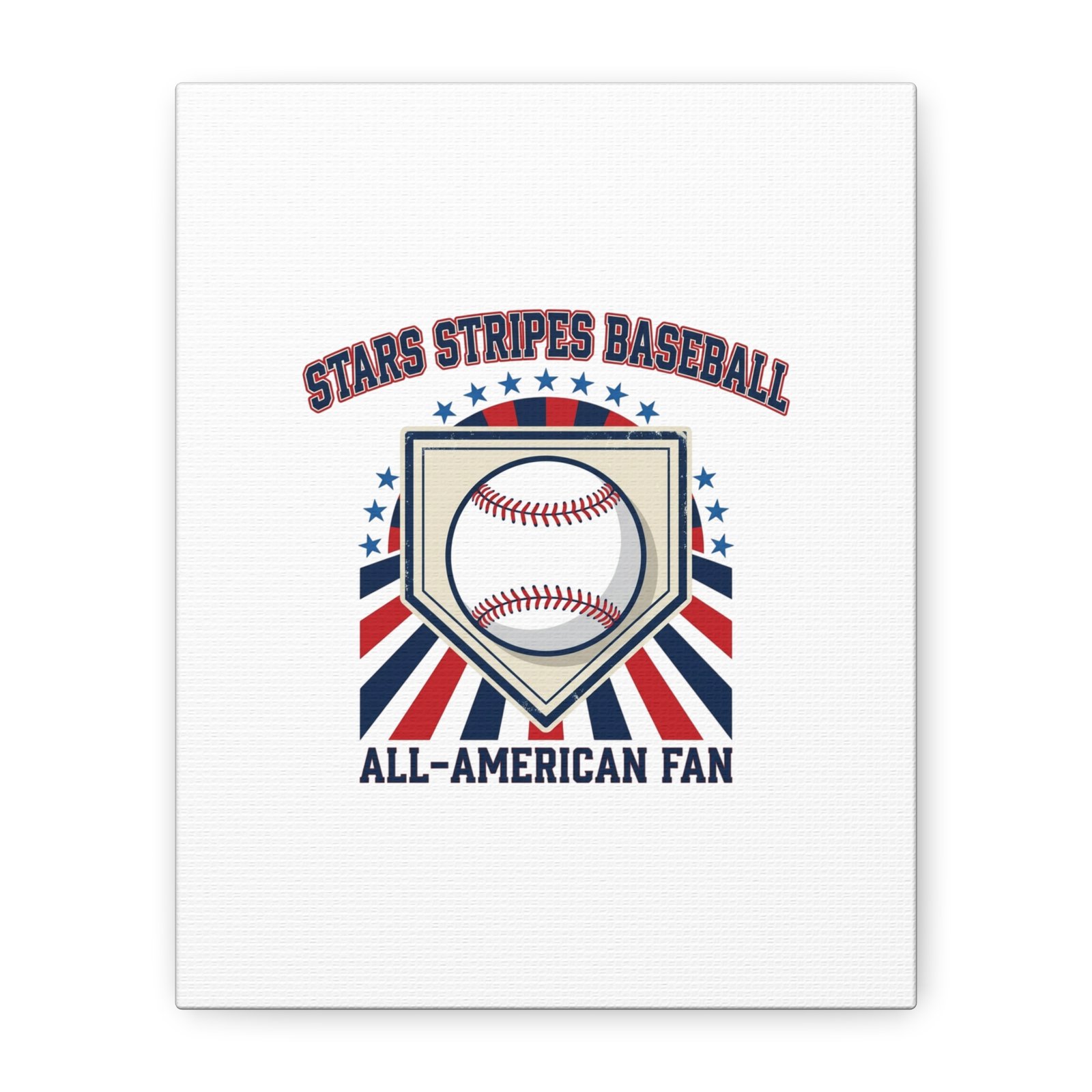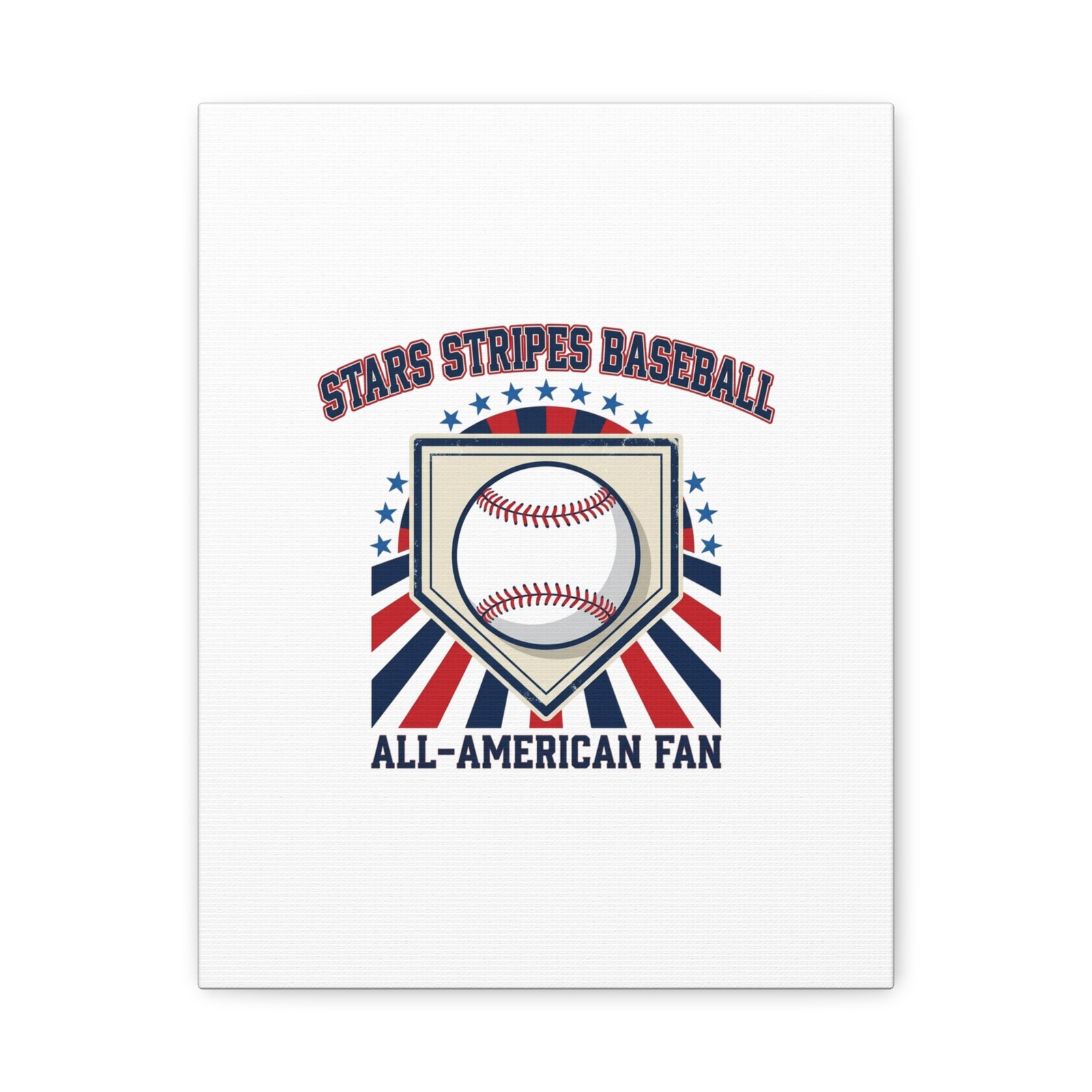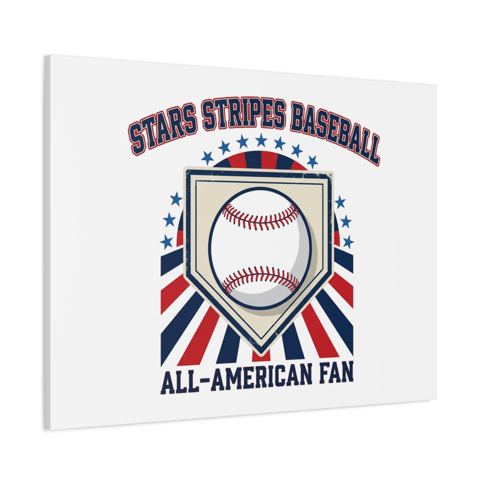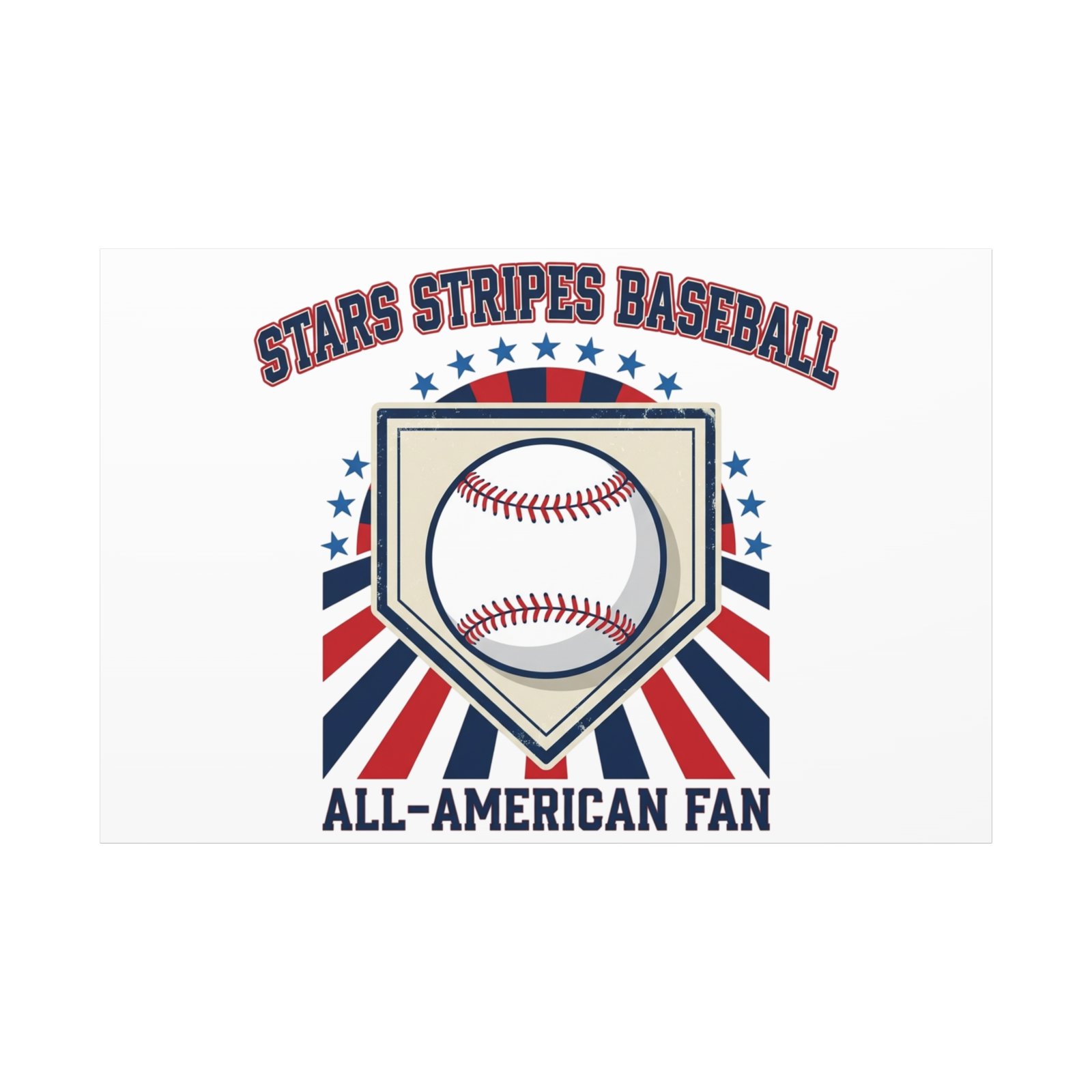 All-American Baseball Canvas | Patriotic Baseball Wall Art, Vintage Ballpark Aesthetic