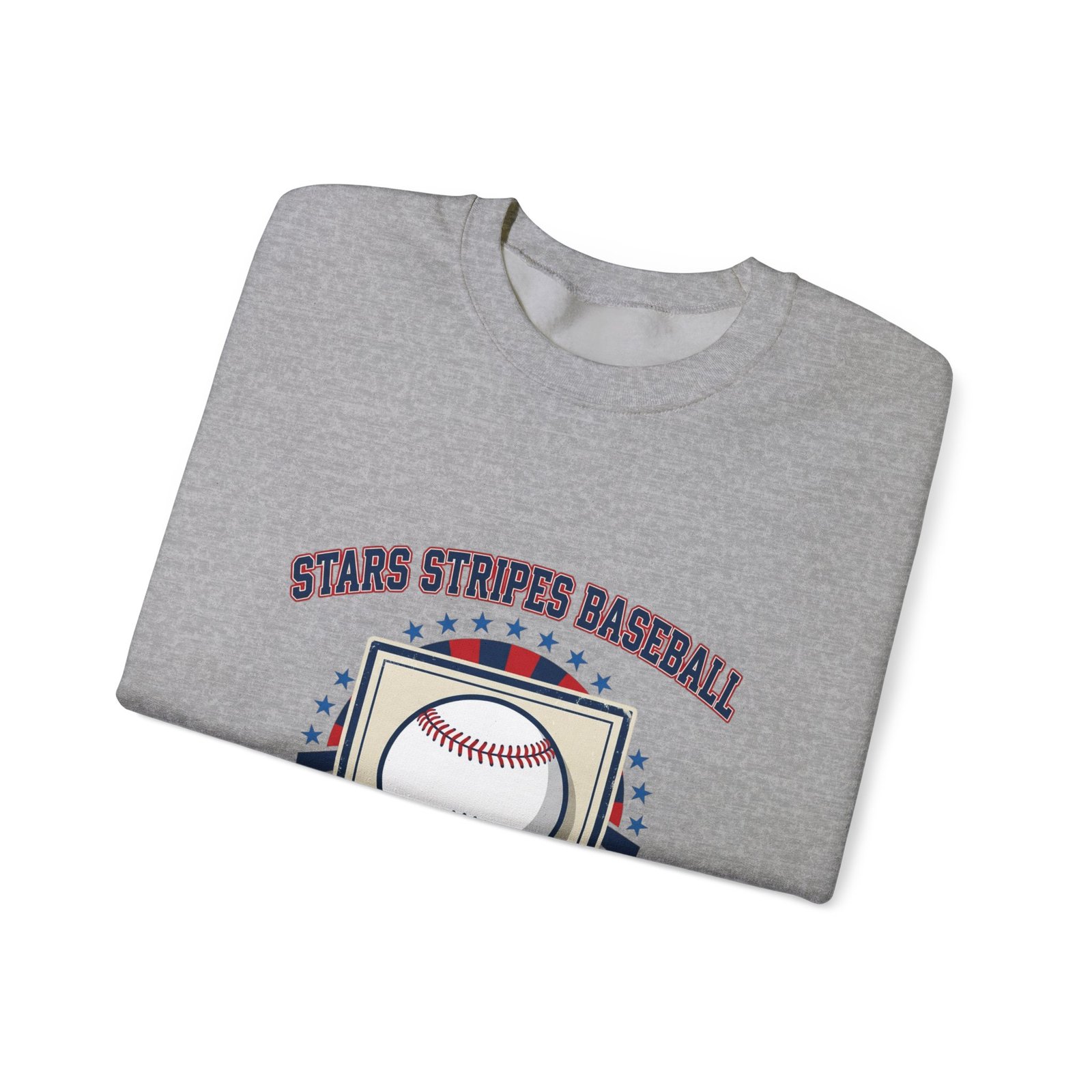 Retro ballpark crest in red, white and blue that blends vintage athletic typography with a patriotic baseball motif — a cozy crewneck for showing national pride at games or watch parties. The front artwork centers a stitched-look baseball inside a shield with radiating stripes and stars, evoking a classic baseball graphic and ballpark aesthetic that reads as nostalgic and spirited. Lightweight enough for layered stadium wear, this sweatshirt suits fans who want an athletic, heritage-inspired look during baseball season and local events. Product features – Embroidery decoration available on chest and wrists – Made in Nicaragua – Gildan 18000 — 50/50 cotton-poly, 8.0 oz/yd² (271 g/m²) – No side seams (tubular knit) with ribbed knit collar and double-needle stitching – DTF inner neck labels and wrist prints; DTG for other prints Care instructions – Machine wash: cold (max 30C or 90F) – Non-chlorine: bleach as needed – Tumble dry: low heat – Do not dryclean –