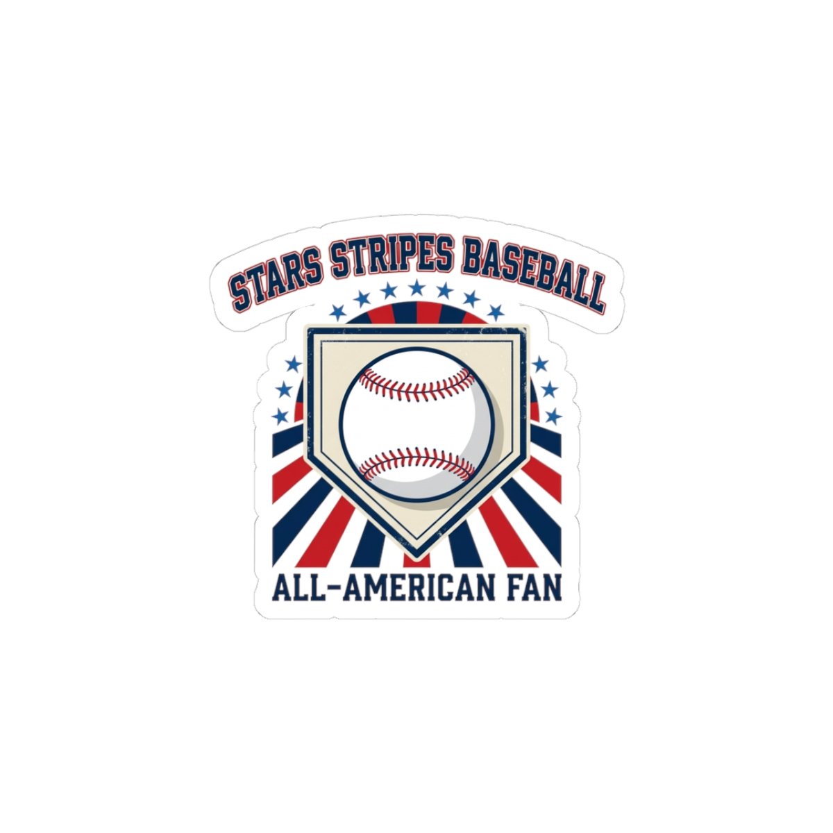 Retro patriotic baseball sticker featuring a classic baseball centered in a home-plate shield with radiating red, white, and blue rays and vintage athletic lettering. The design channels a ballpark aesthetic and nostalgic sports typography, pairing national pride with old-school baseball vibes that suit season-long fandom, tailgates, and game-day setups. Use it to badge up laptops, water bottles, journals, or gear while keeping a spirited, competitive look tied to the patriotic baseball trend. Product features – Glossy paper finish: Scratch-resistant surface – Long lasting: Vinyl surface stickers with a permanent acrylic adhesive backside – Vibrant colors: Printed with environmentally friendly eco-solvent inks – PNG format: Kiss-cut stickers require a transparent PNG design file – Choose between 4 sizes with a glossy finish to match your needs Care instructions – Use a soft, clean and dry cloth to gently brush any dust or dirt off from the center of the sticker outwards.