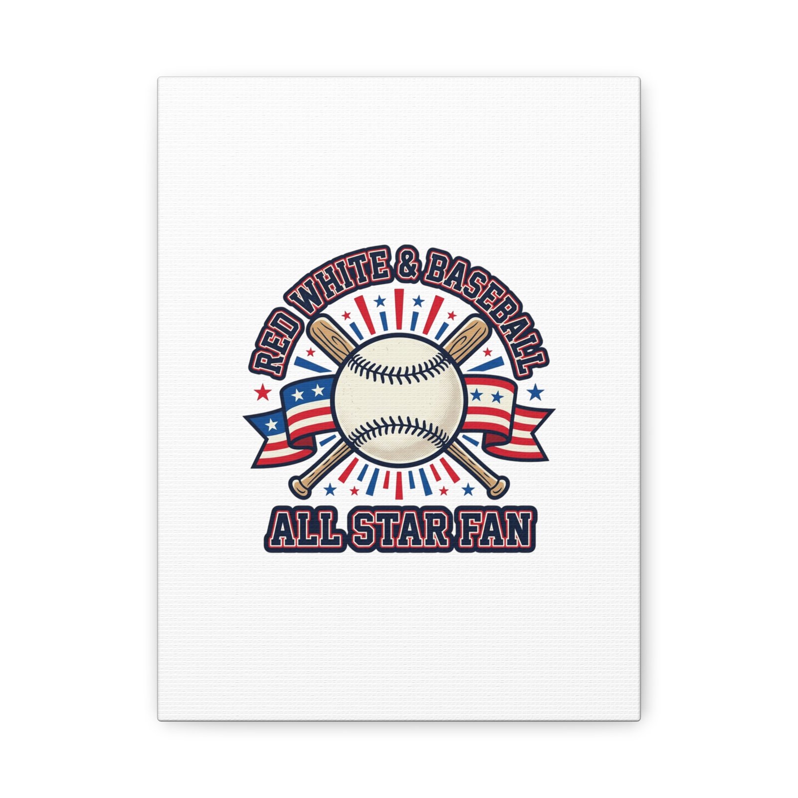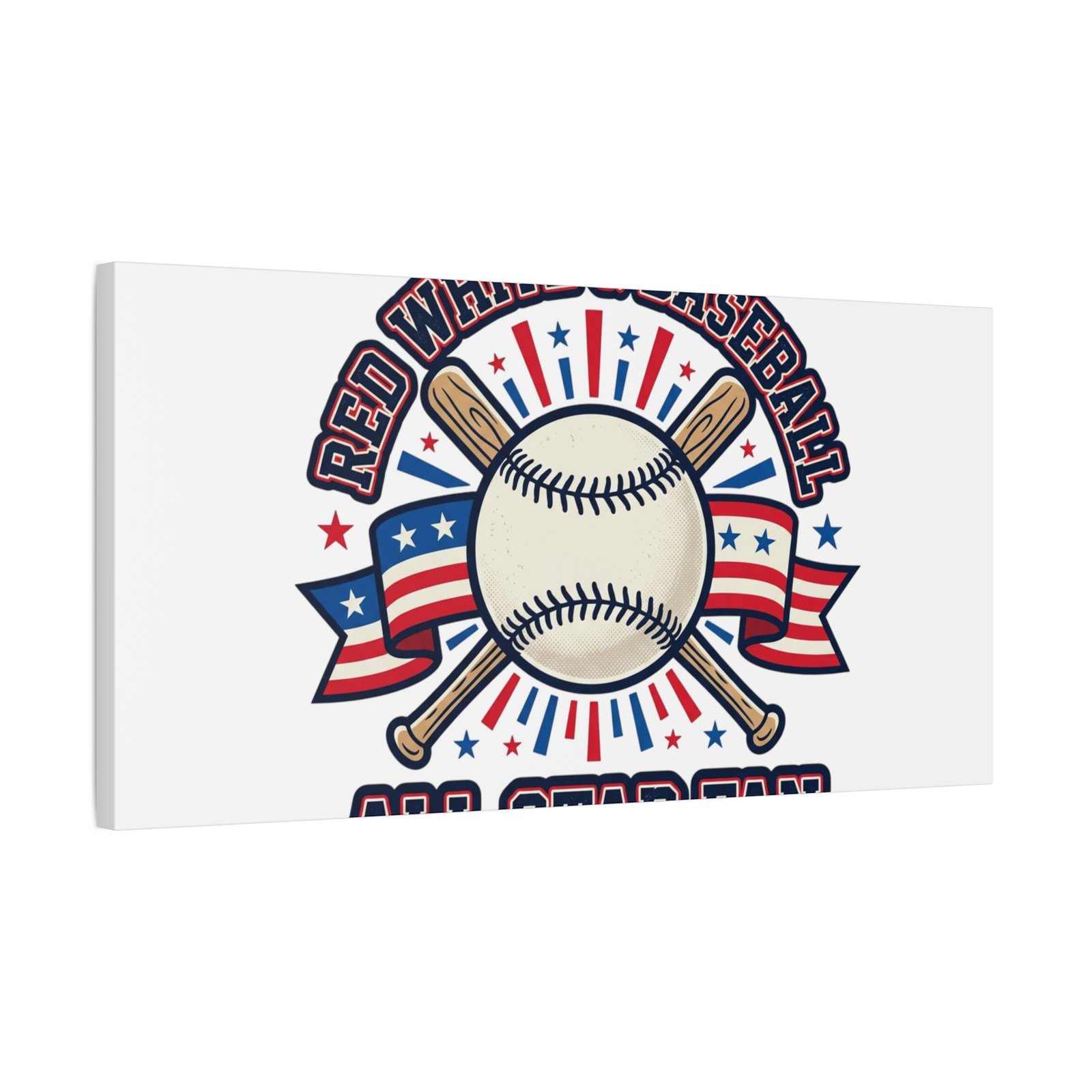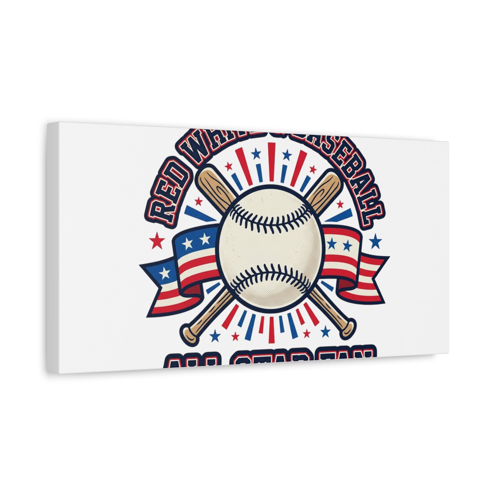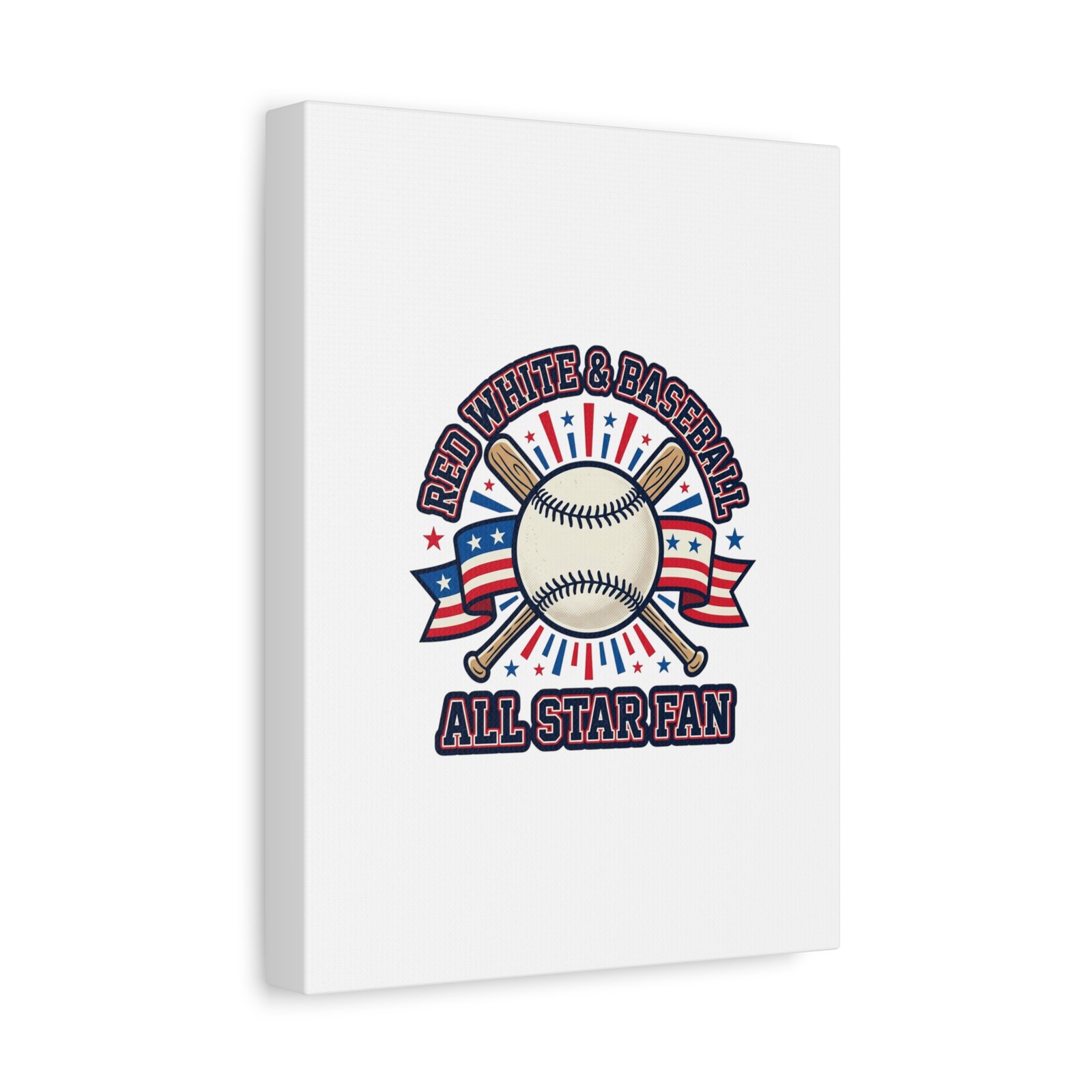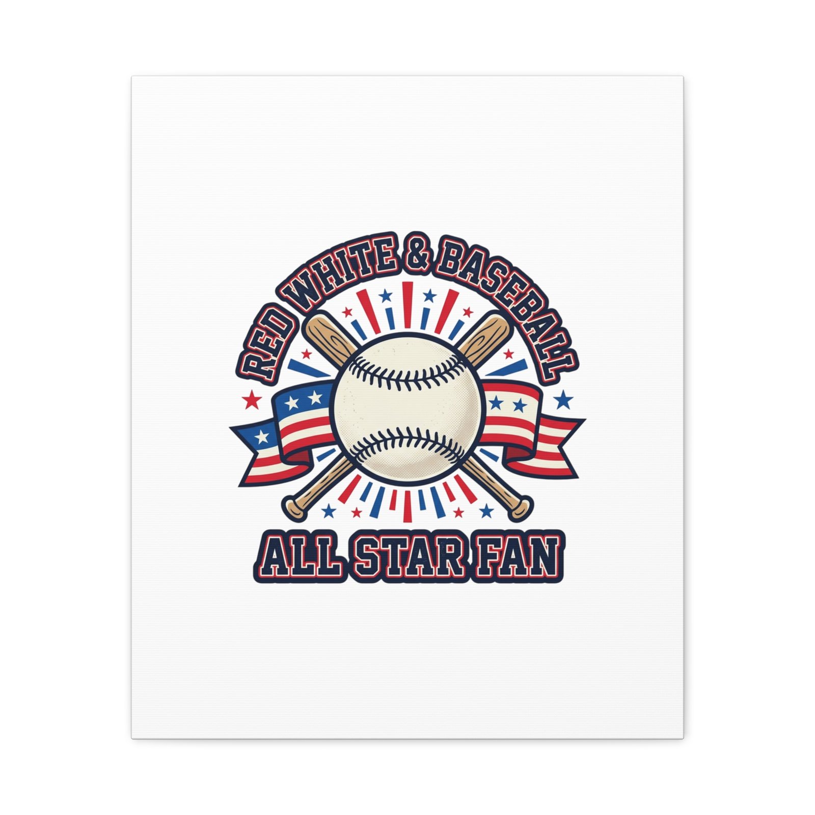 Patriotic Baseball All Star Fan Canvas | Vintage Red White Blue Ballpark Art