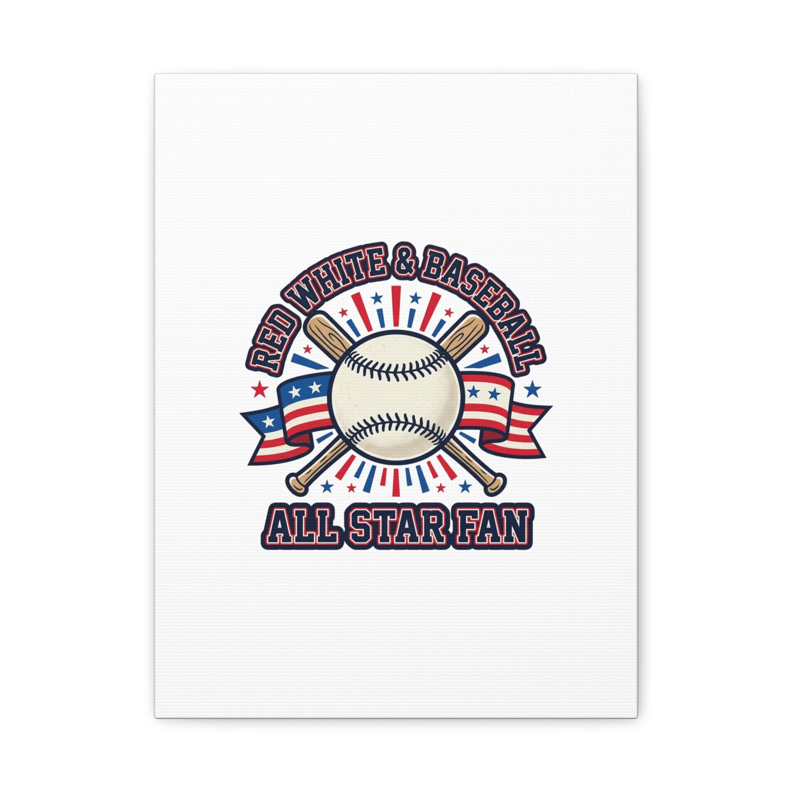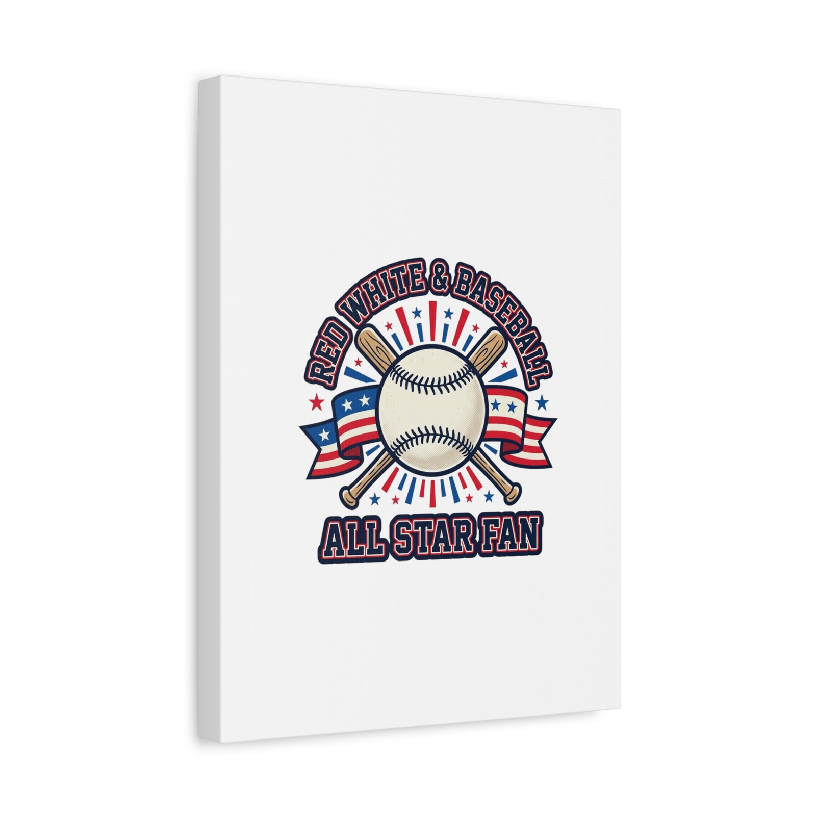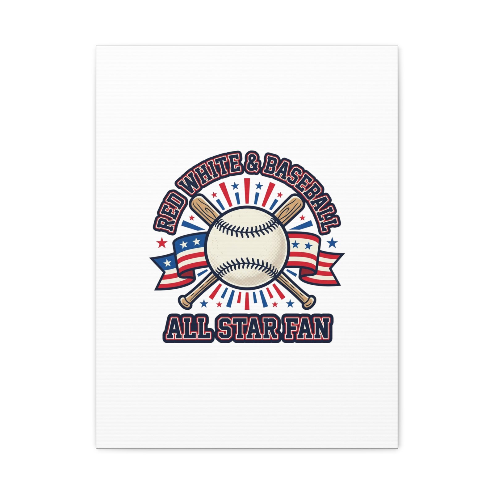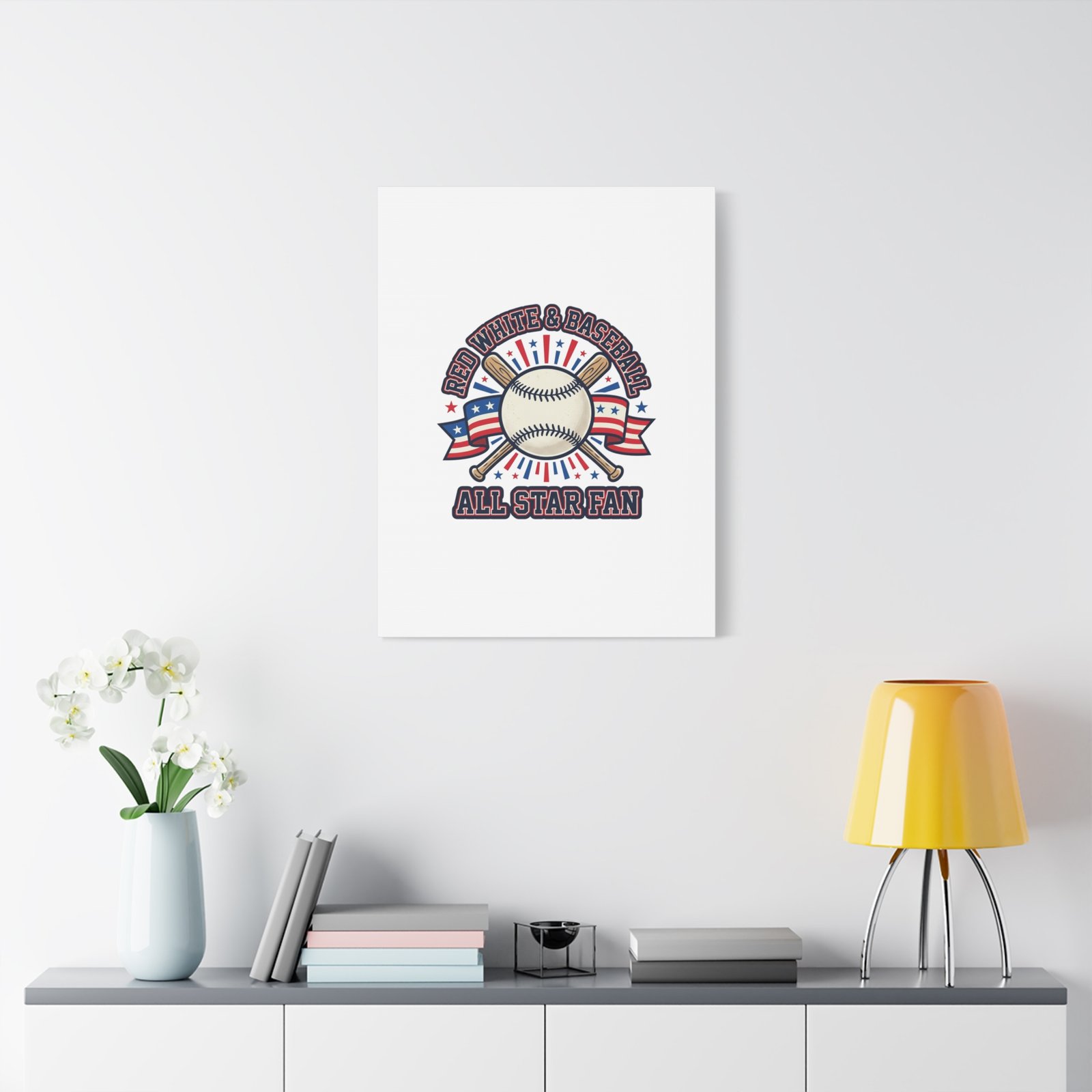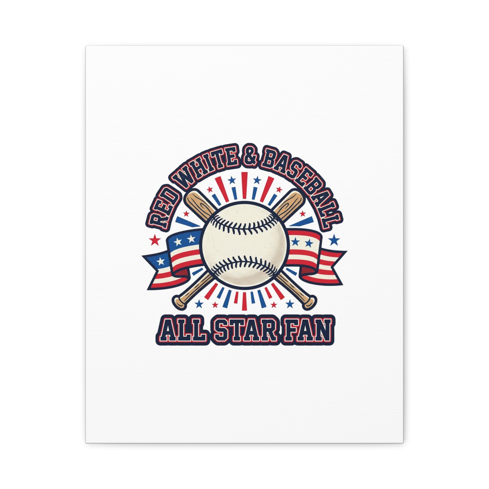 Patriotic Baseball All Star Fan Canvas | Vintage Red White Blue Ballpark Art