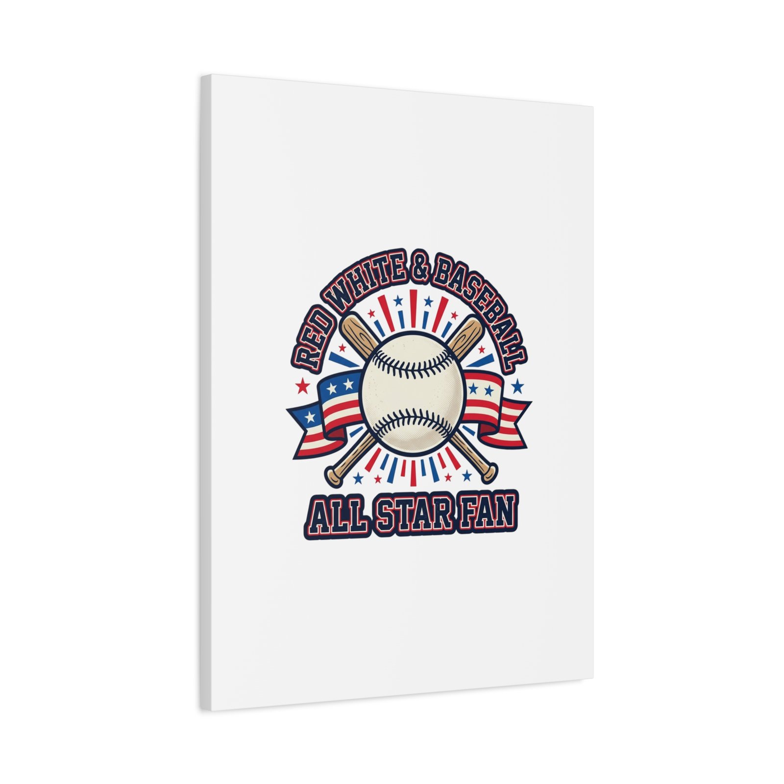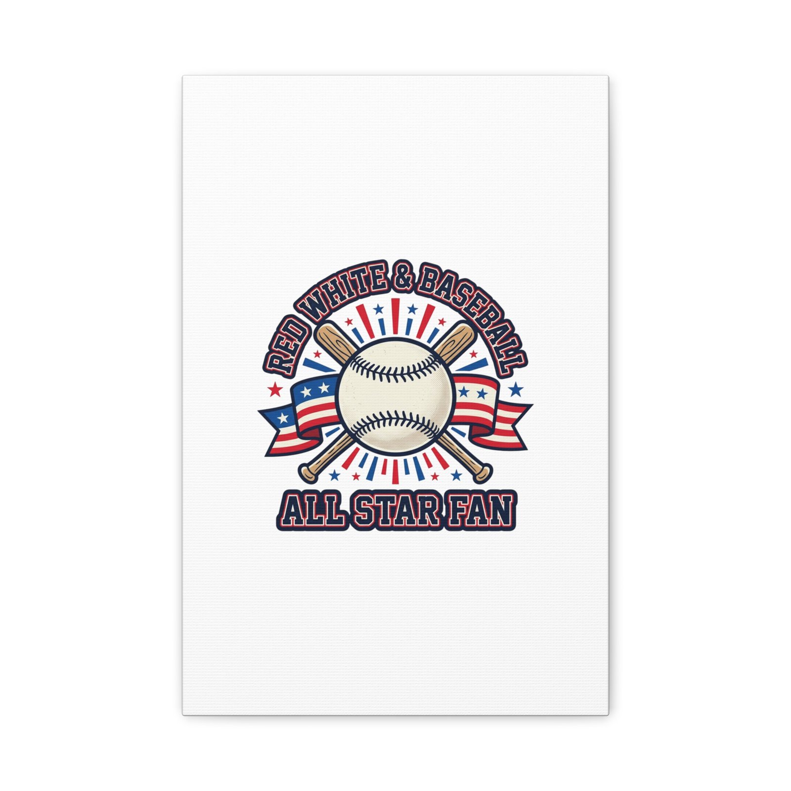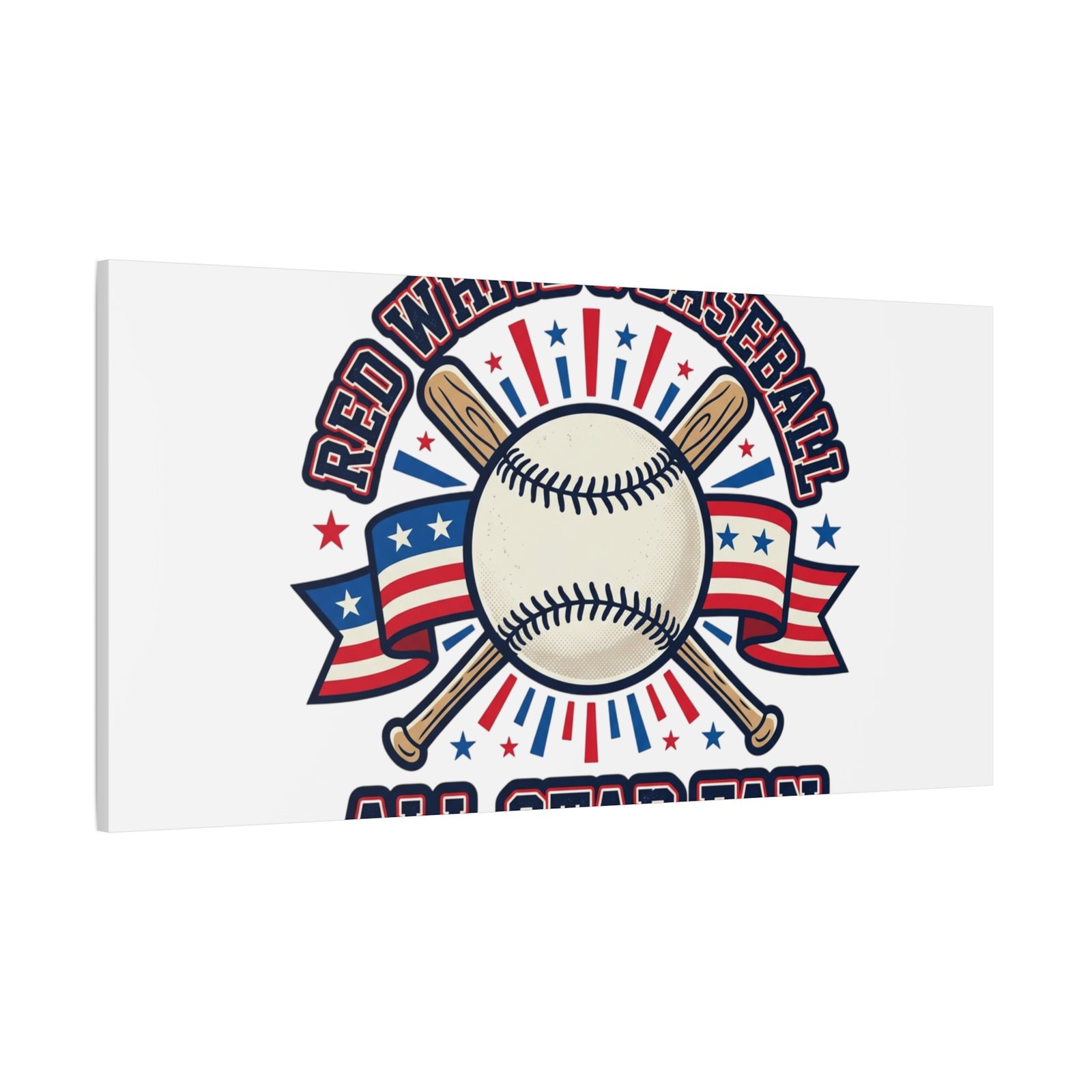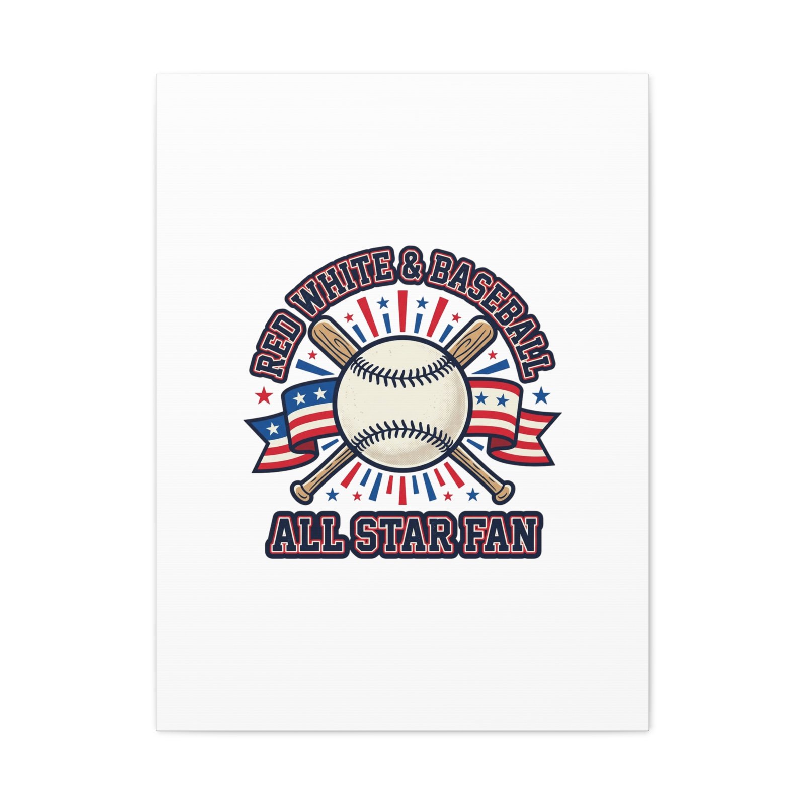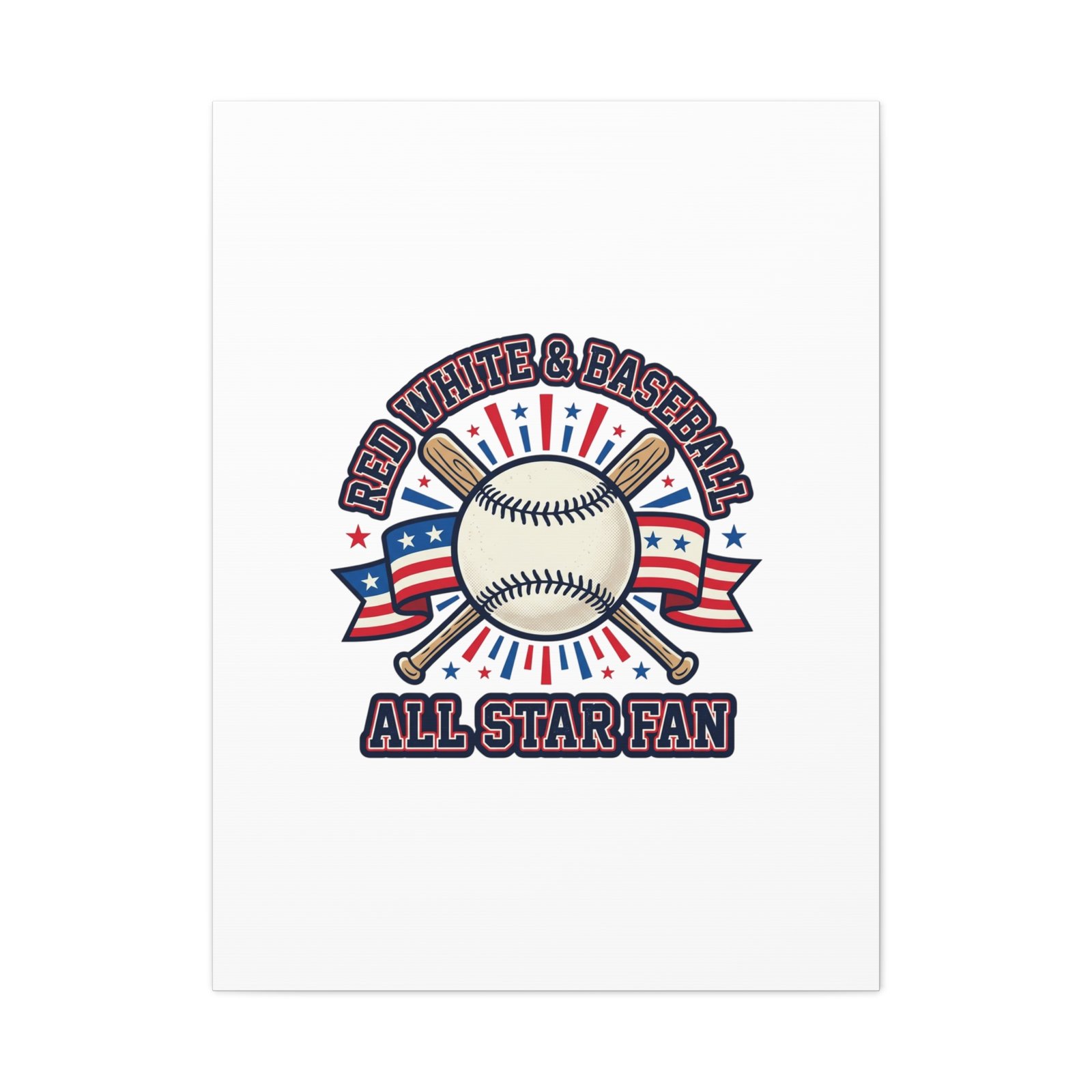 Patriotic Baseball All Star Fan Canvas | Vintage Red White Blue Ballpark Art