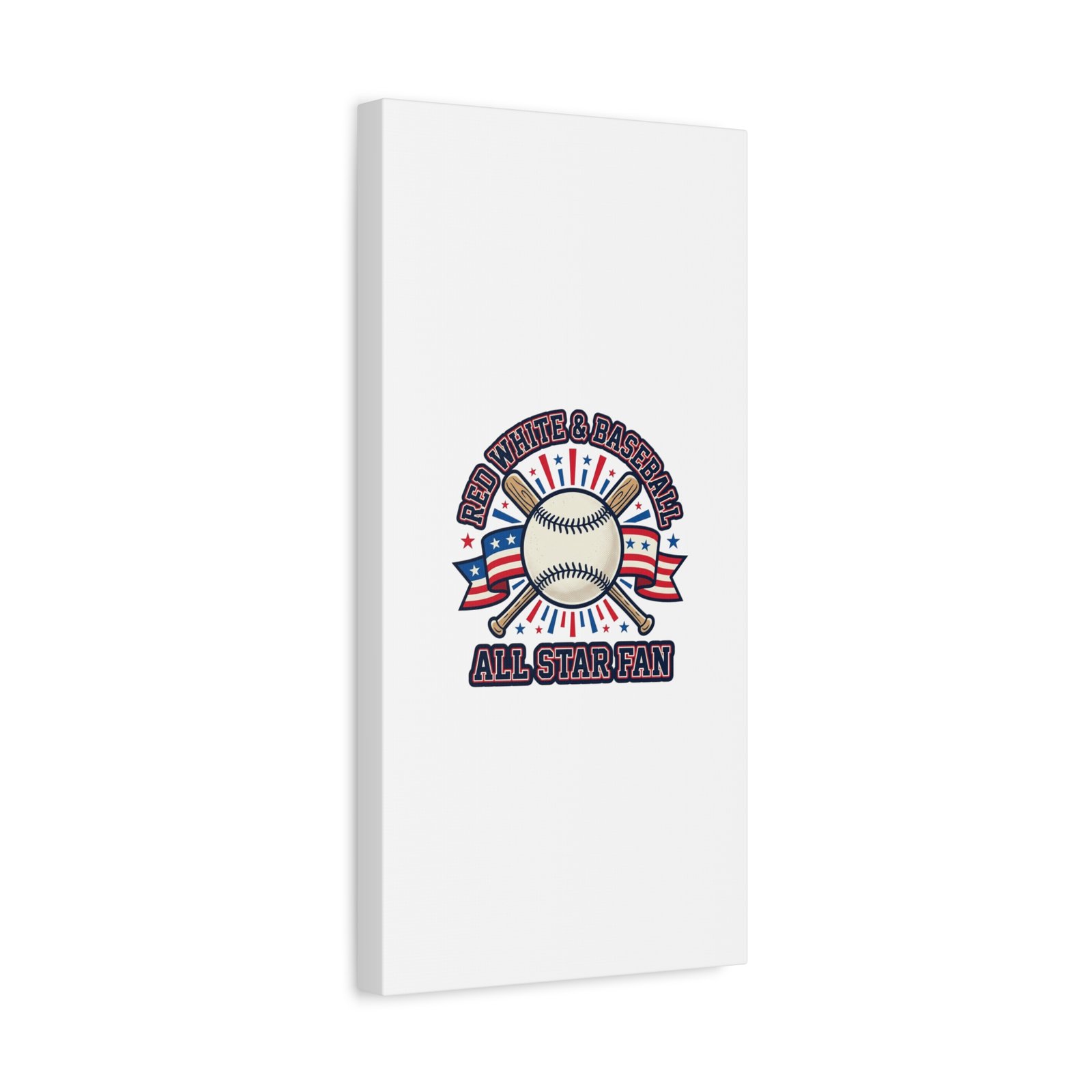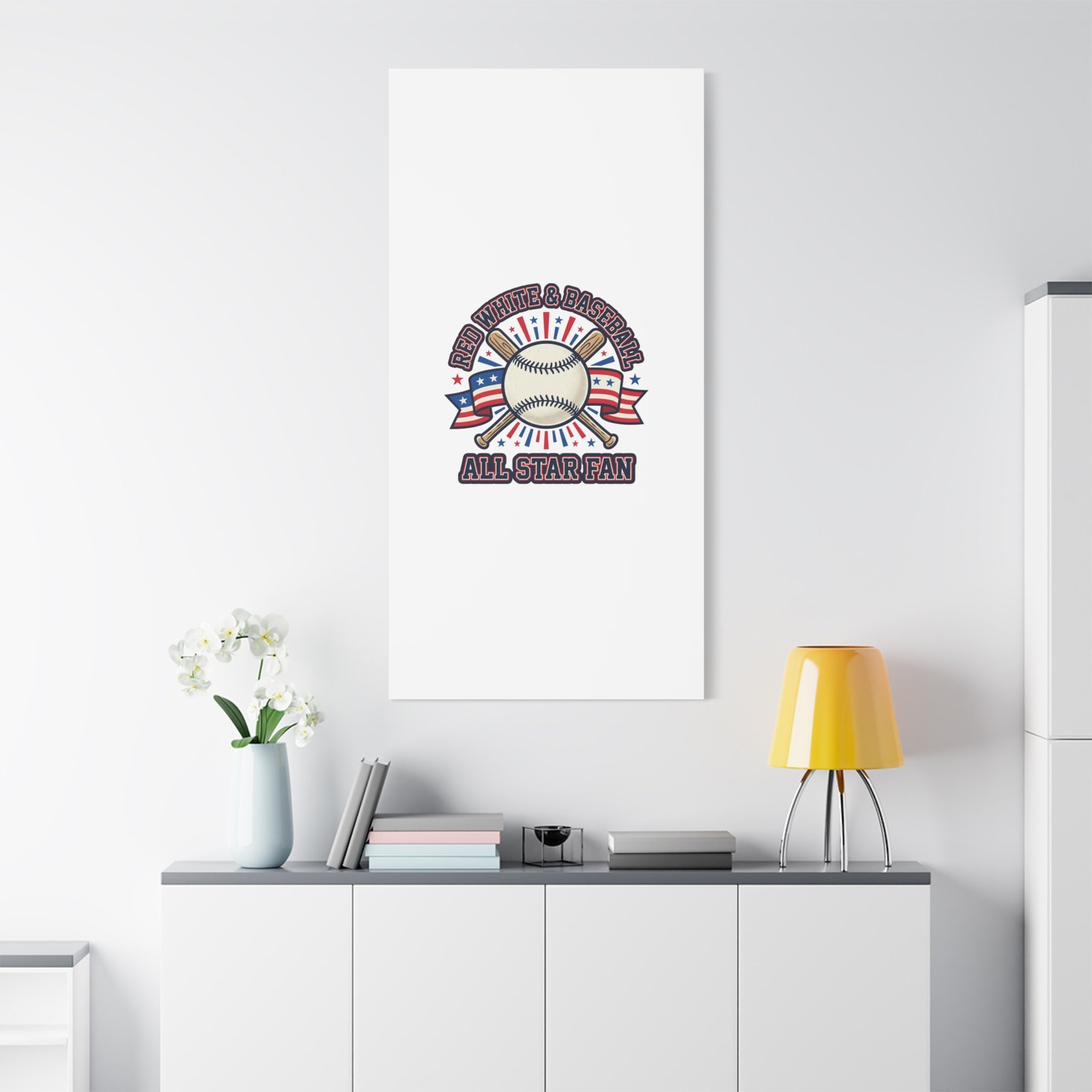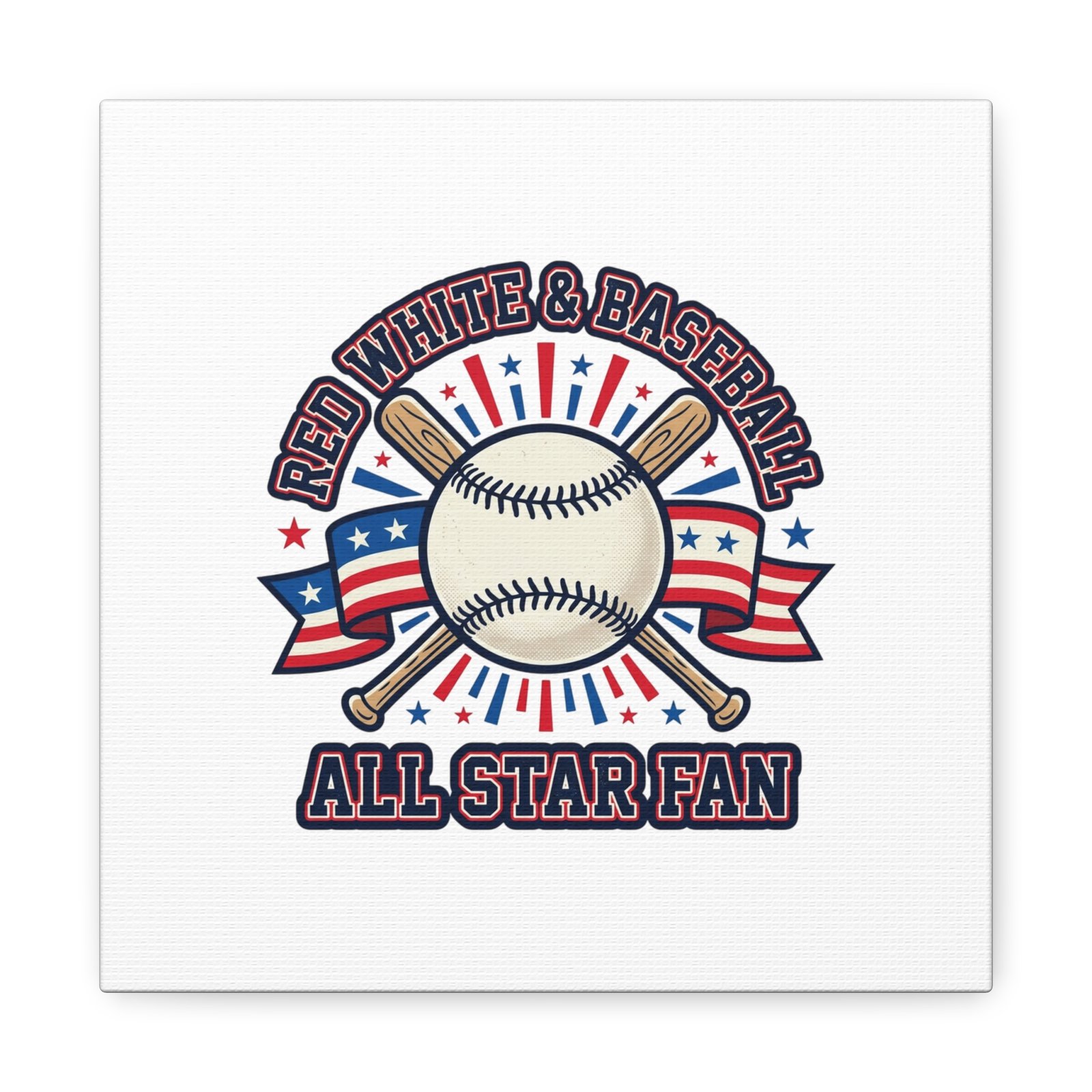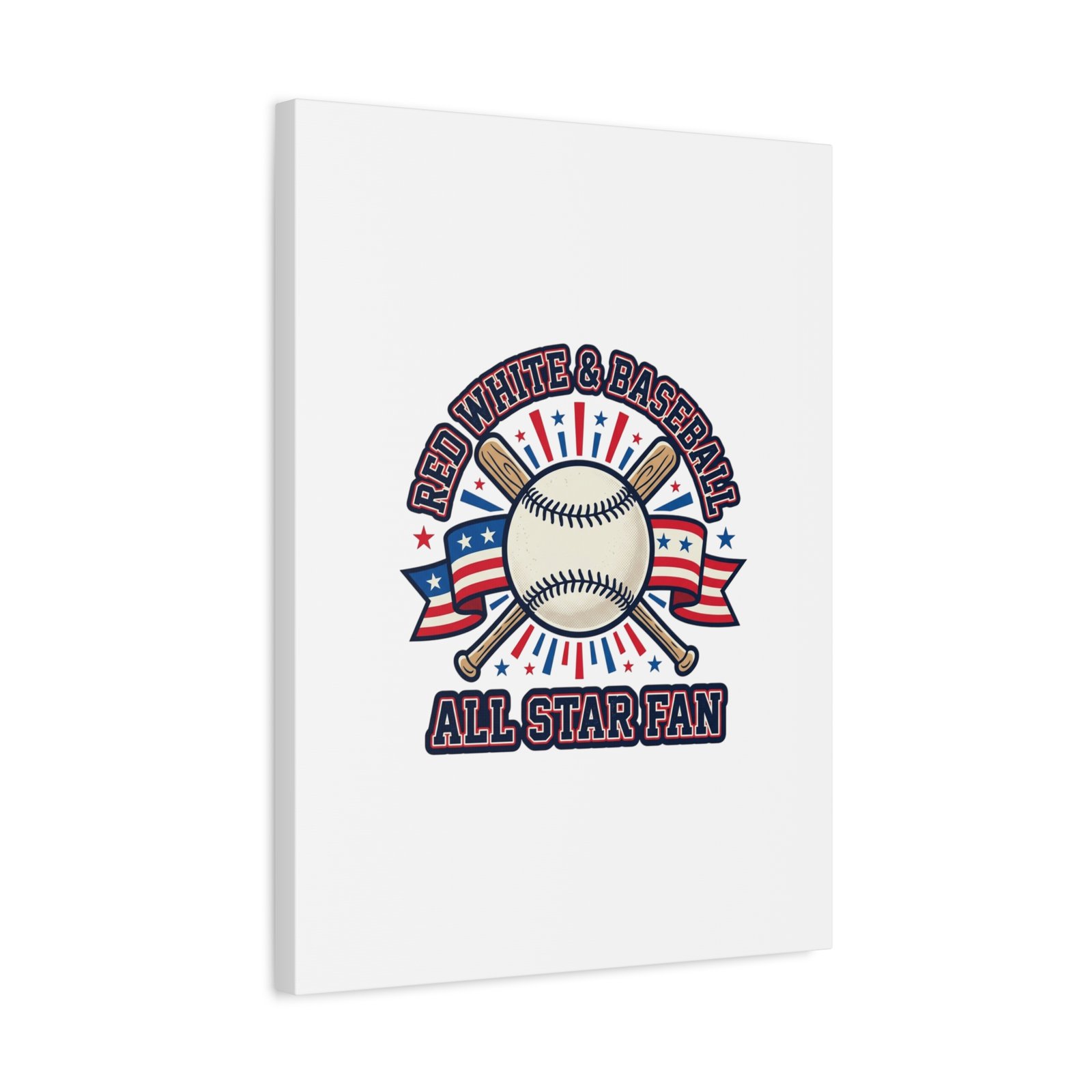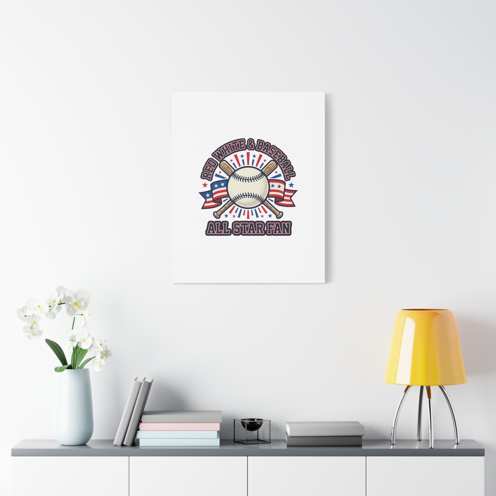 Patriotic Baseball All Star Fan Canvas | Vintage Red White Blue Ballpark Art