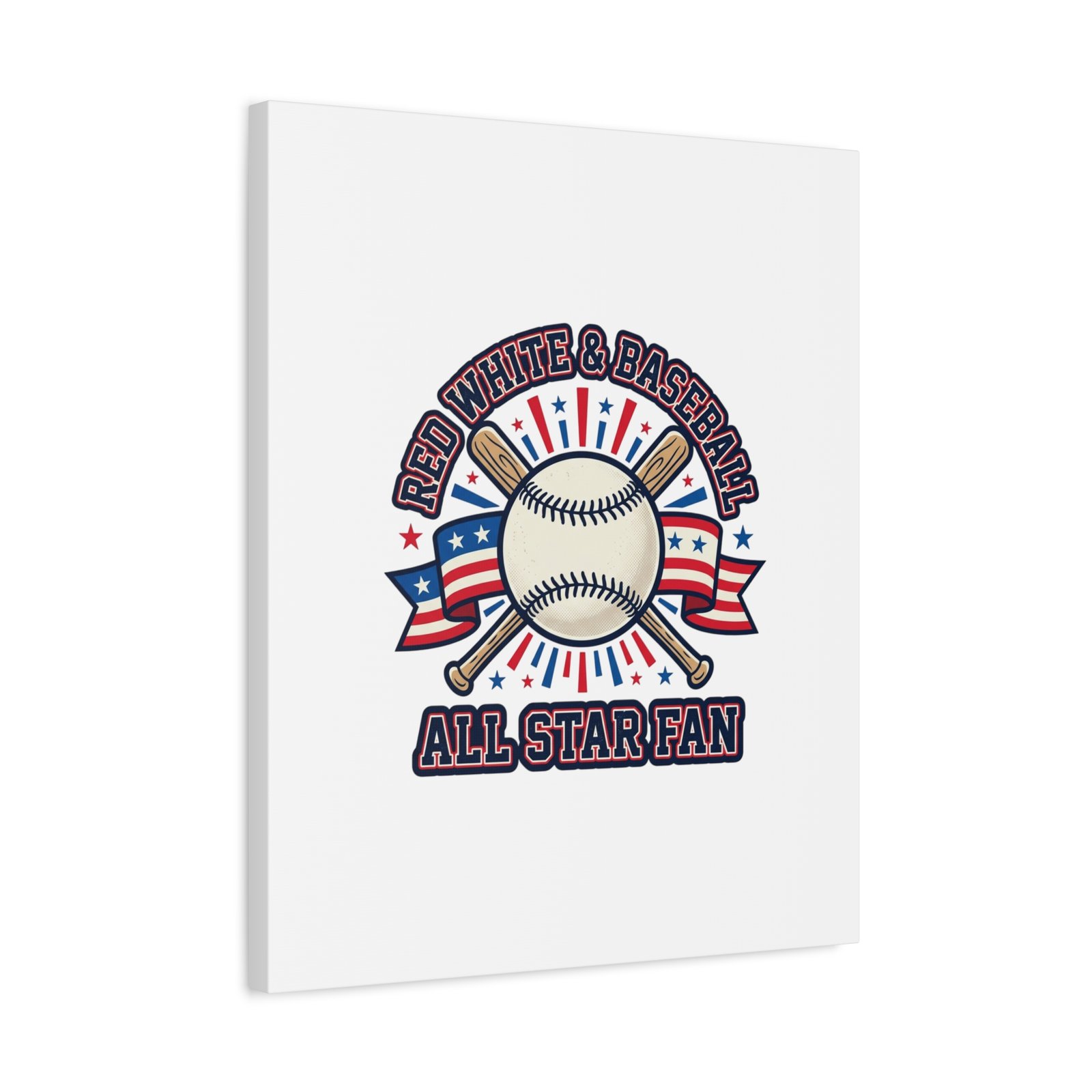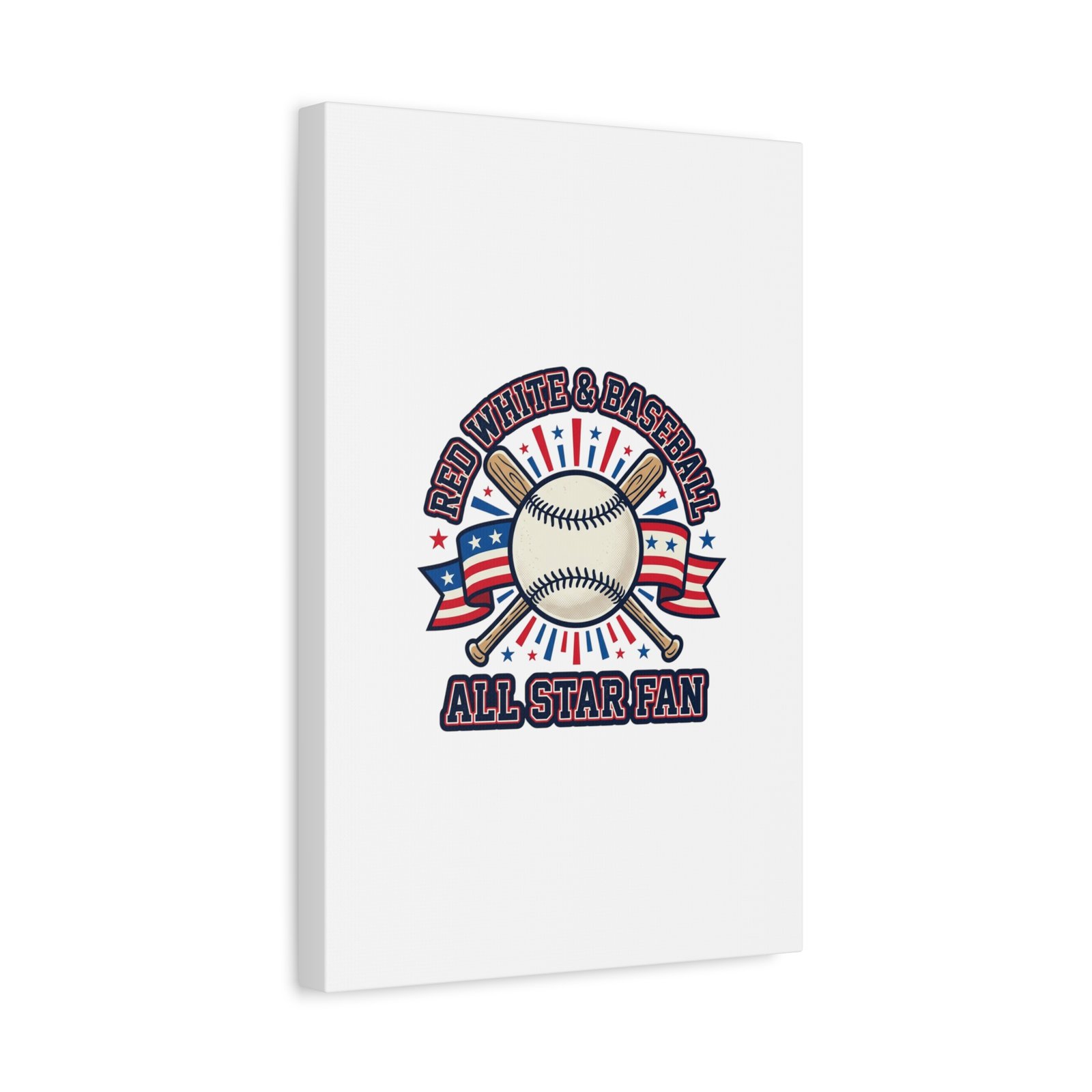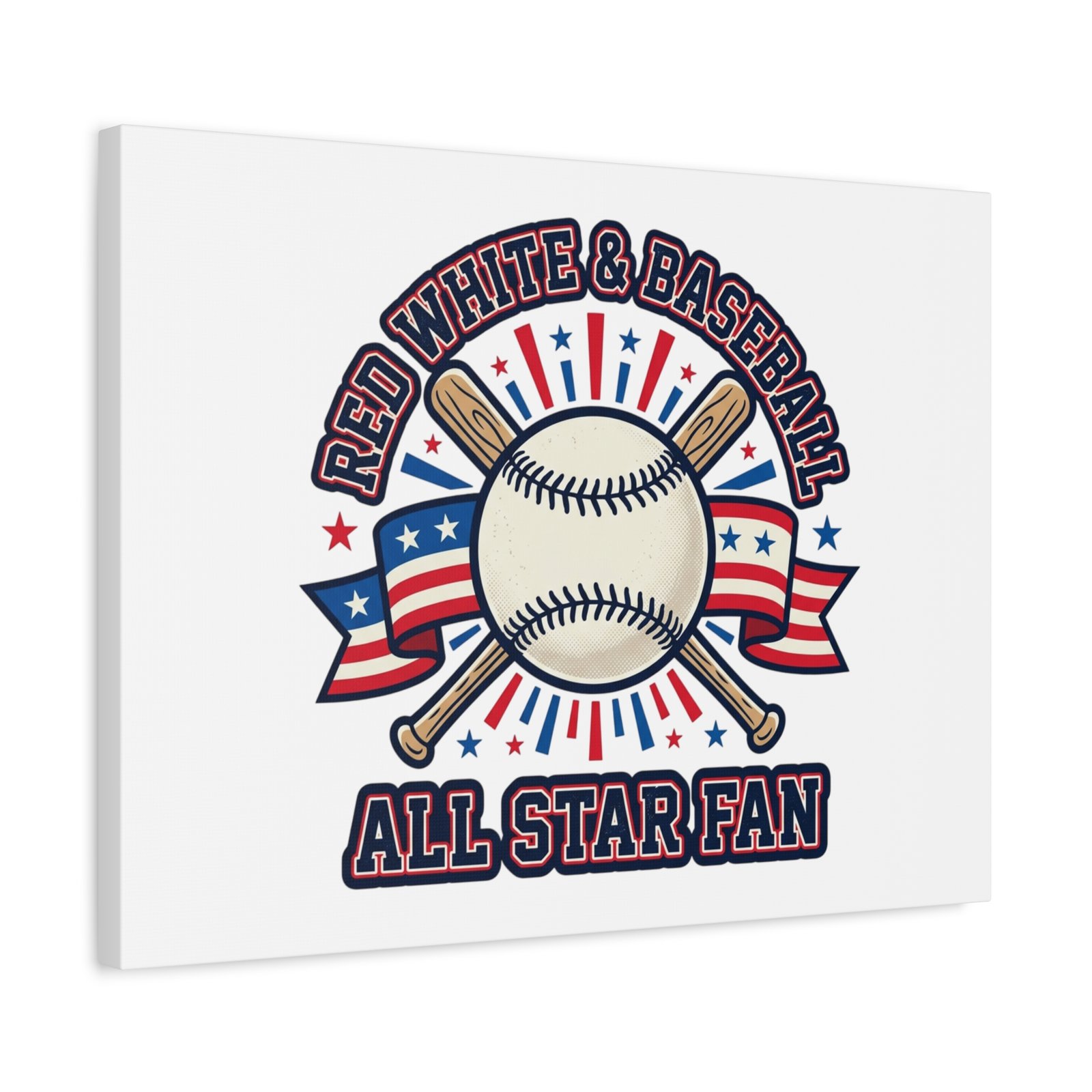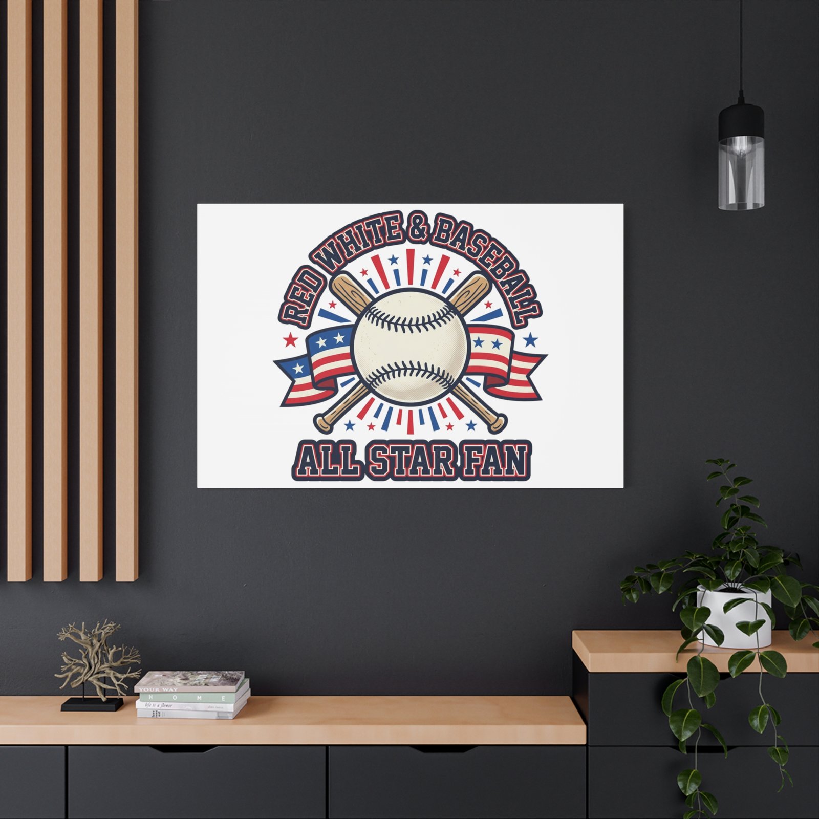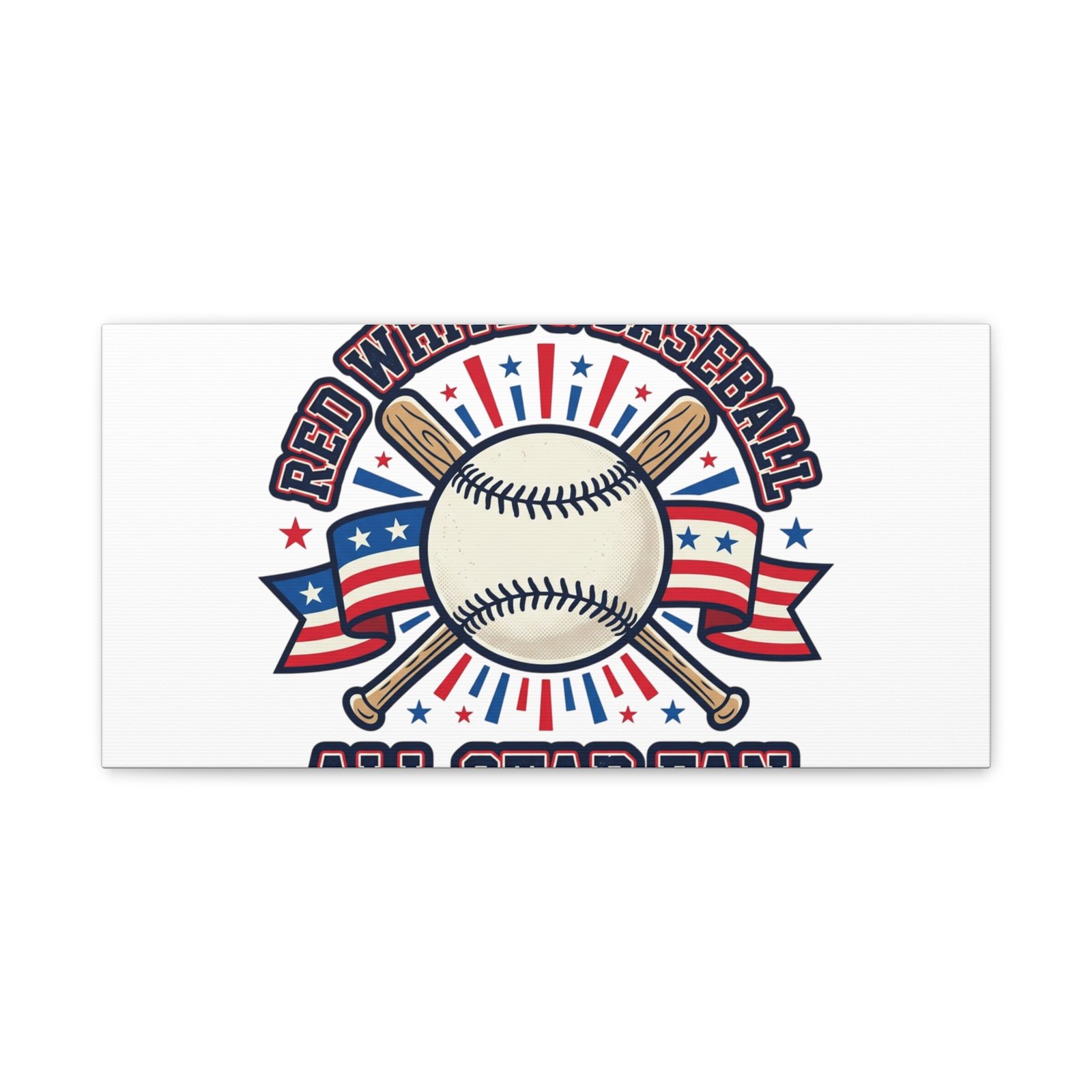 Patriotic Baseball All Star Fan Canvas | Vintage Red White Blue Ballpark Art
