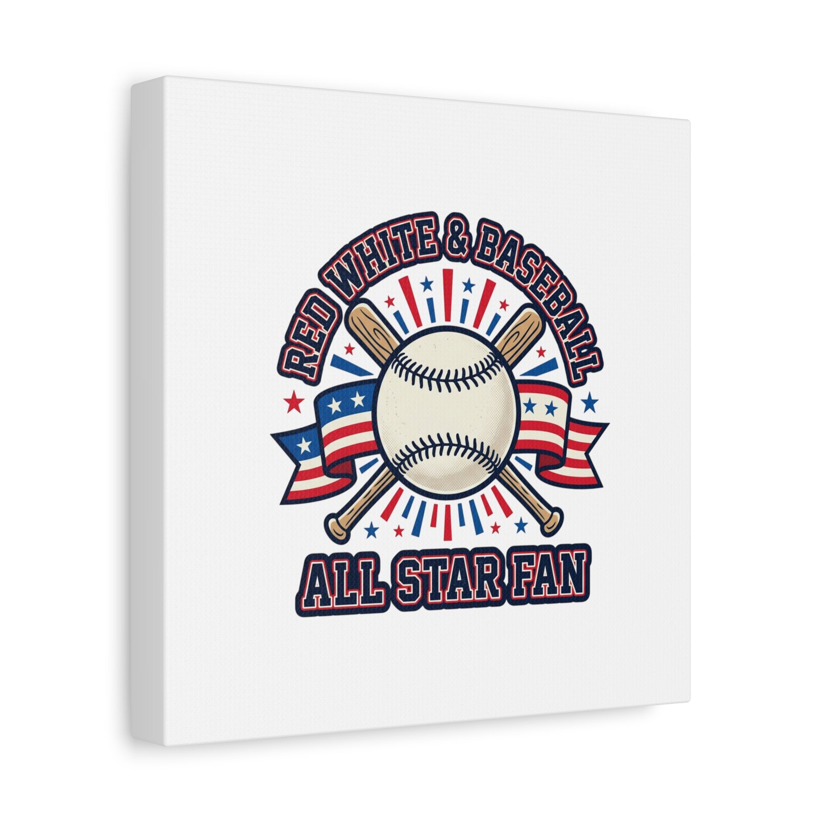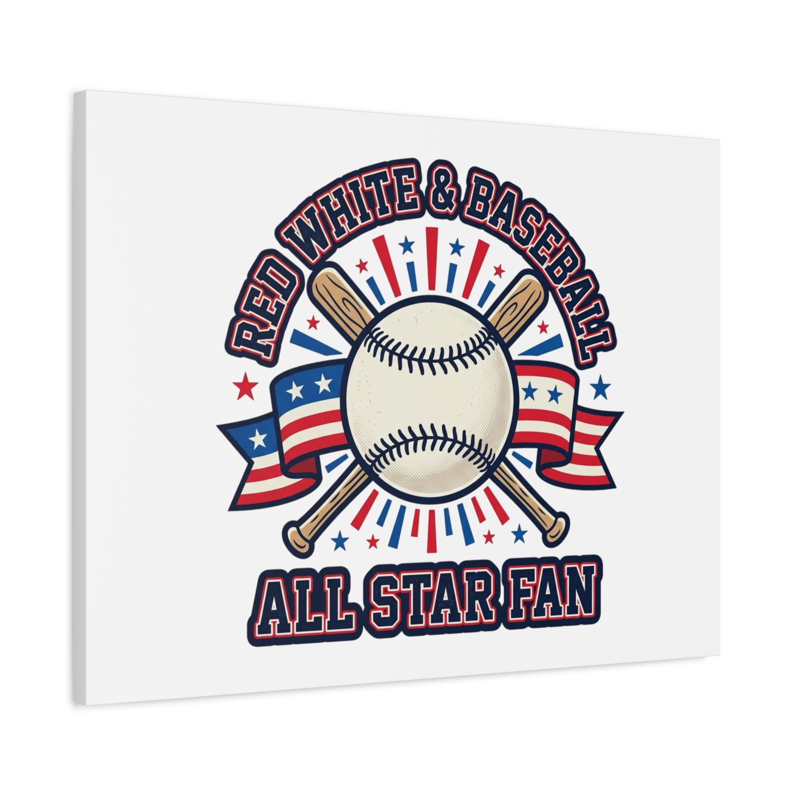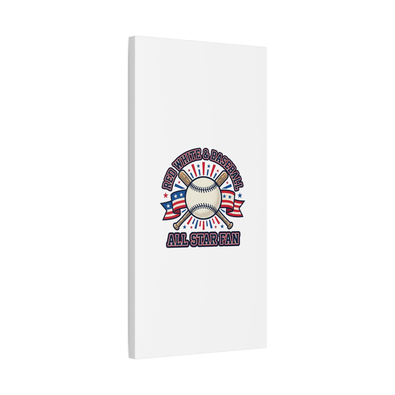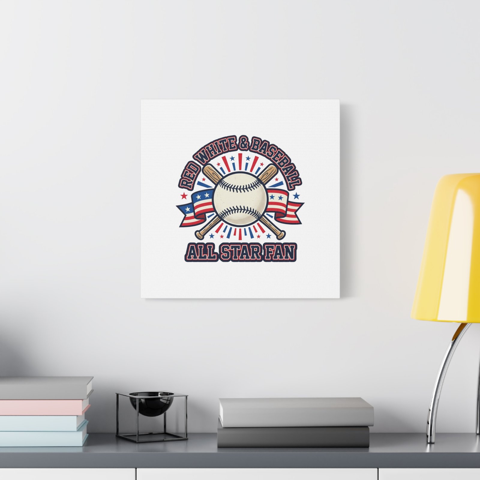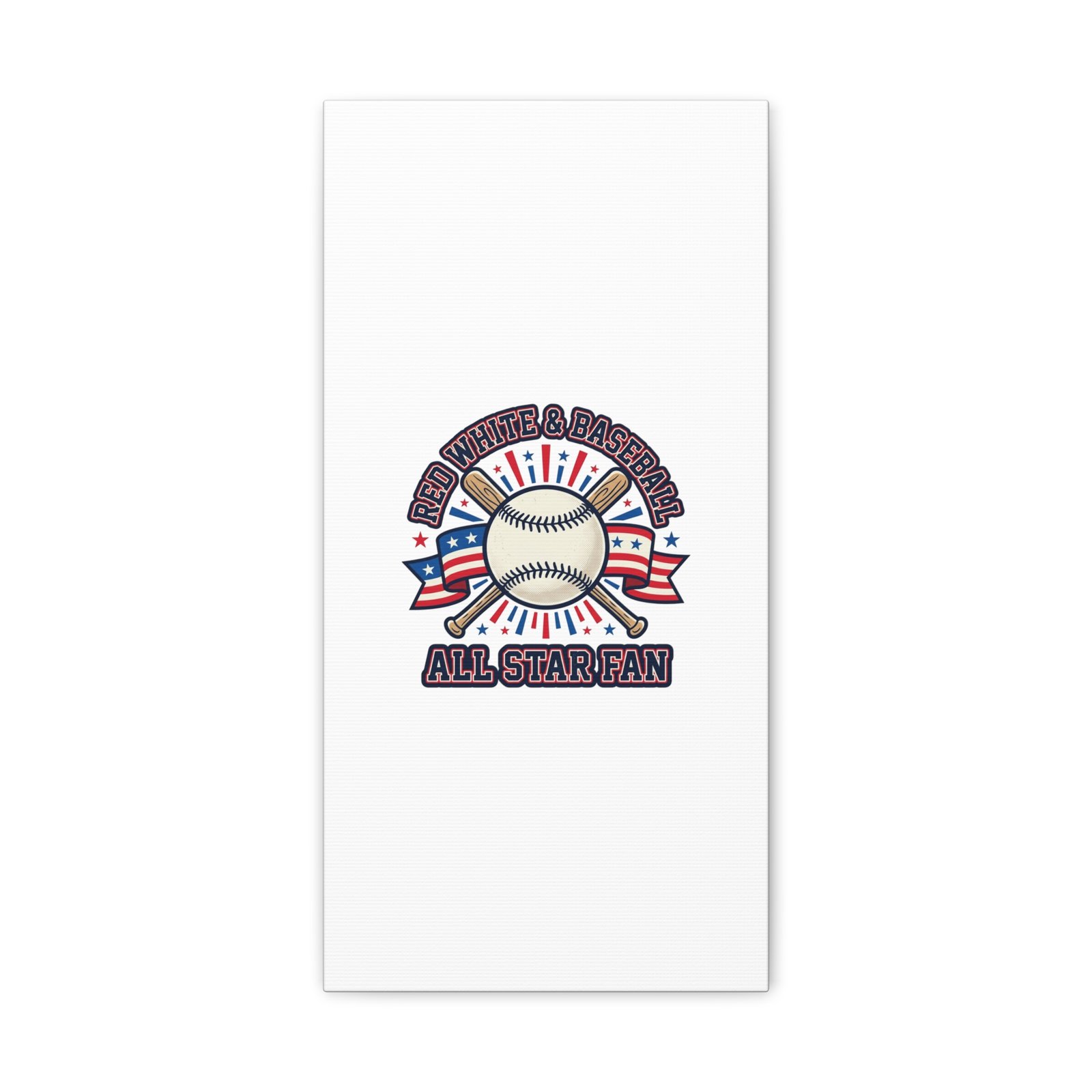 Patriotic Baseball All Star Fan Canvas | Vintage Red White Blue Ballpark Art