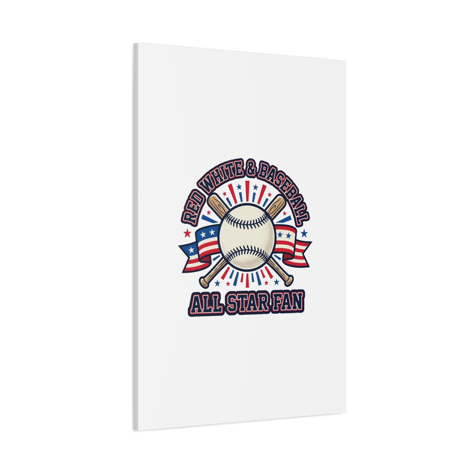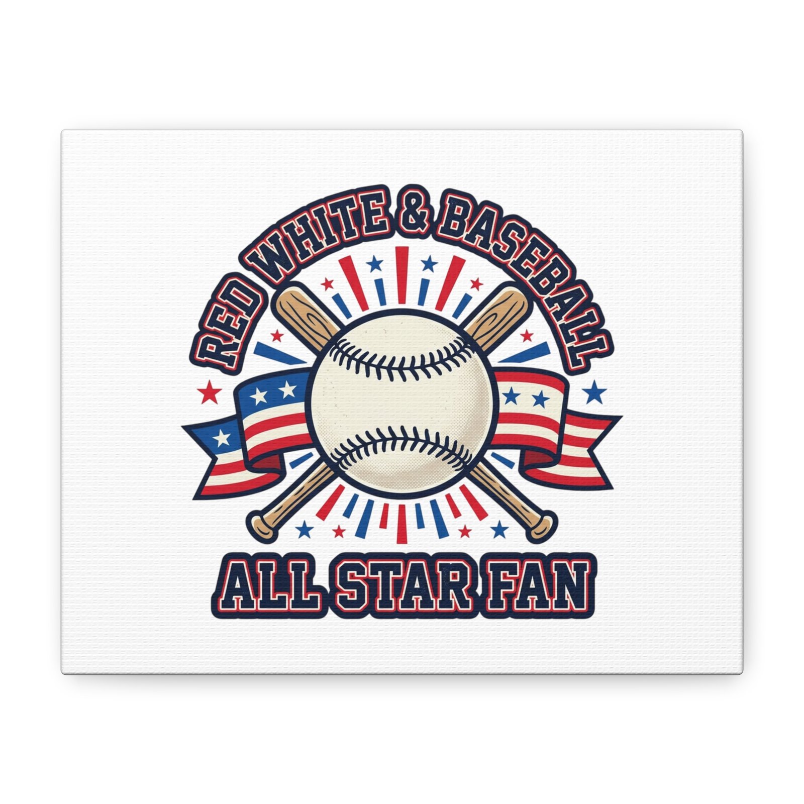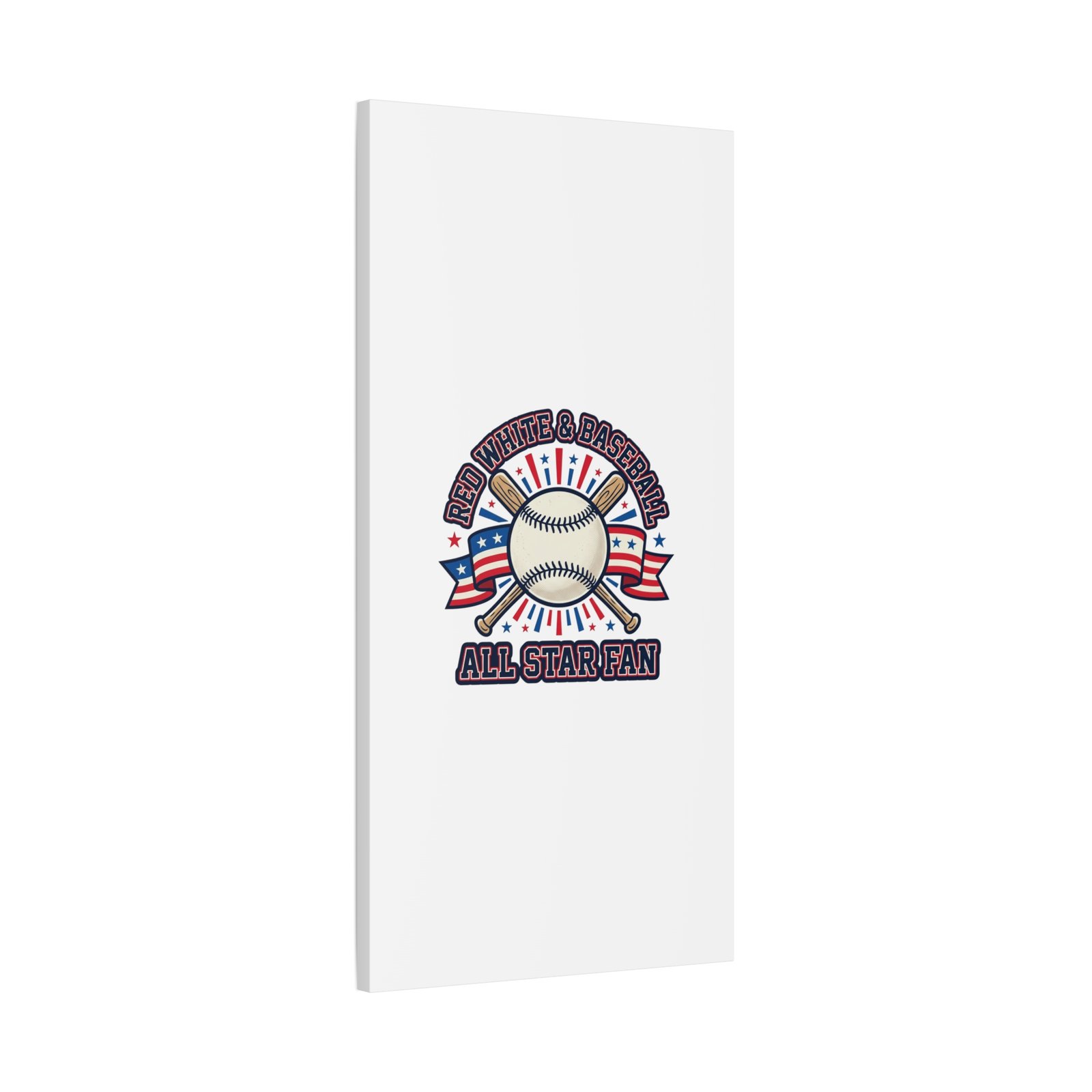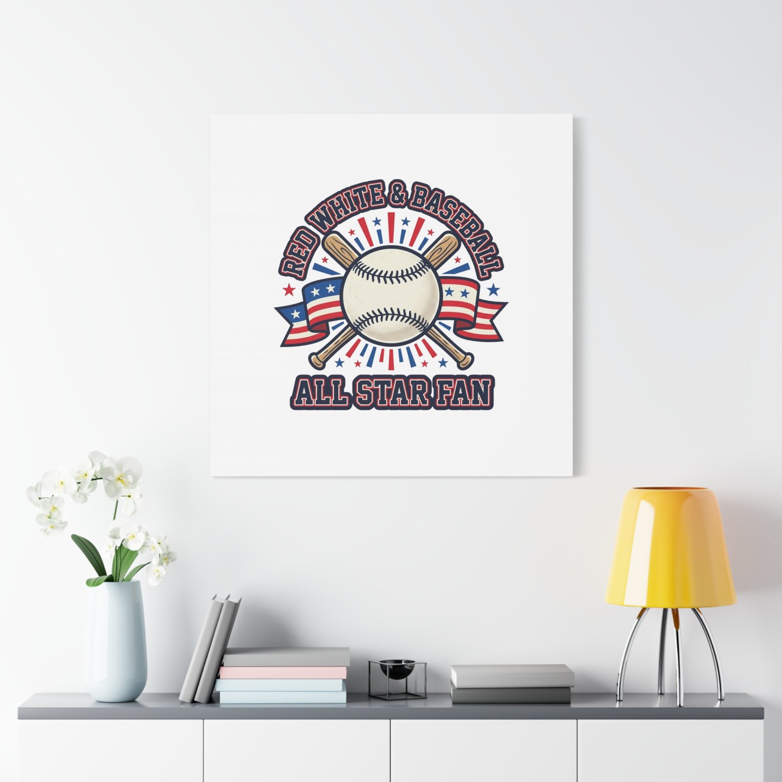 Patriotic Baseball All Star Fan Canvas | Vintage Red White Blue Ballpark Art