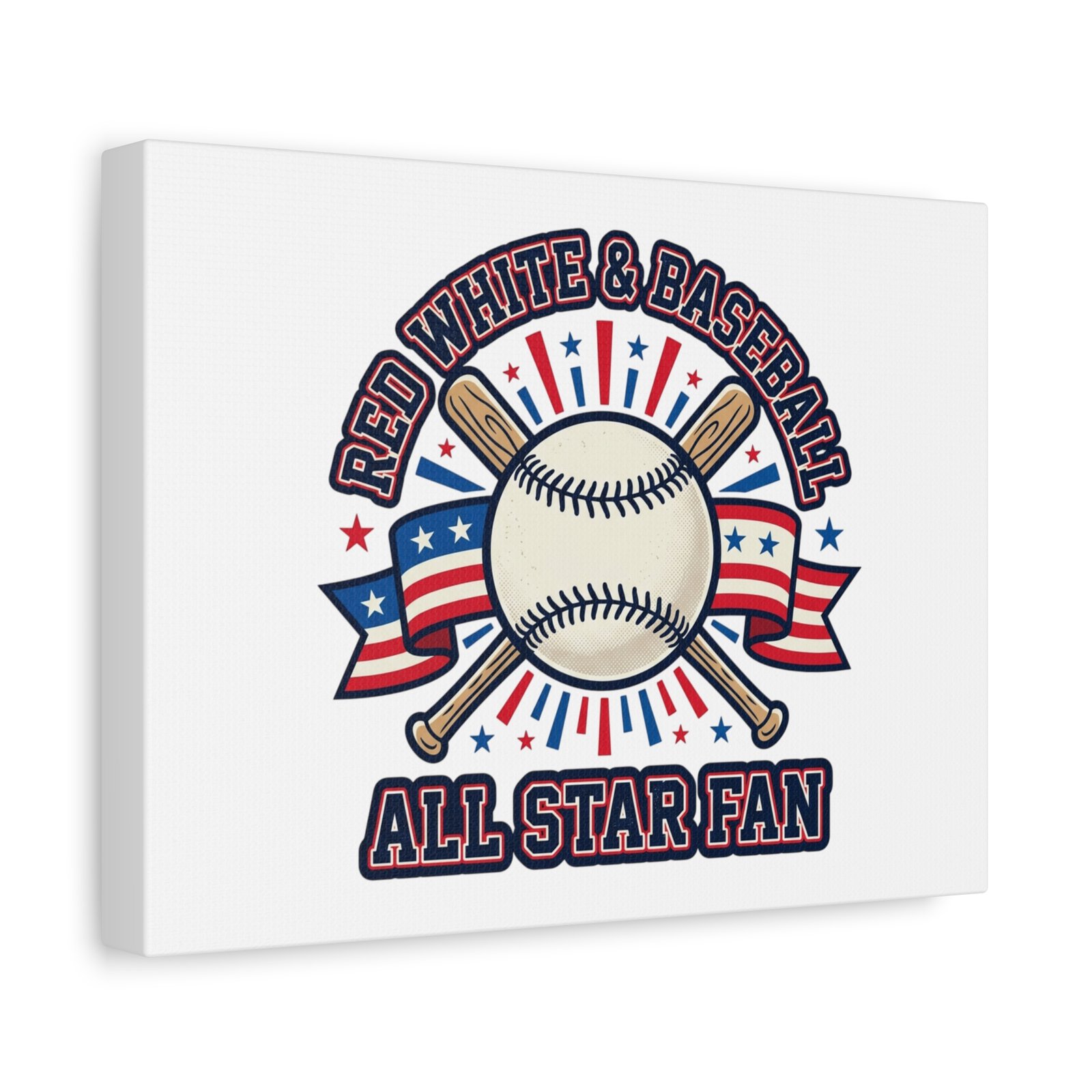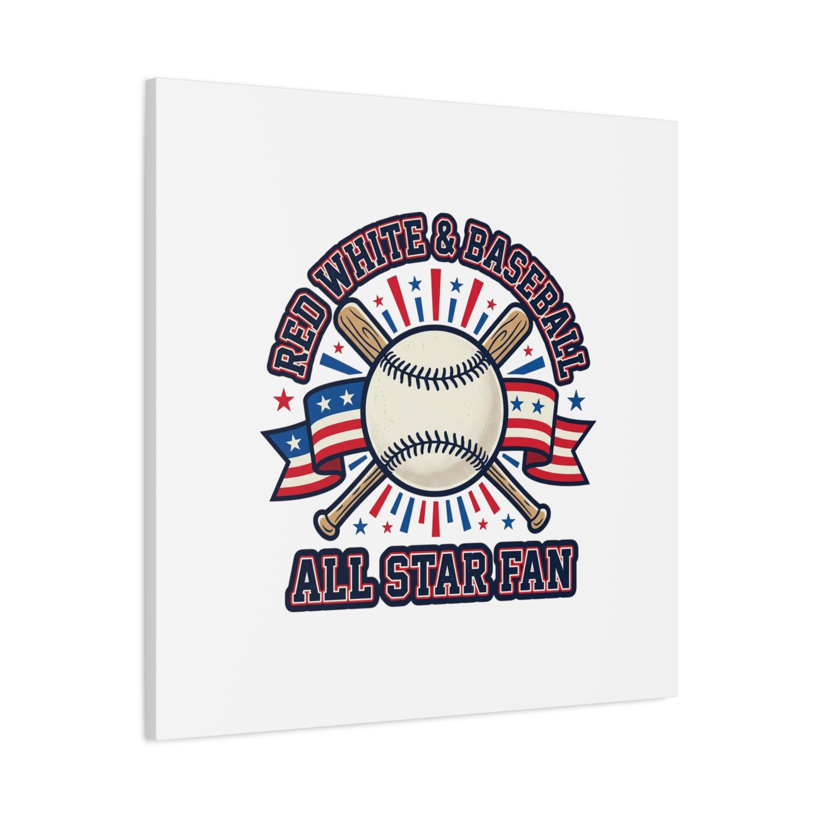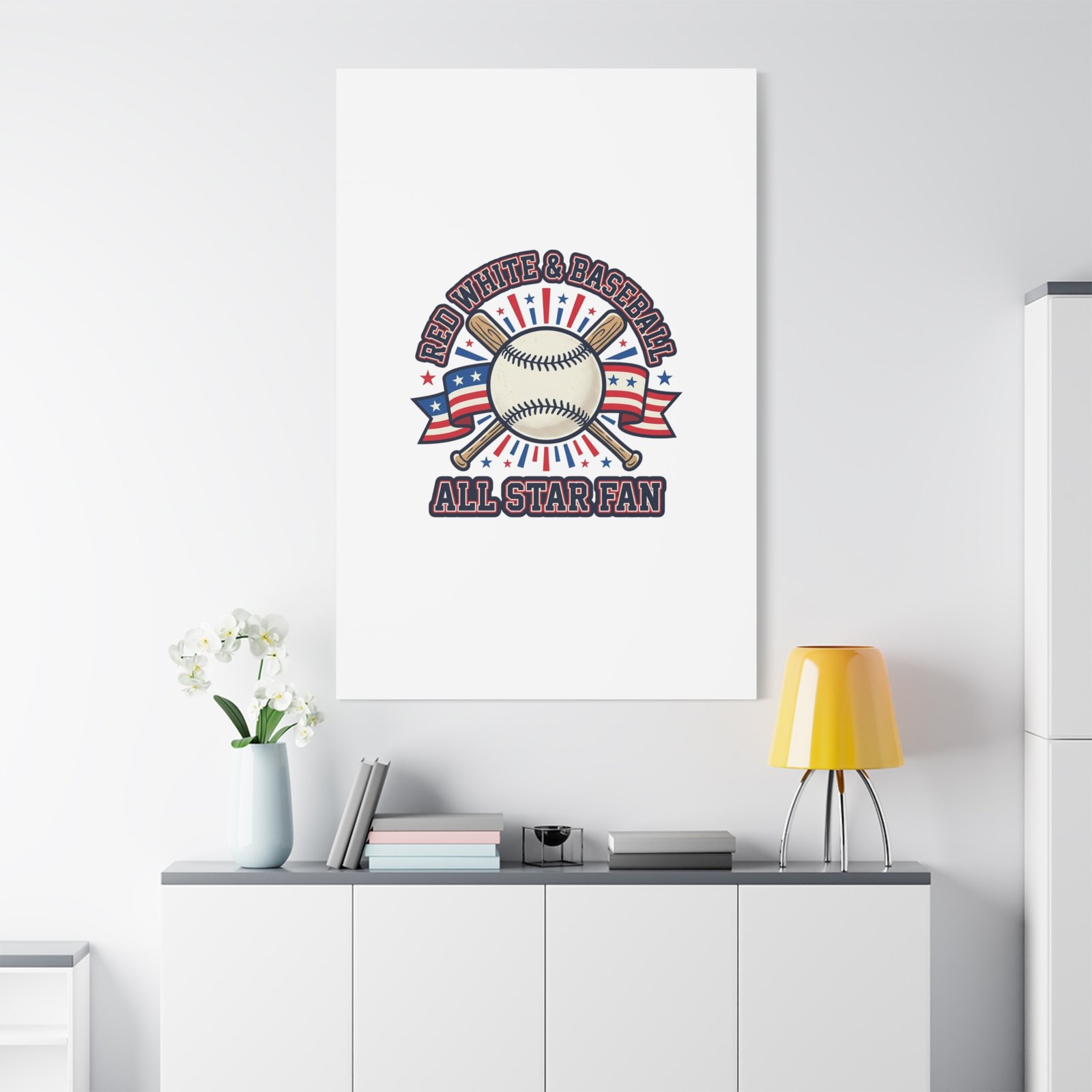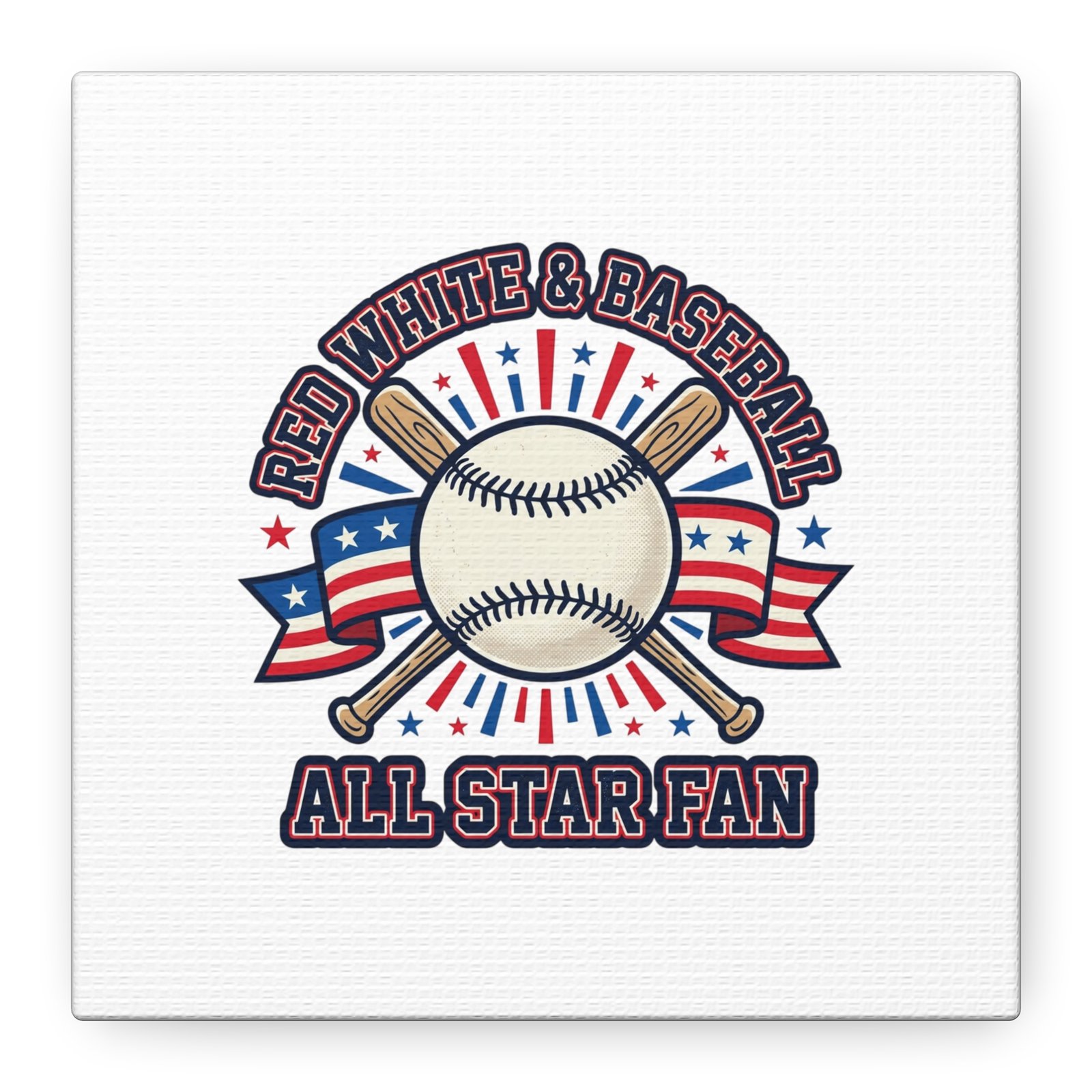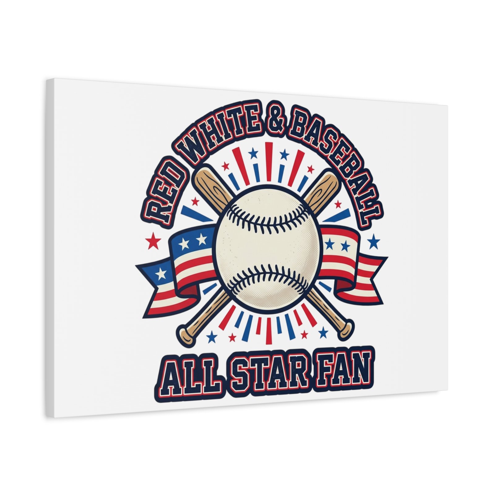Patriotic Baseball All Star Fan Canvas | Vintage Red White Blue Ballpark Art