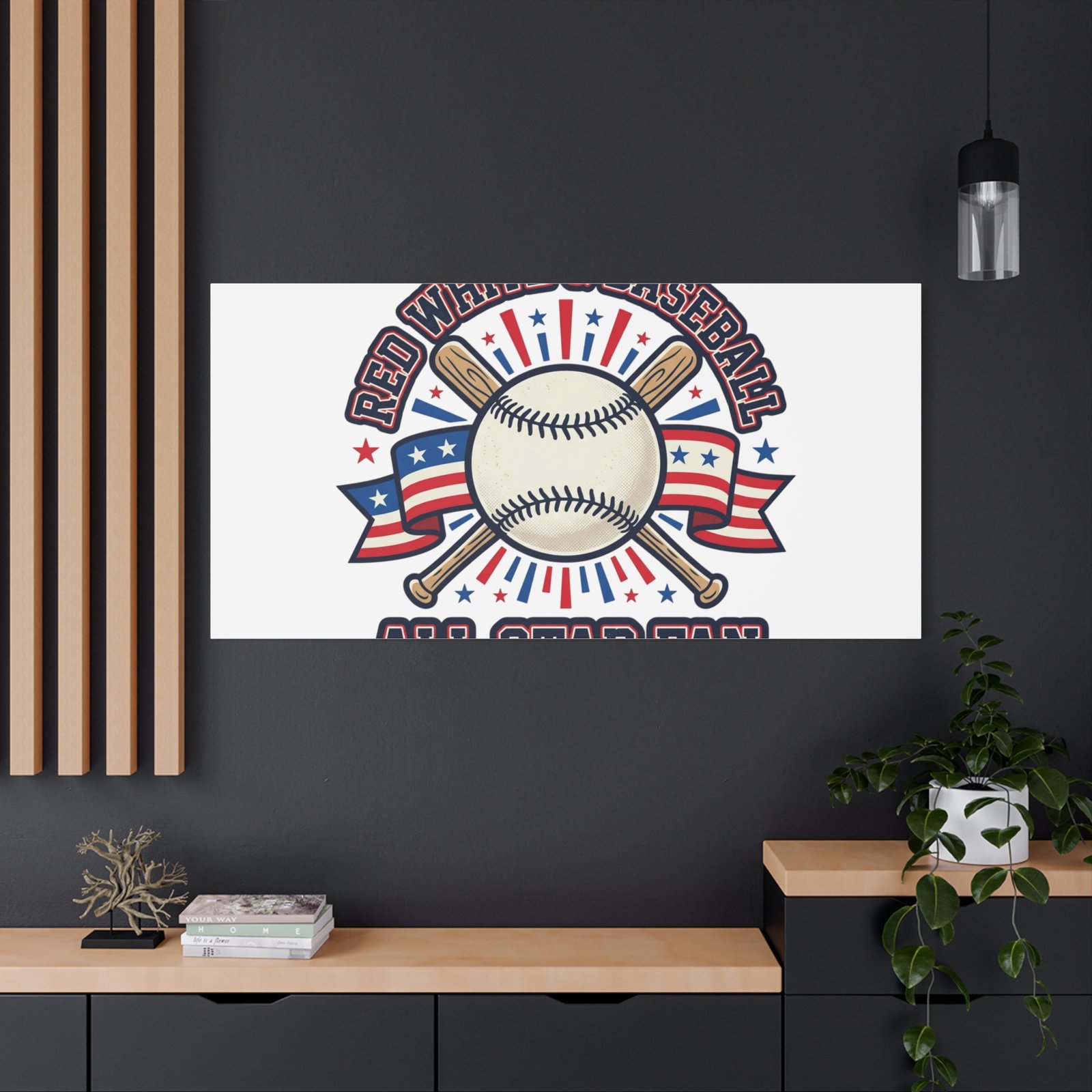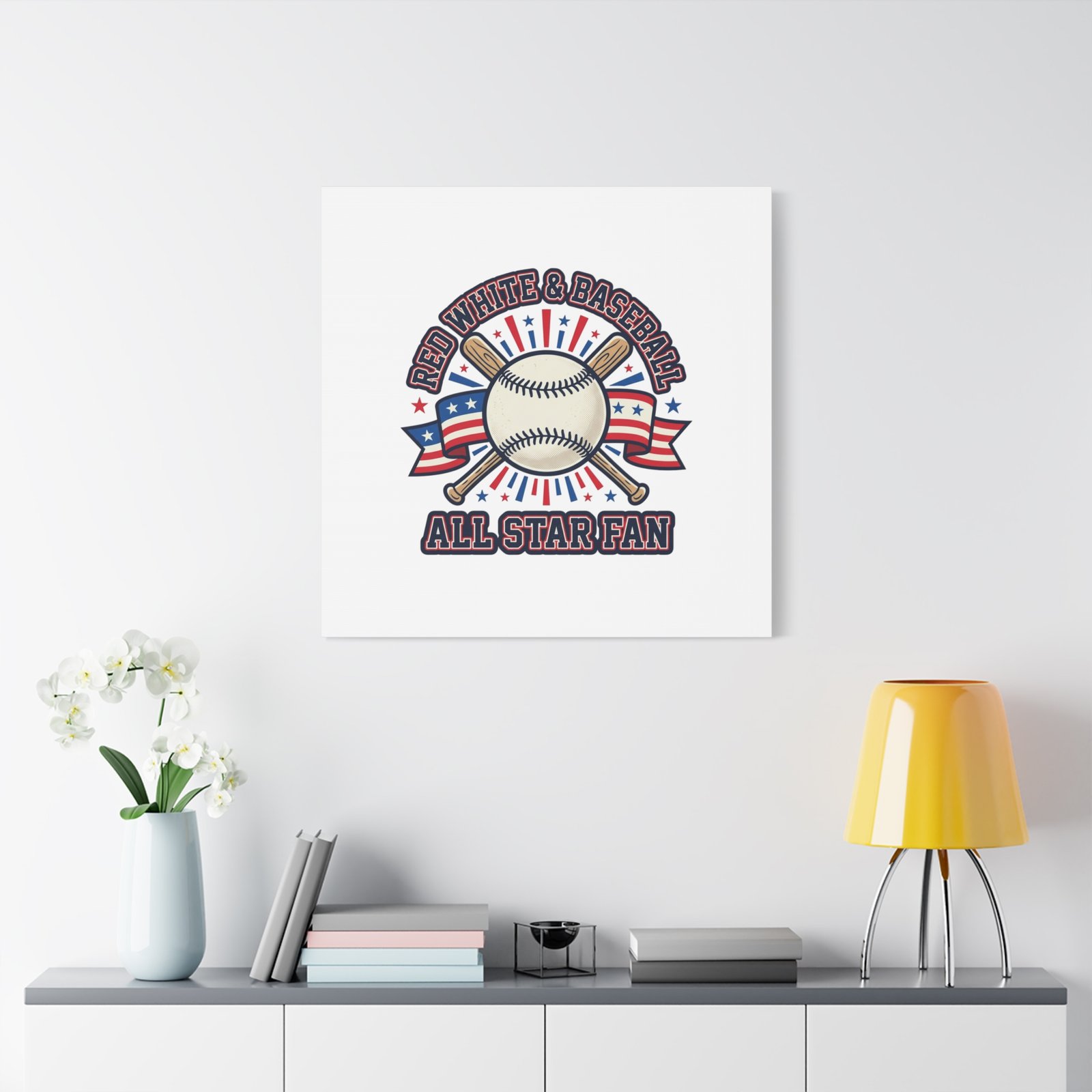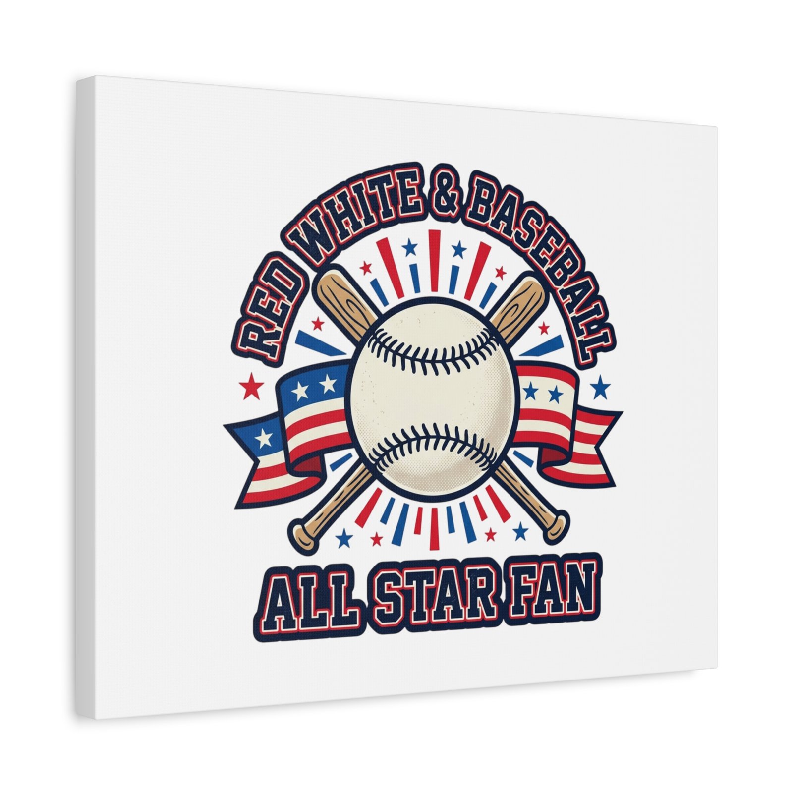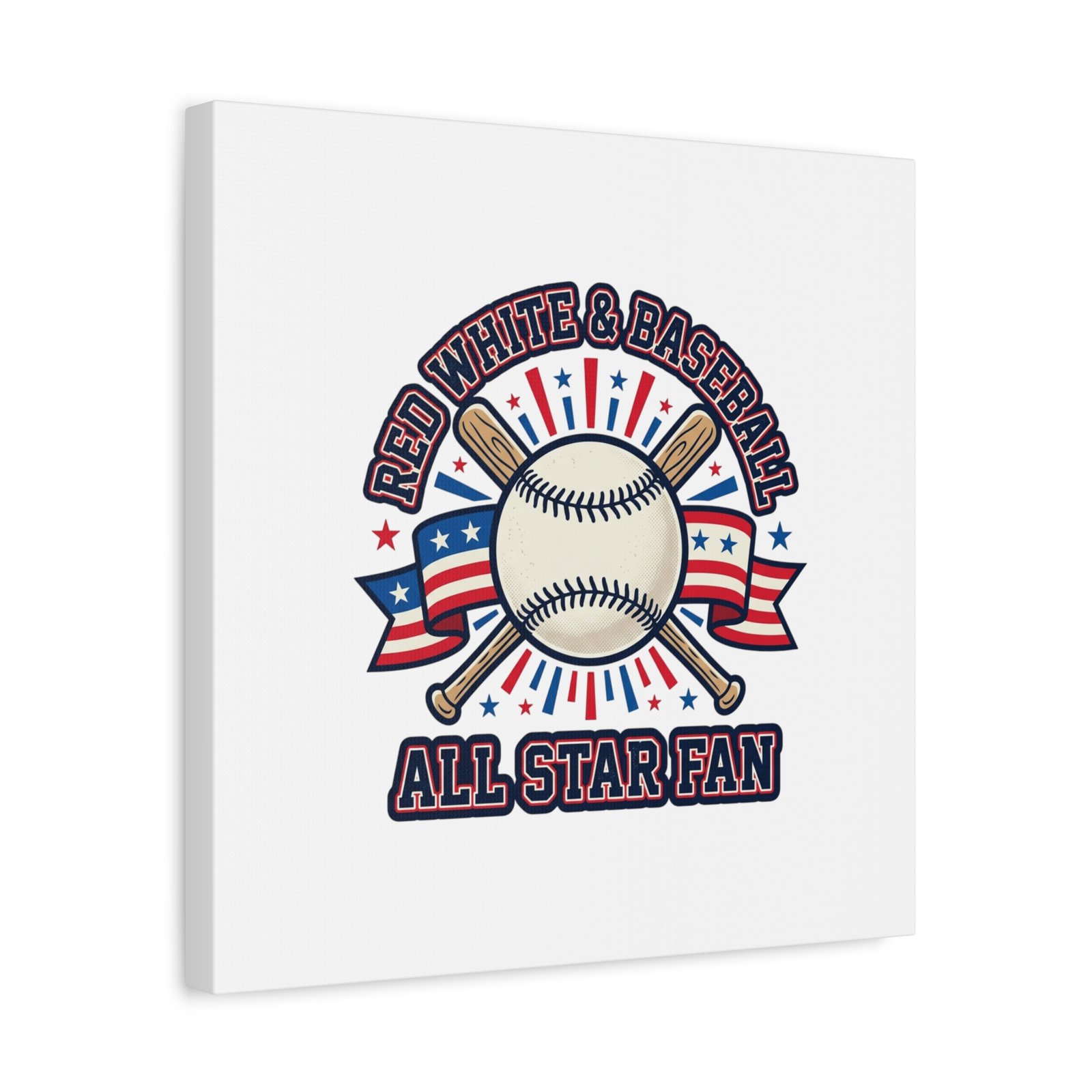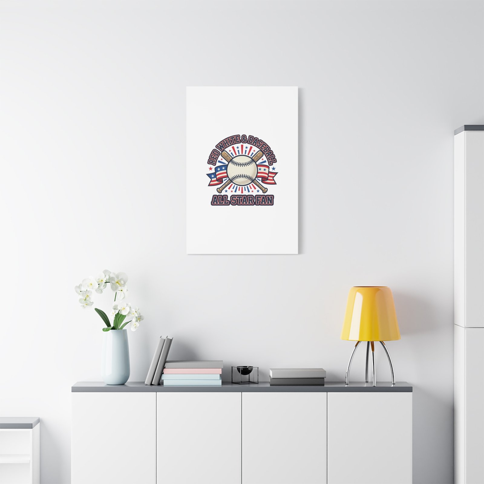 Patriotic Baseball All Star Fan Canvas | Vintage Red White Blue Ballpark Art