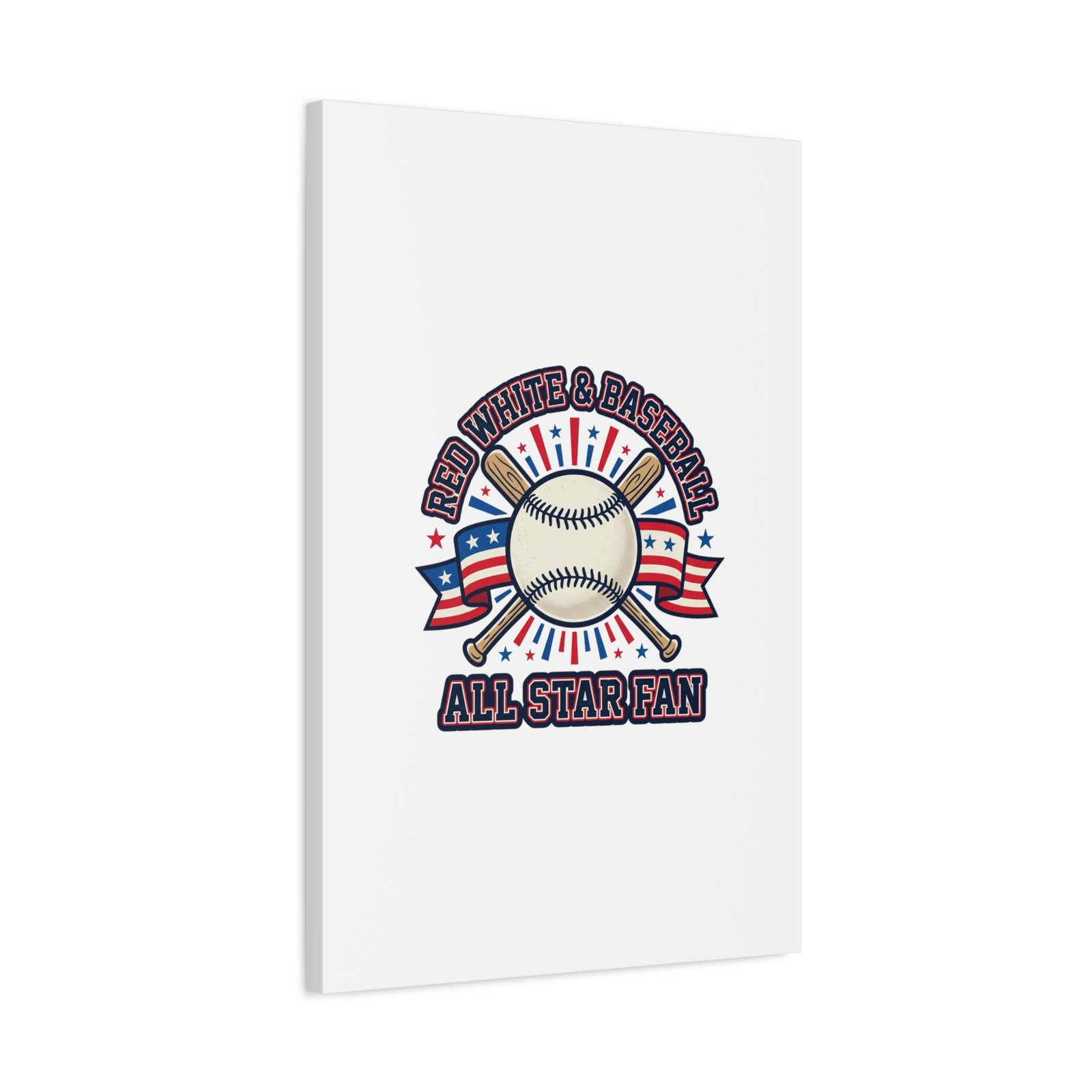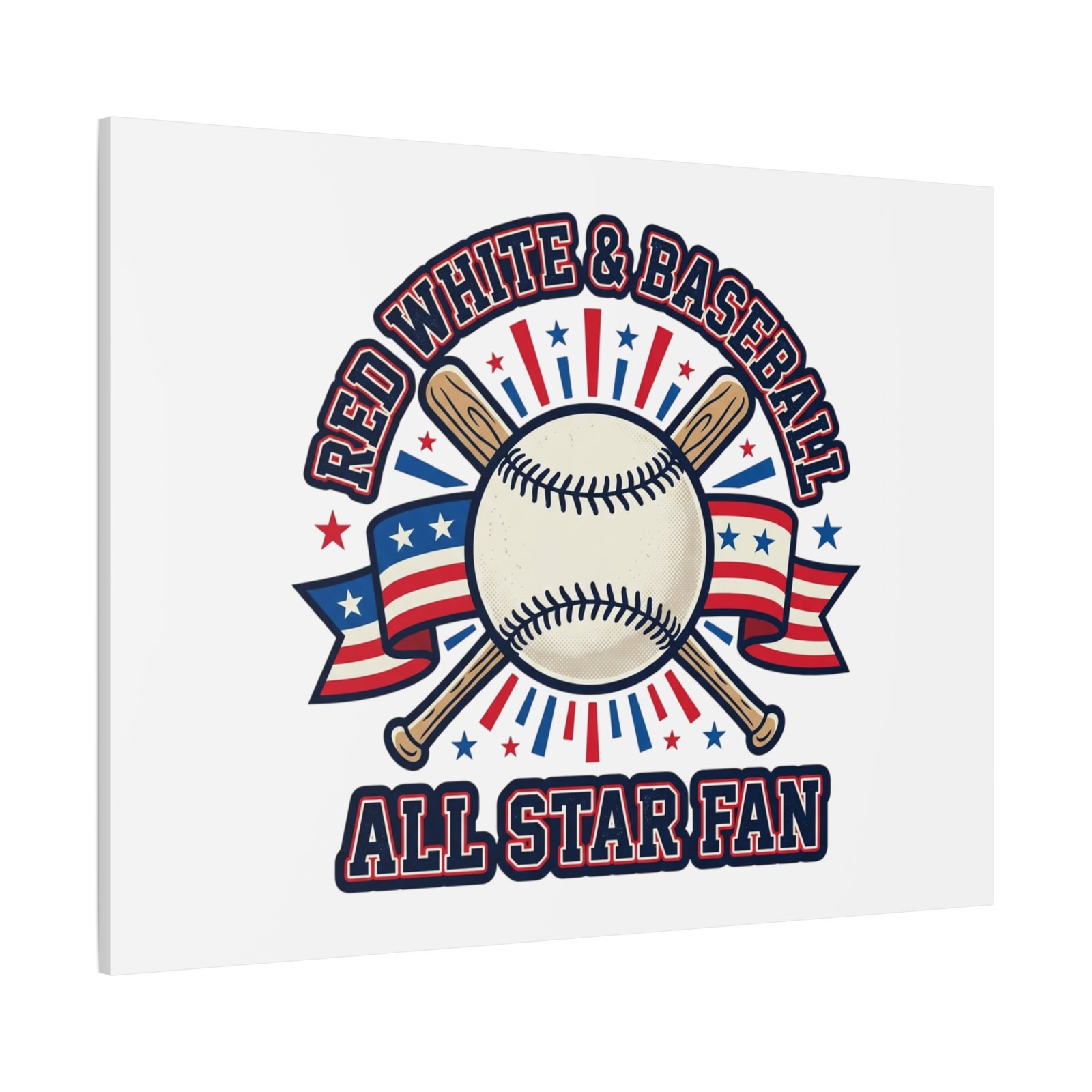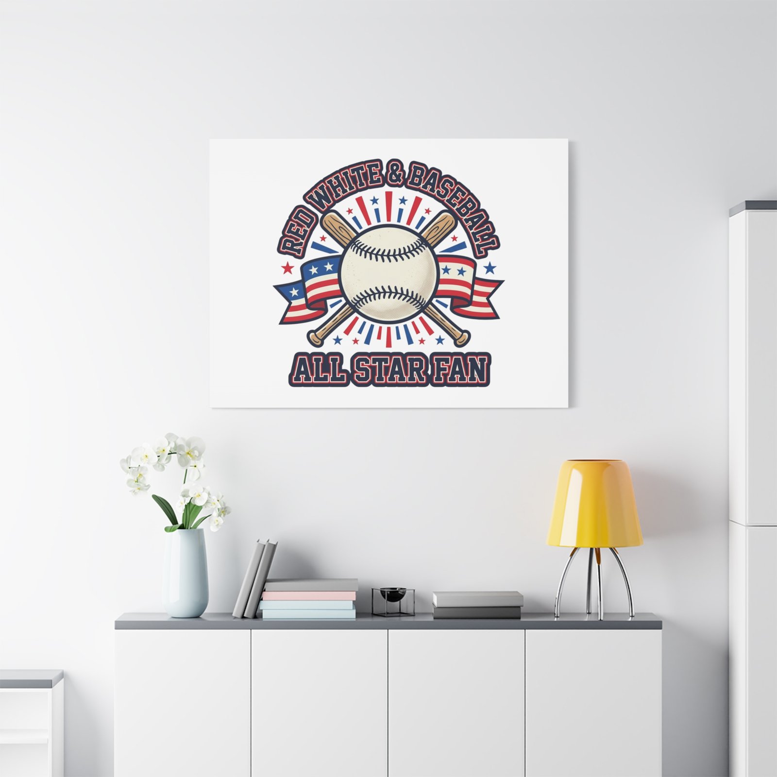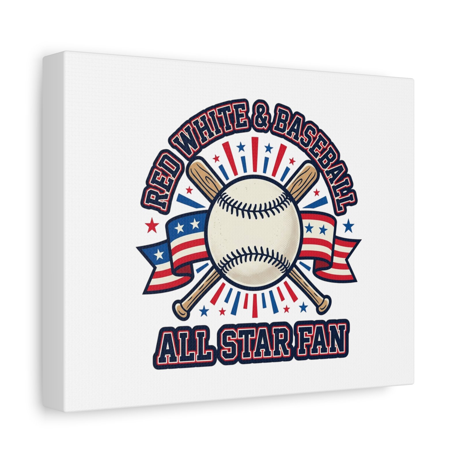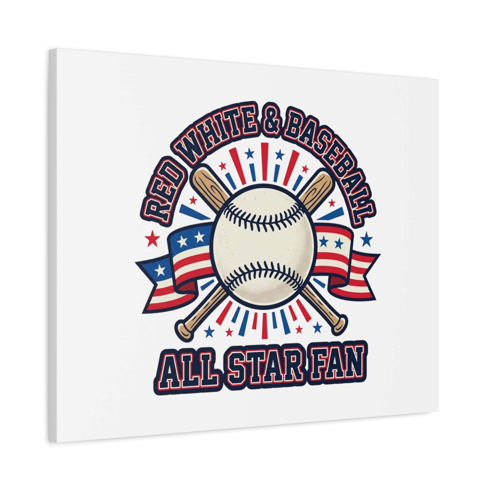 Patriotic Baseball All Star Fan Canvas | Vintage Red White Blue Ballpark Art