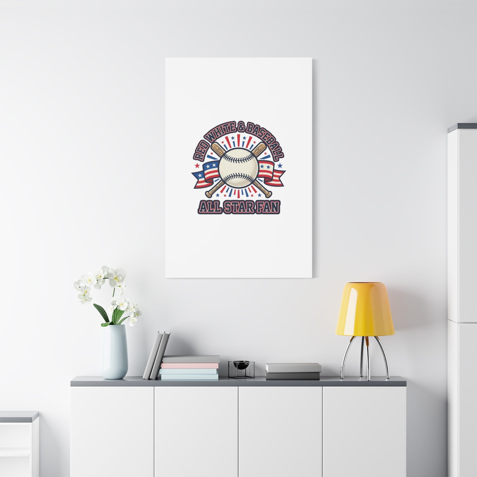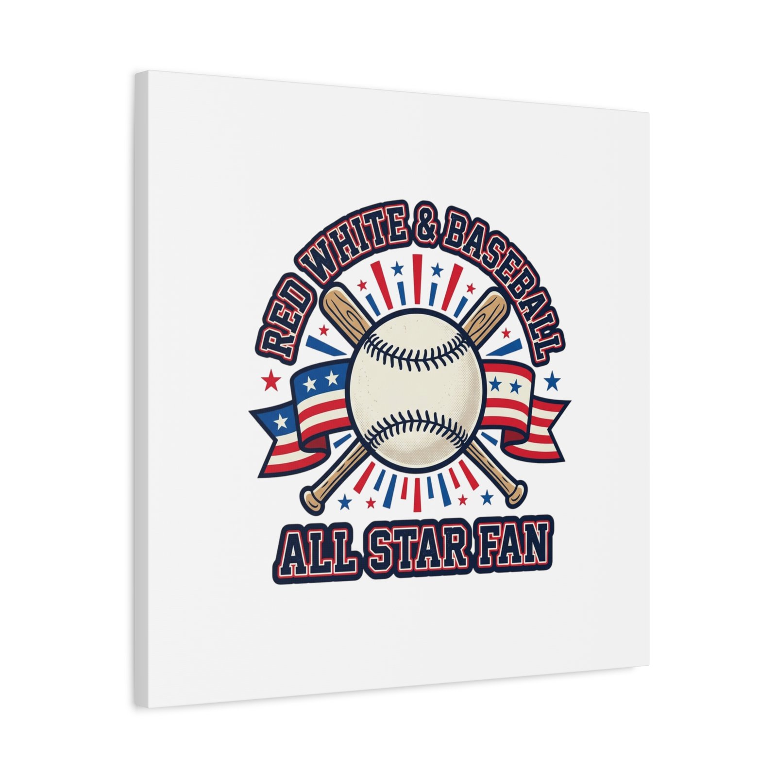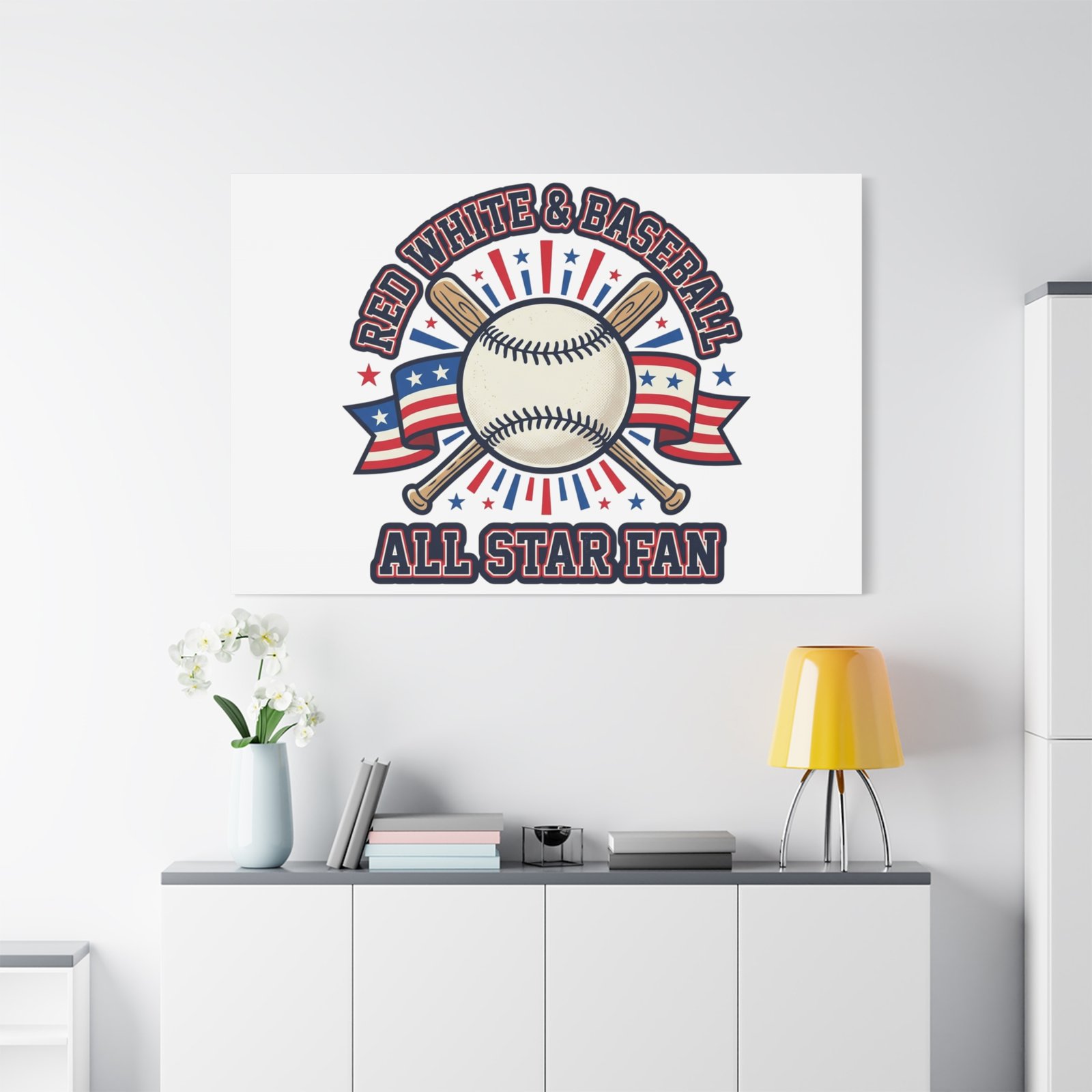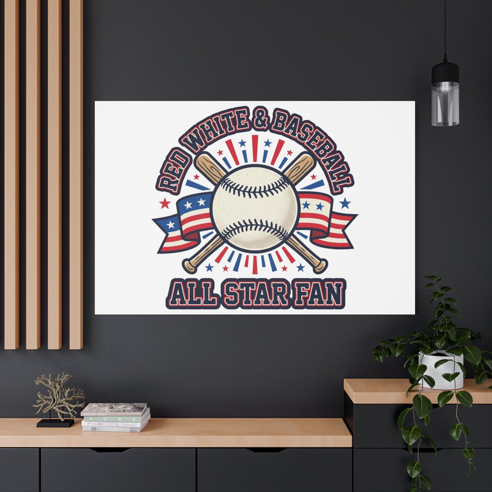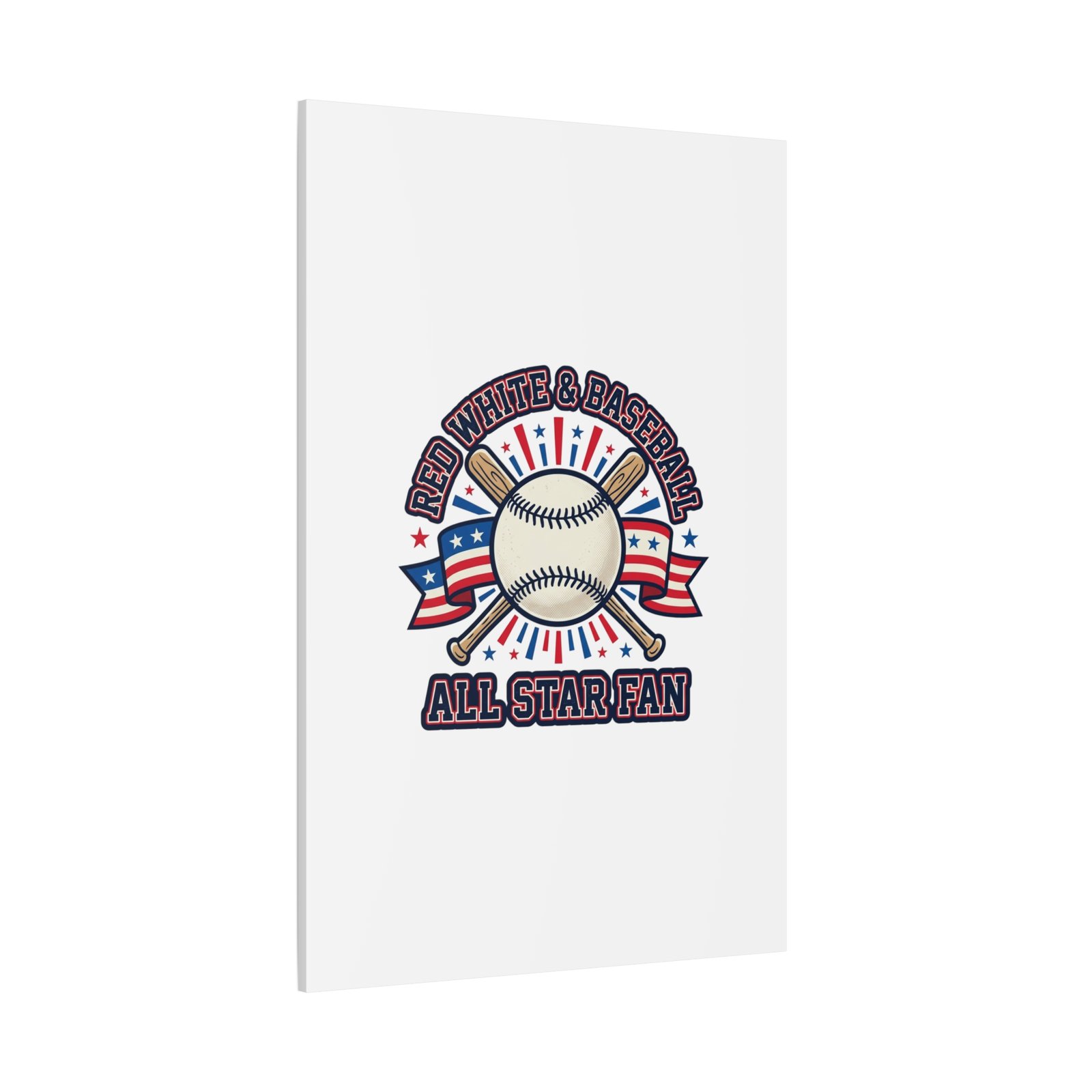 Patriotic Baseball All Star Fan Canvas | Vintage Red White Blue Ballpark Art
