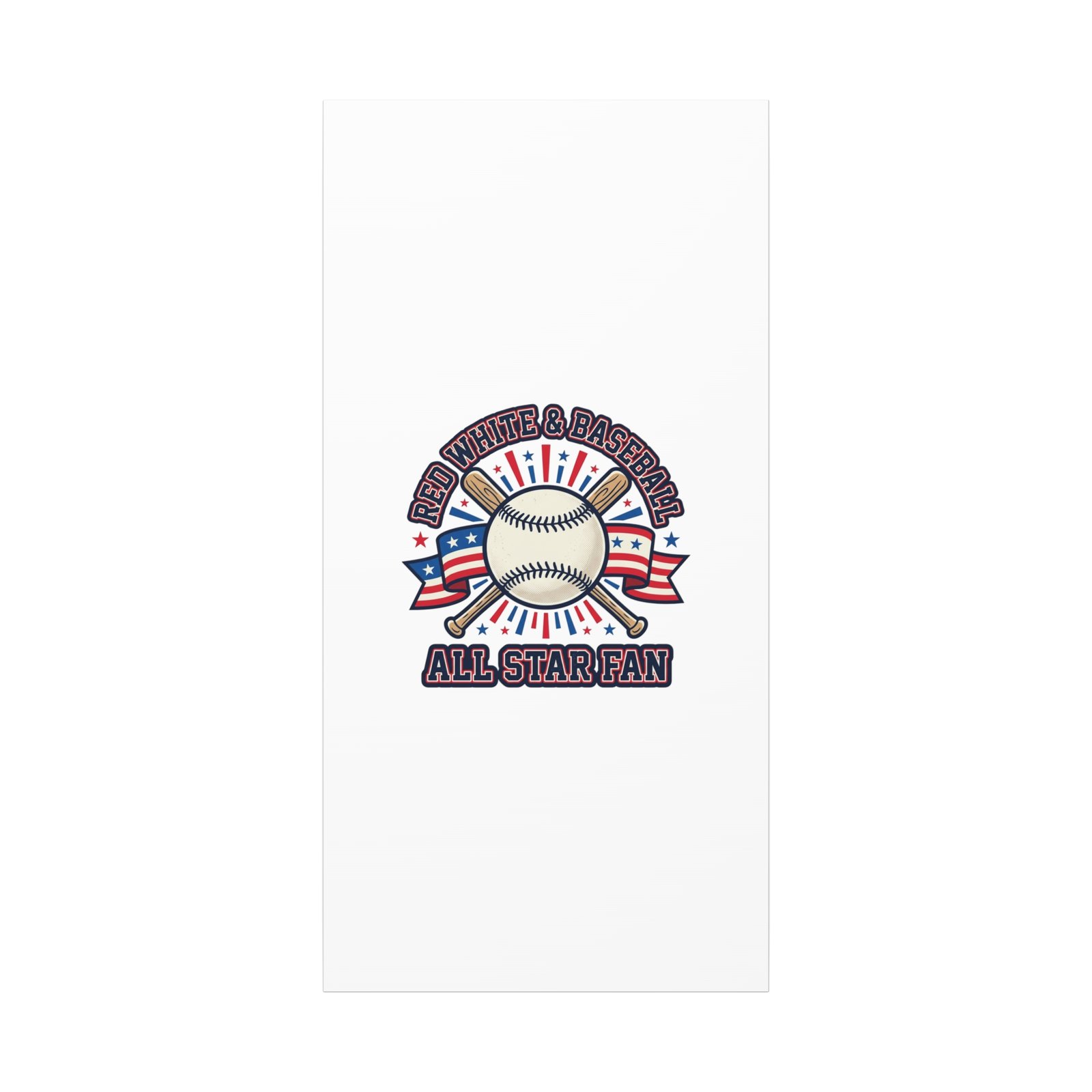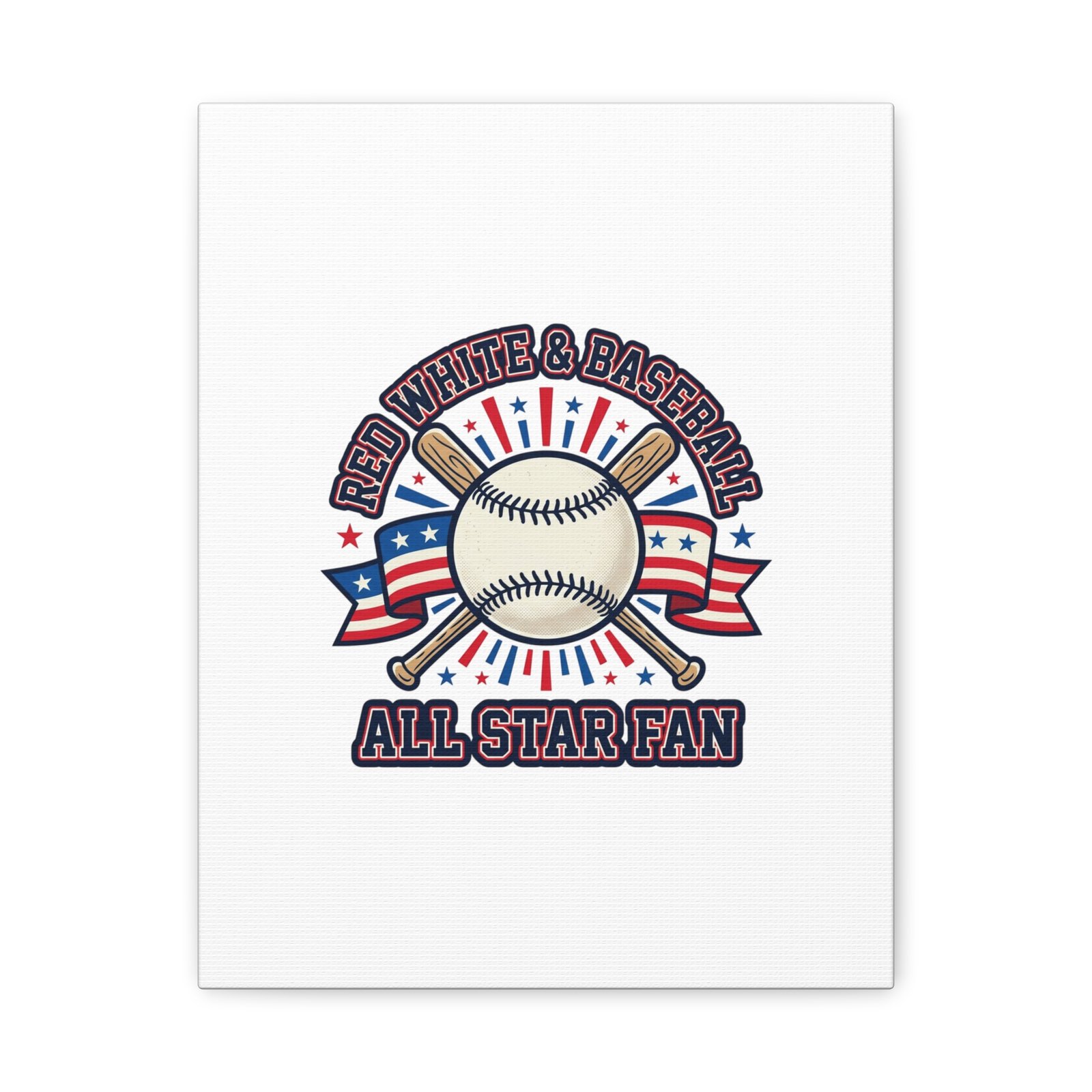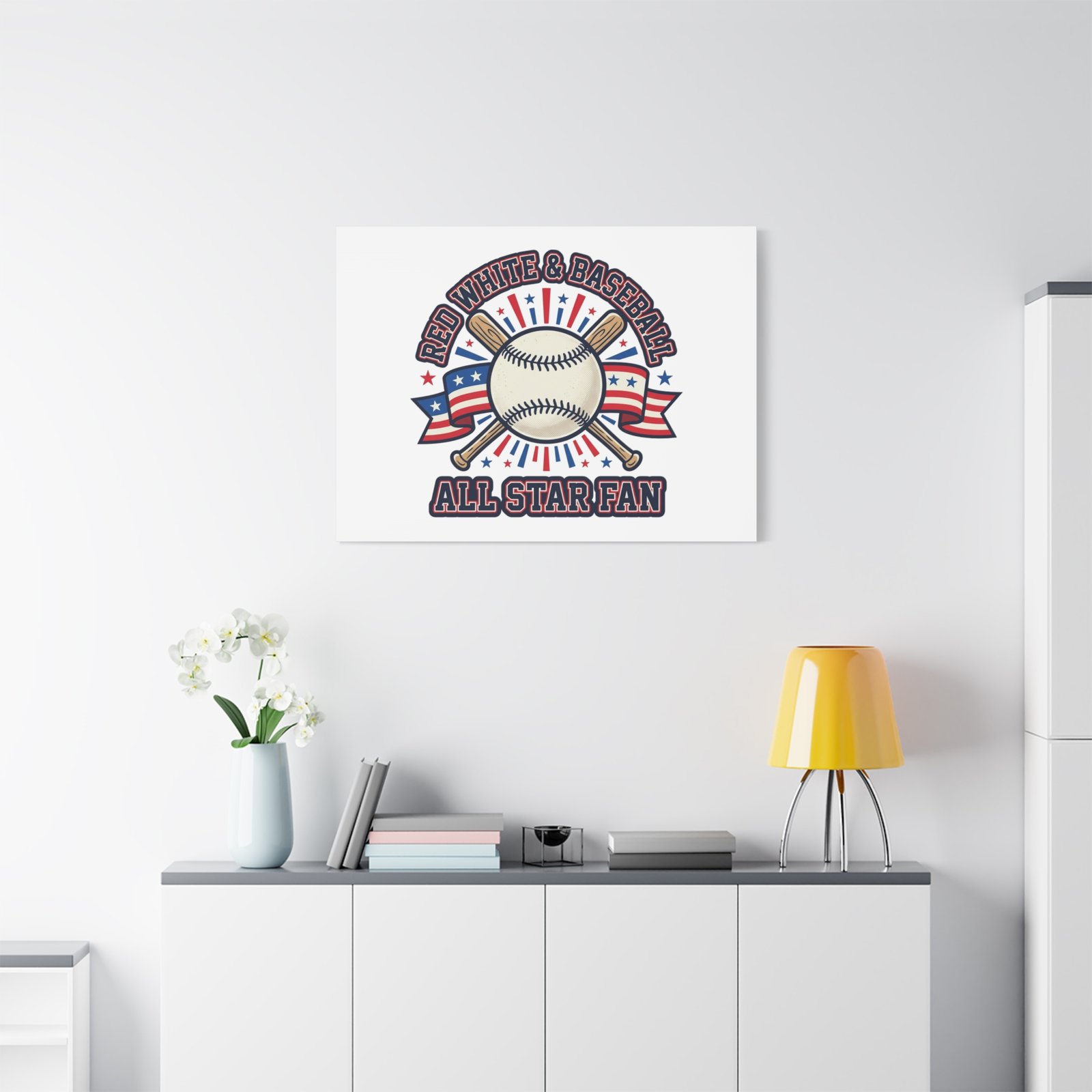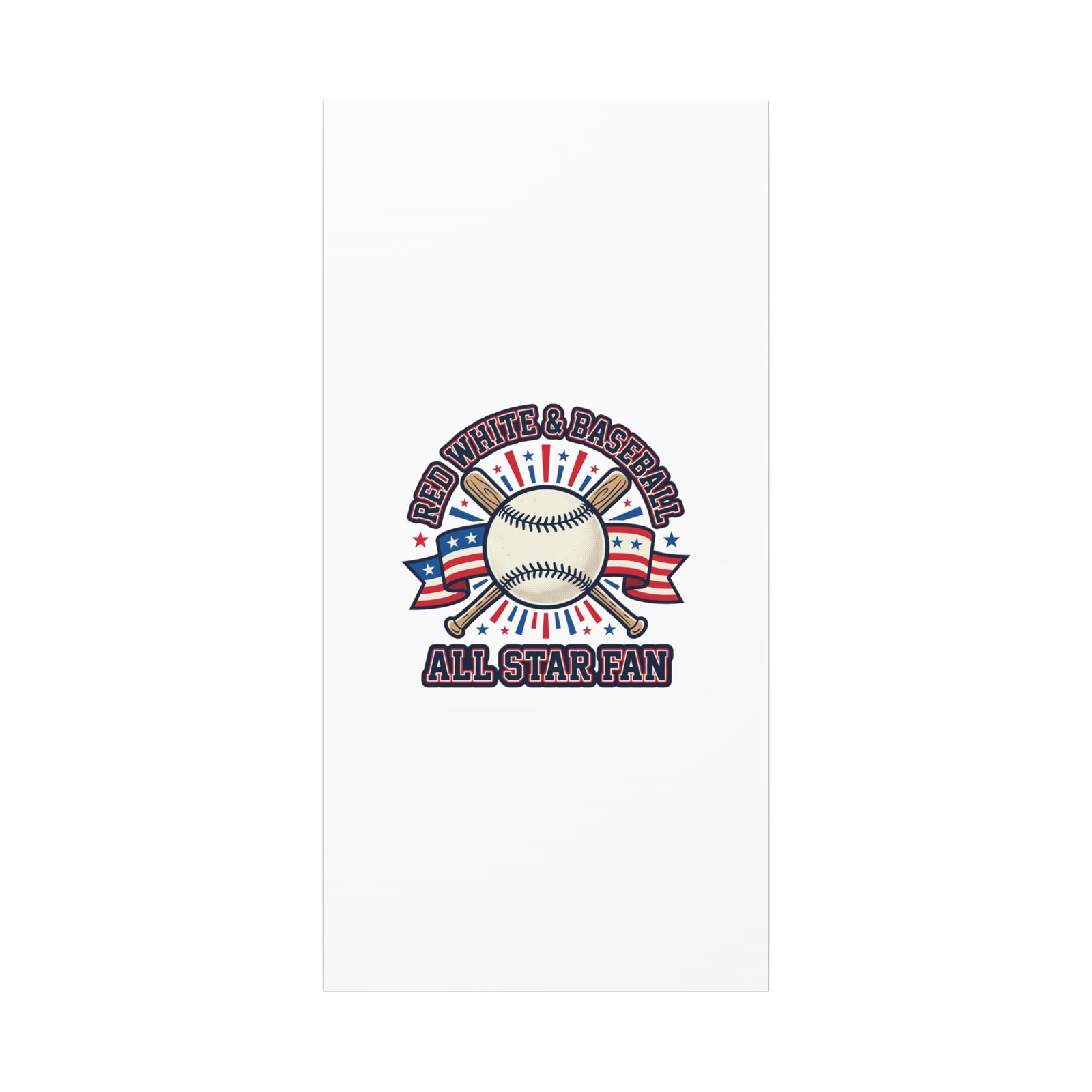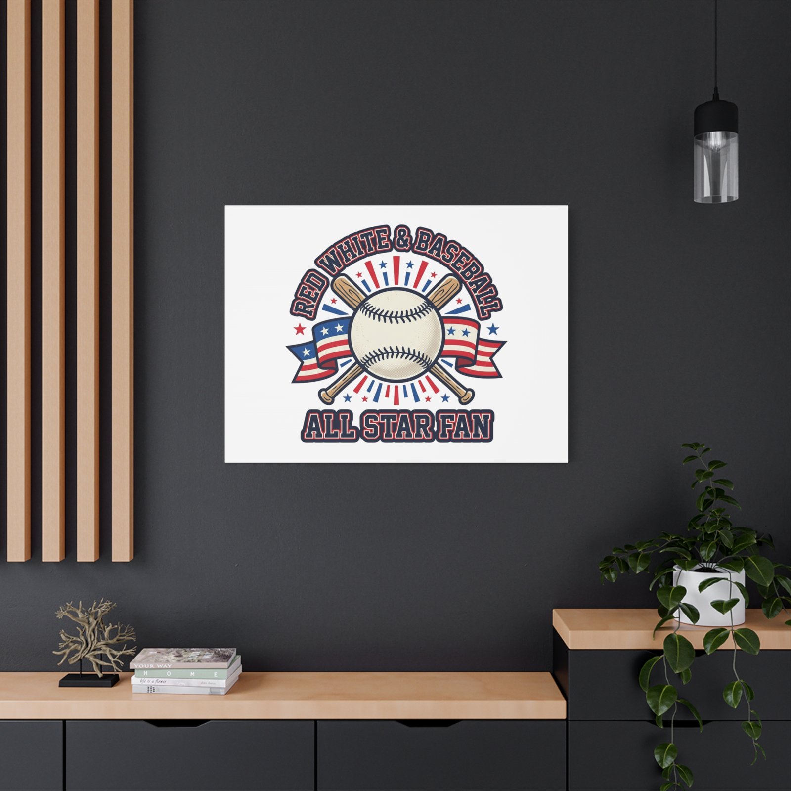 Patriotic Baseball All Star Fan Canvas | Vintage Red White Blue Ballpark Art