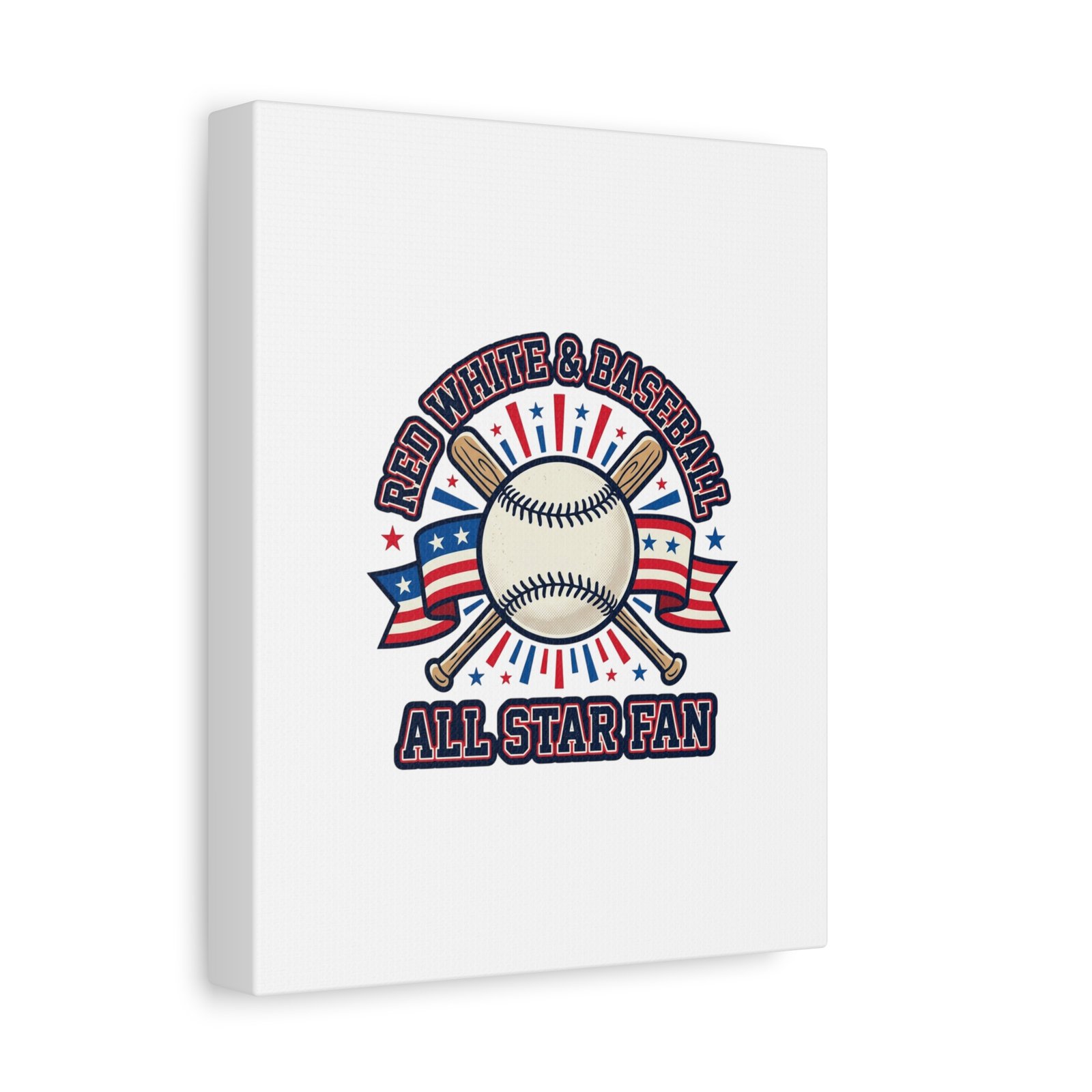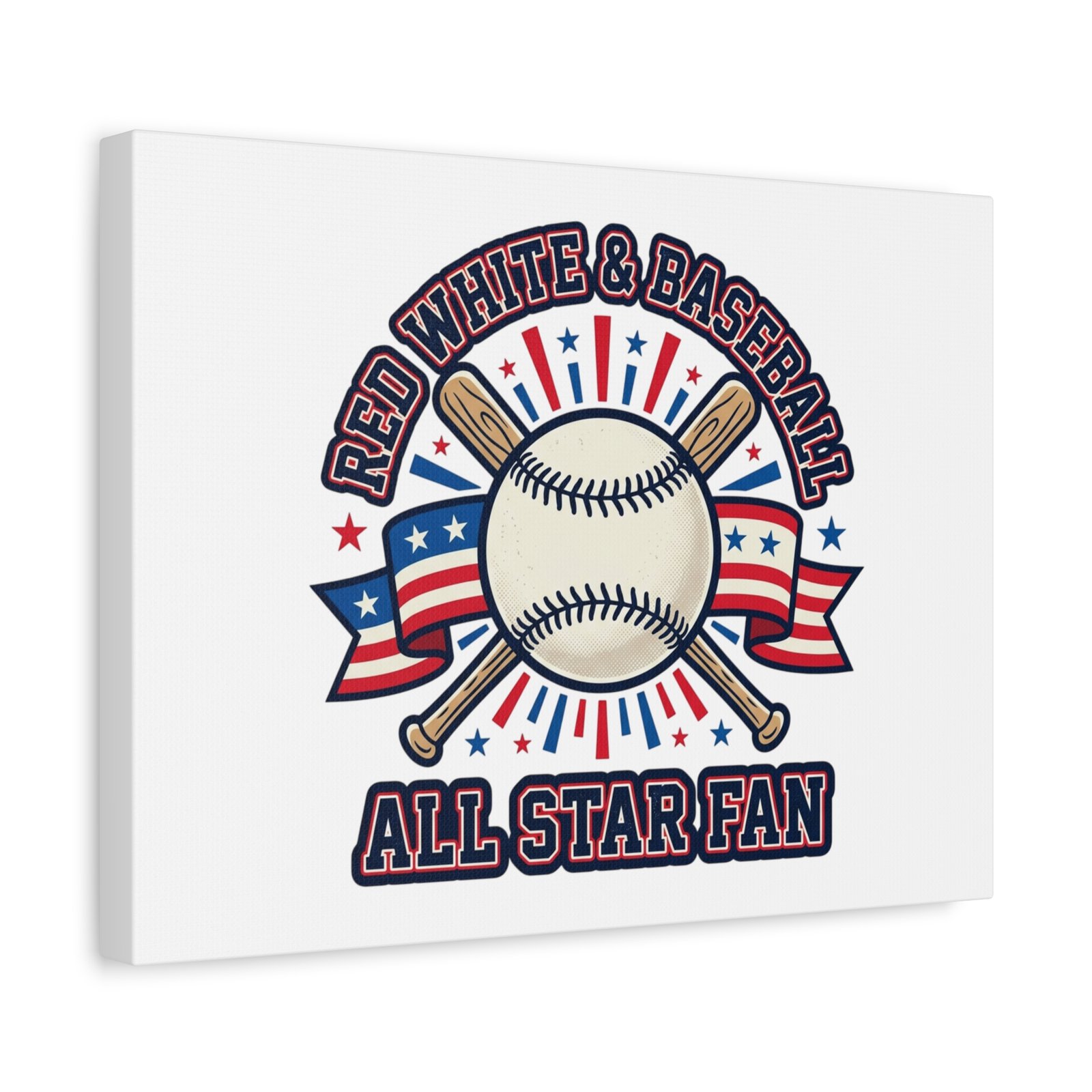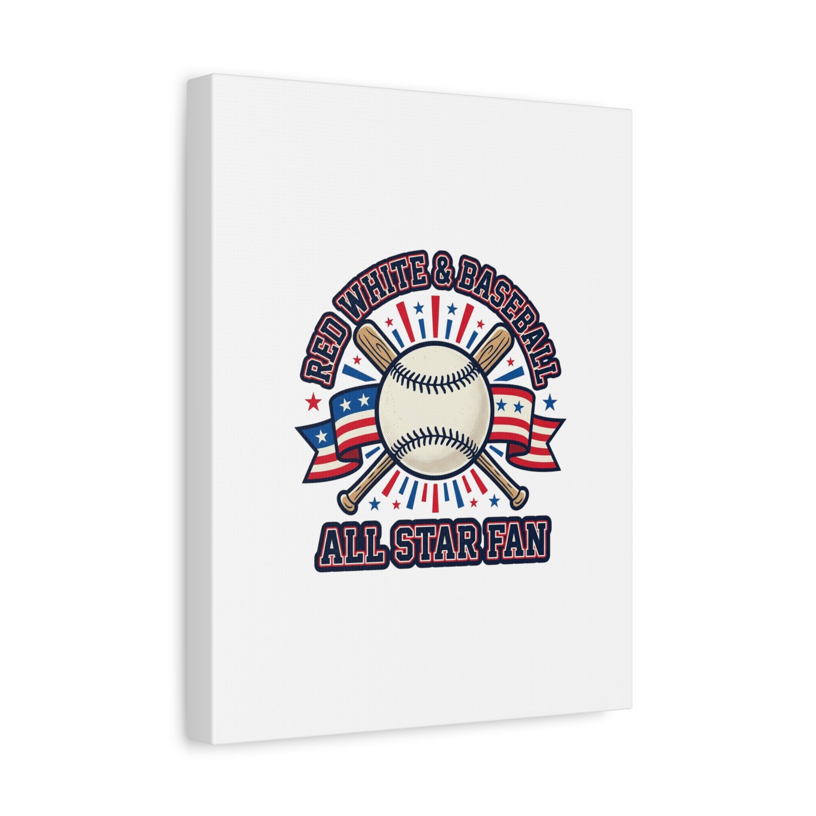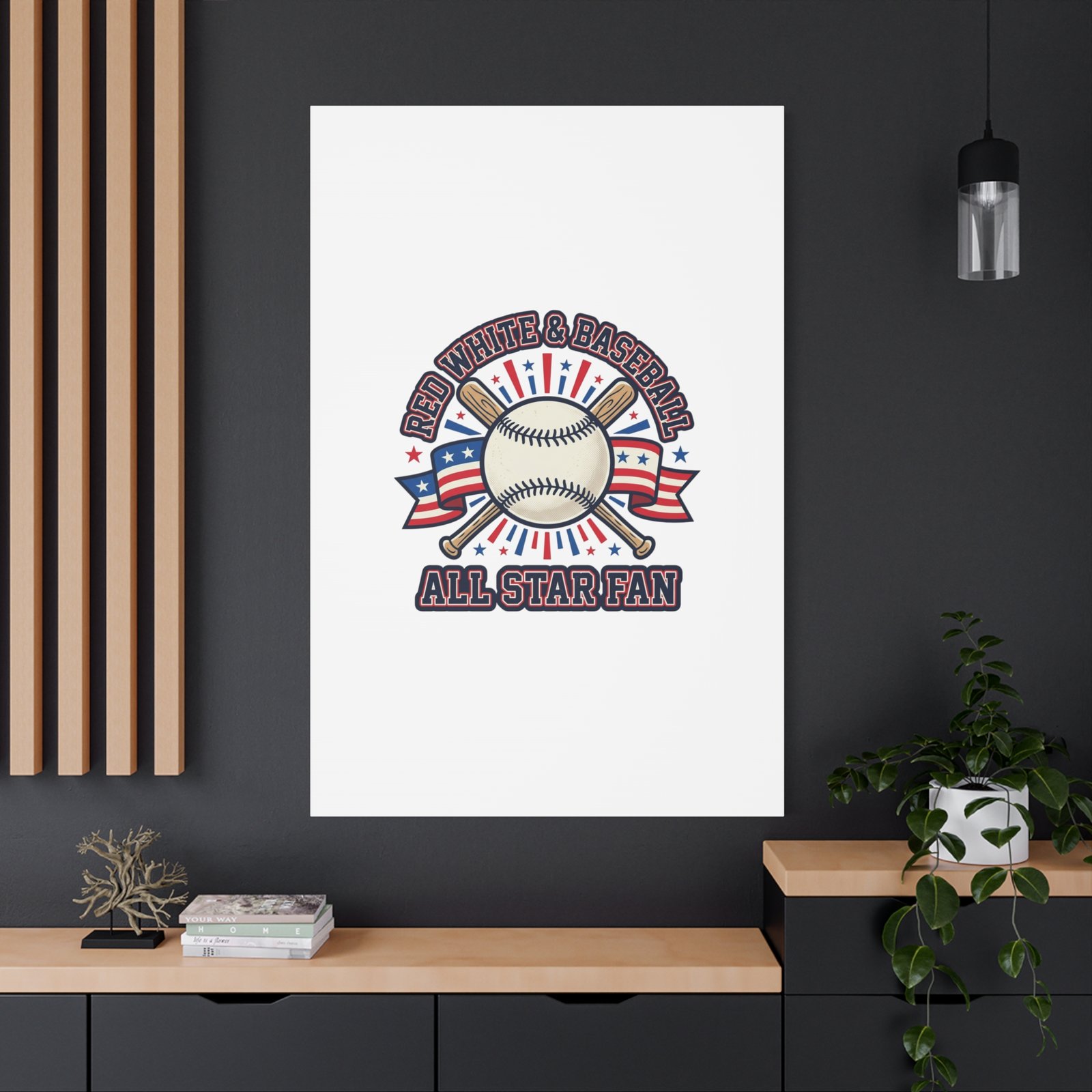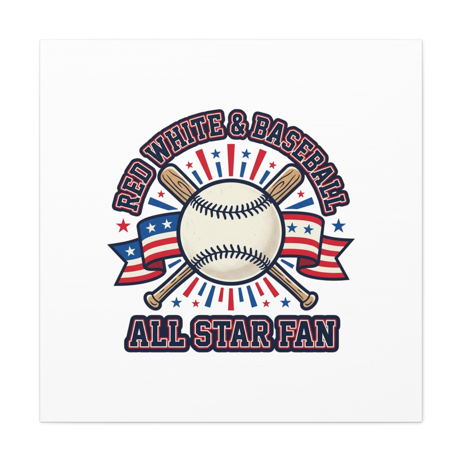 Patriotic Baseball All Star Fan Canvas | Vintage Red White Blue Ballpark Art
