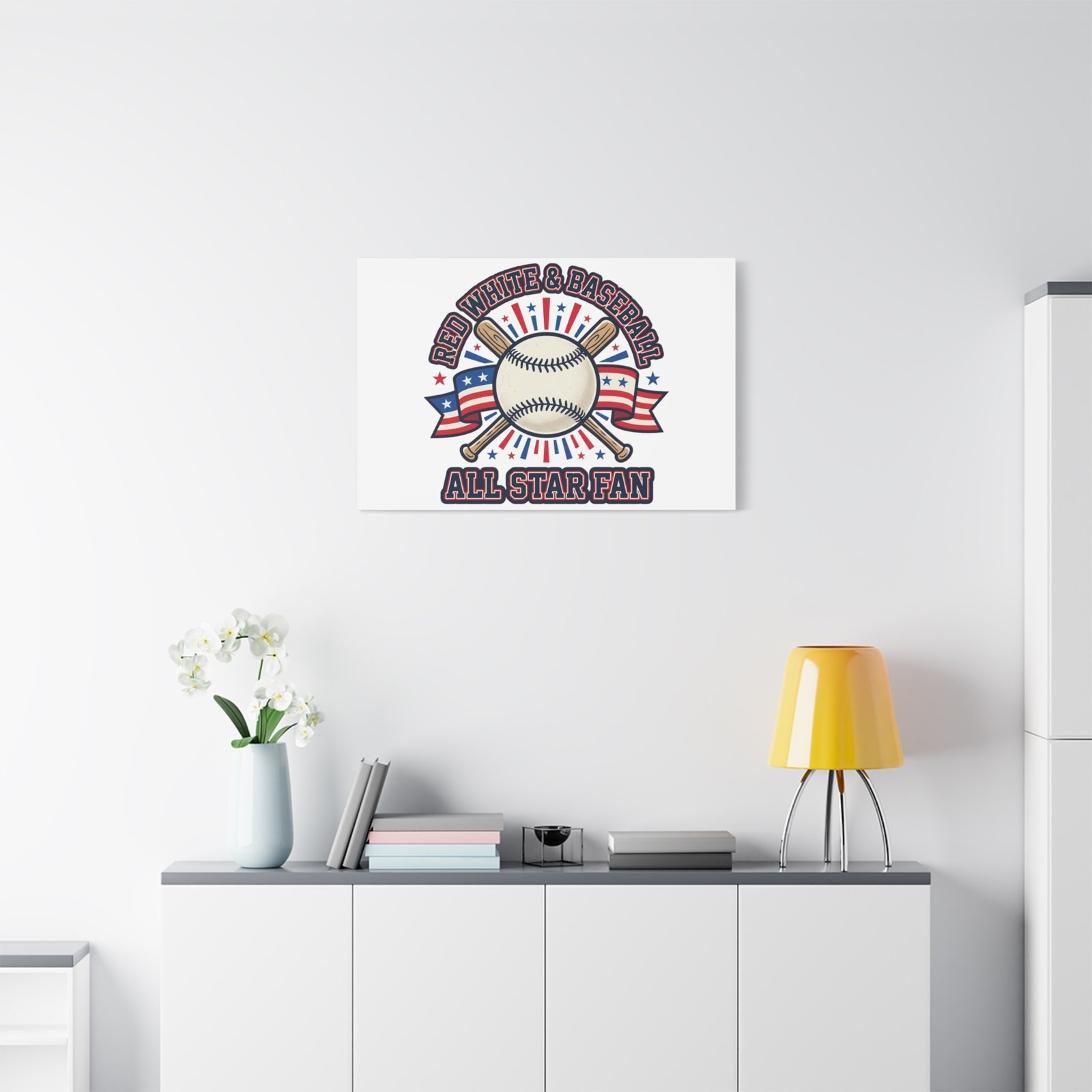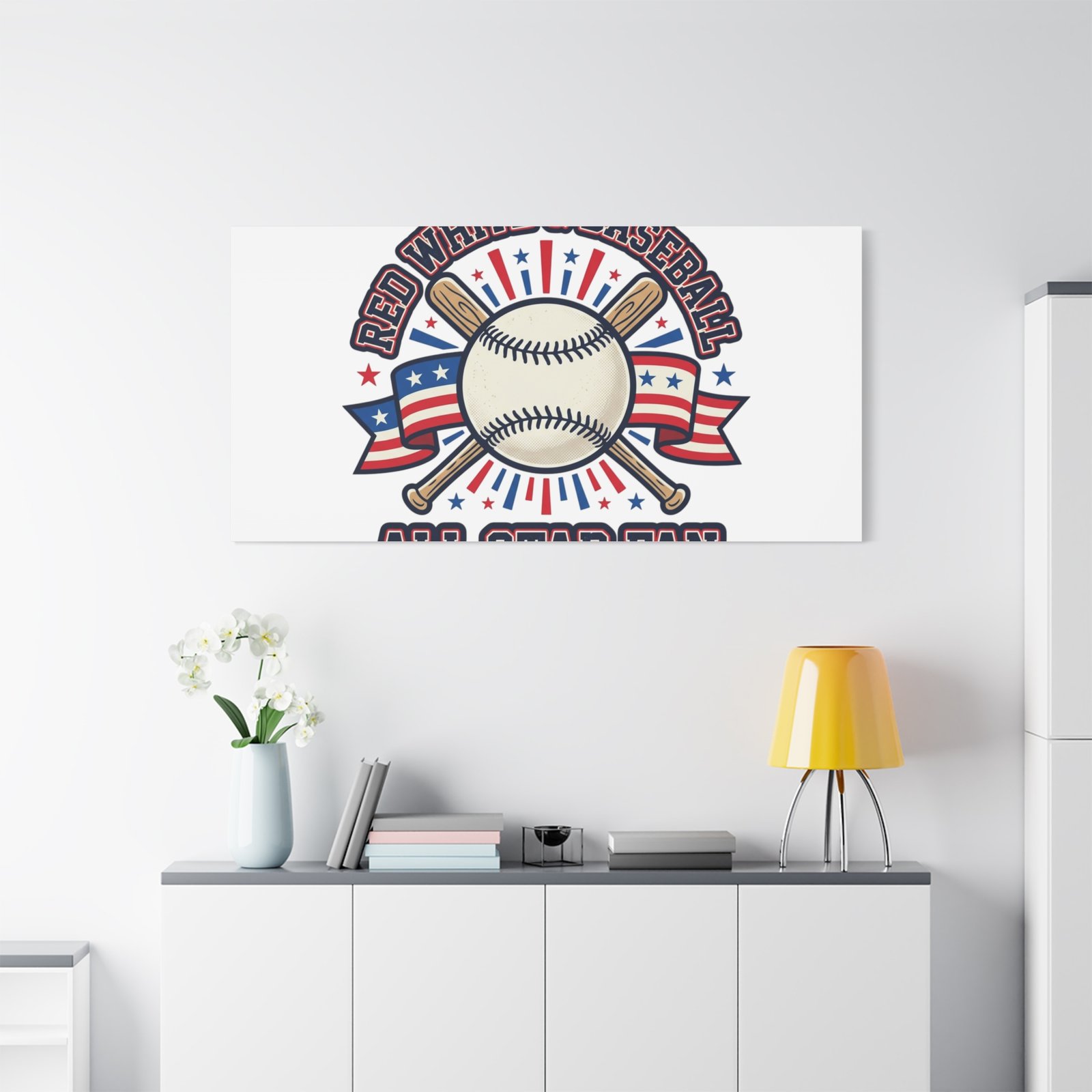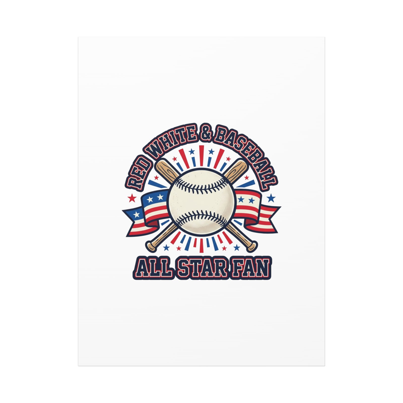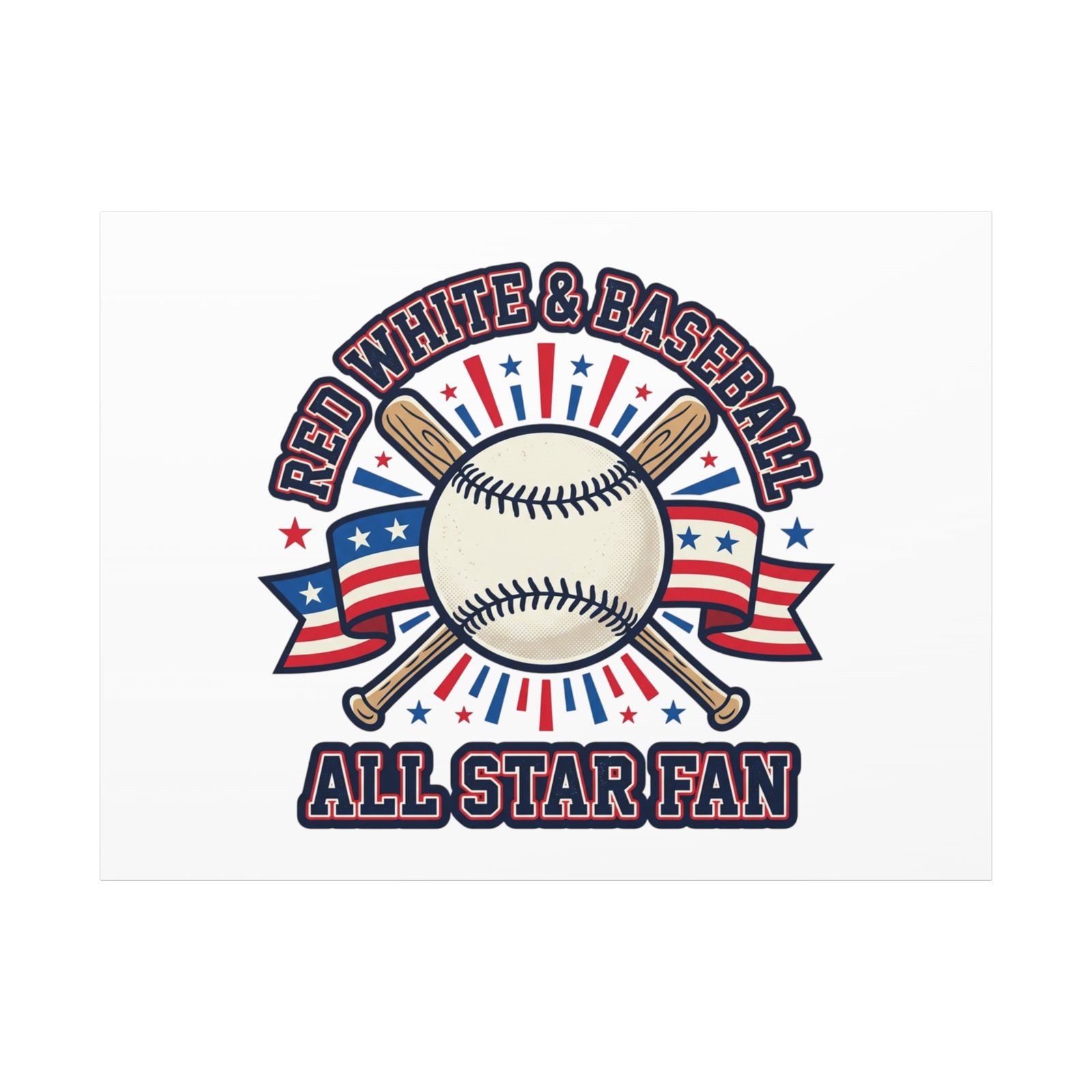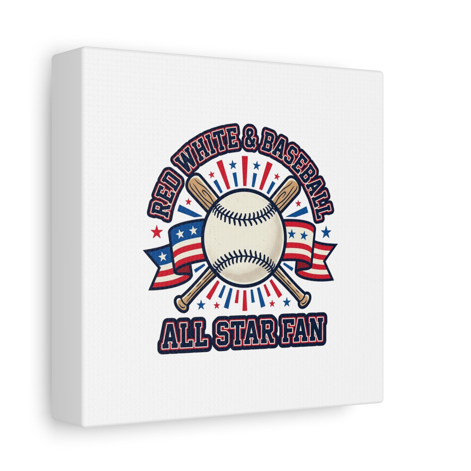 Patriotic Baseball All Star Fan Canvas | Vintage Red White Blue Ballpark Art