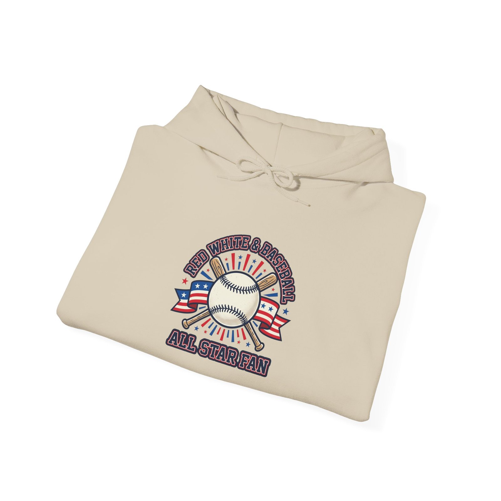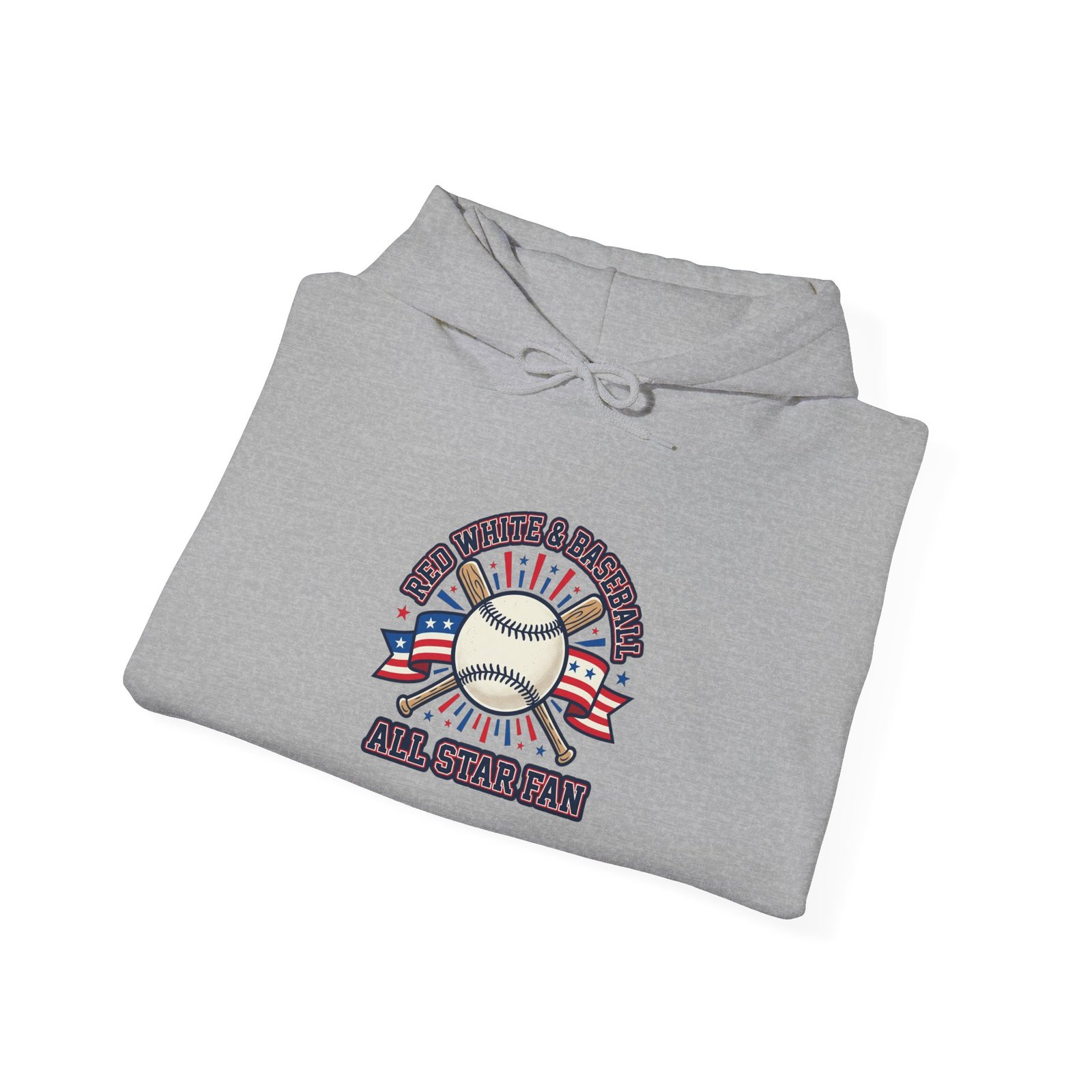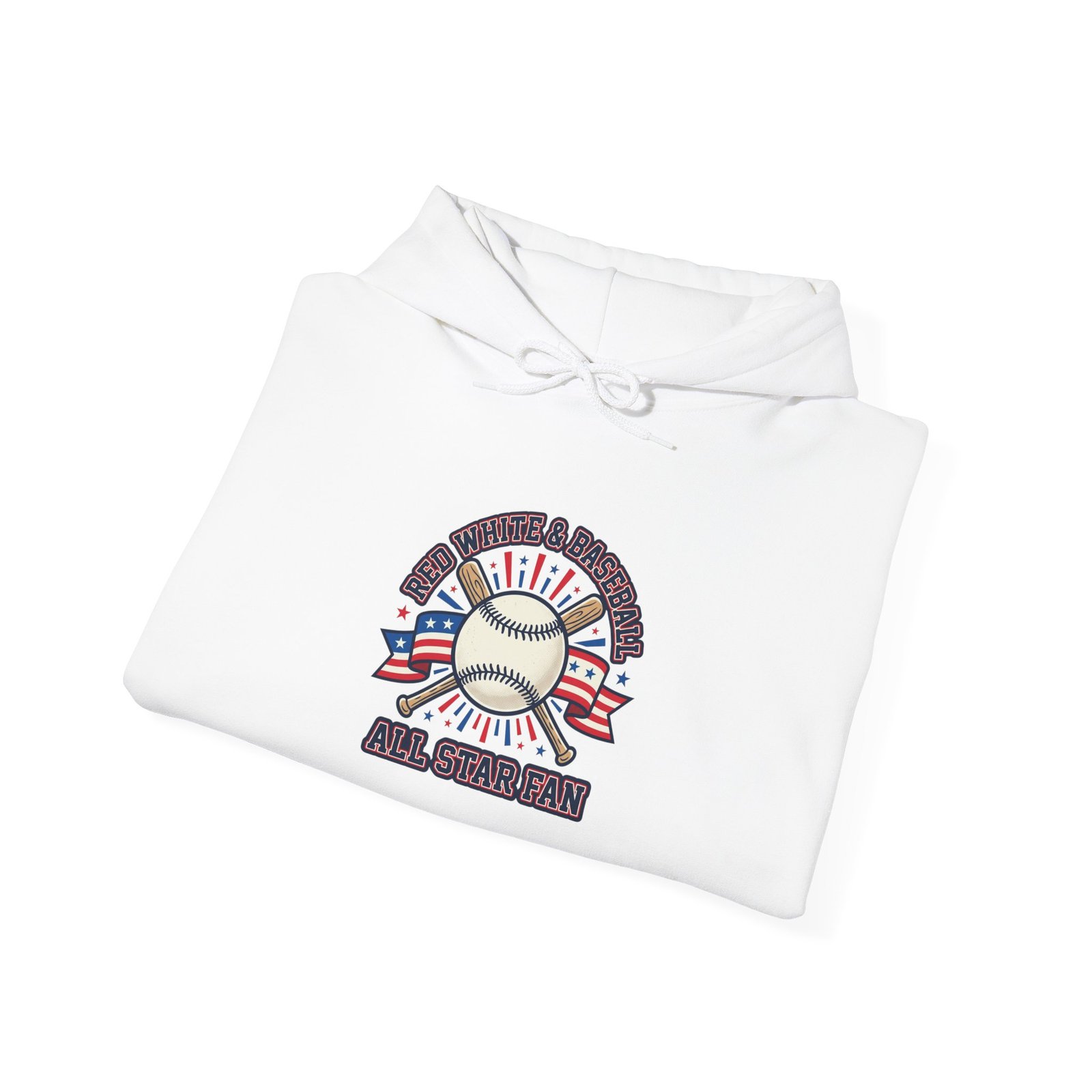Retro ballpark hoodie combining a vintage baseball emblem with patriotic red, white and blue accents. The front artwork features a classic baseball motif and athletic typography that channels a nostalgic ballpark aesthetic—meant for cheering at games, watch parties, or everyday spirited wear. It reads as part of the patriotic baseball trend with a structured, heritage sports vibe rather than team-specific branding.