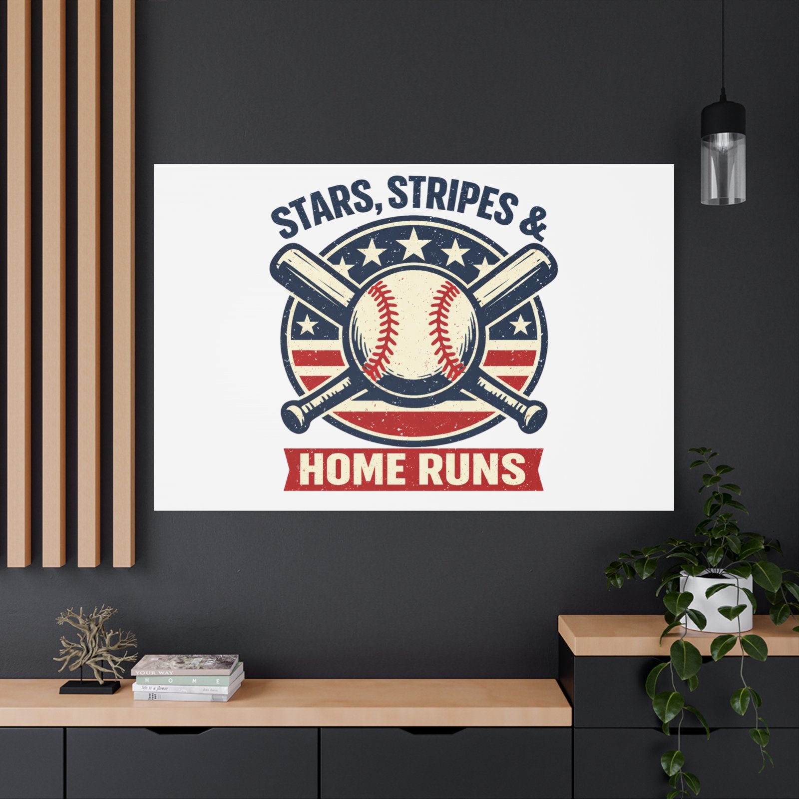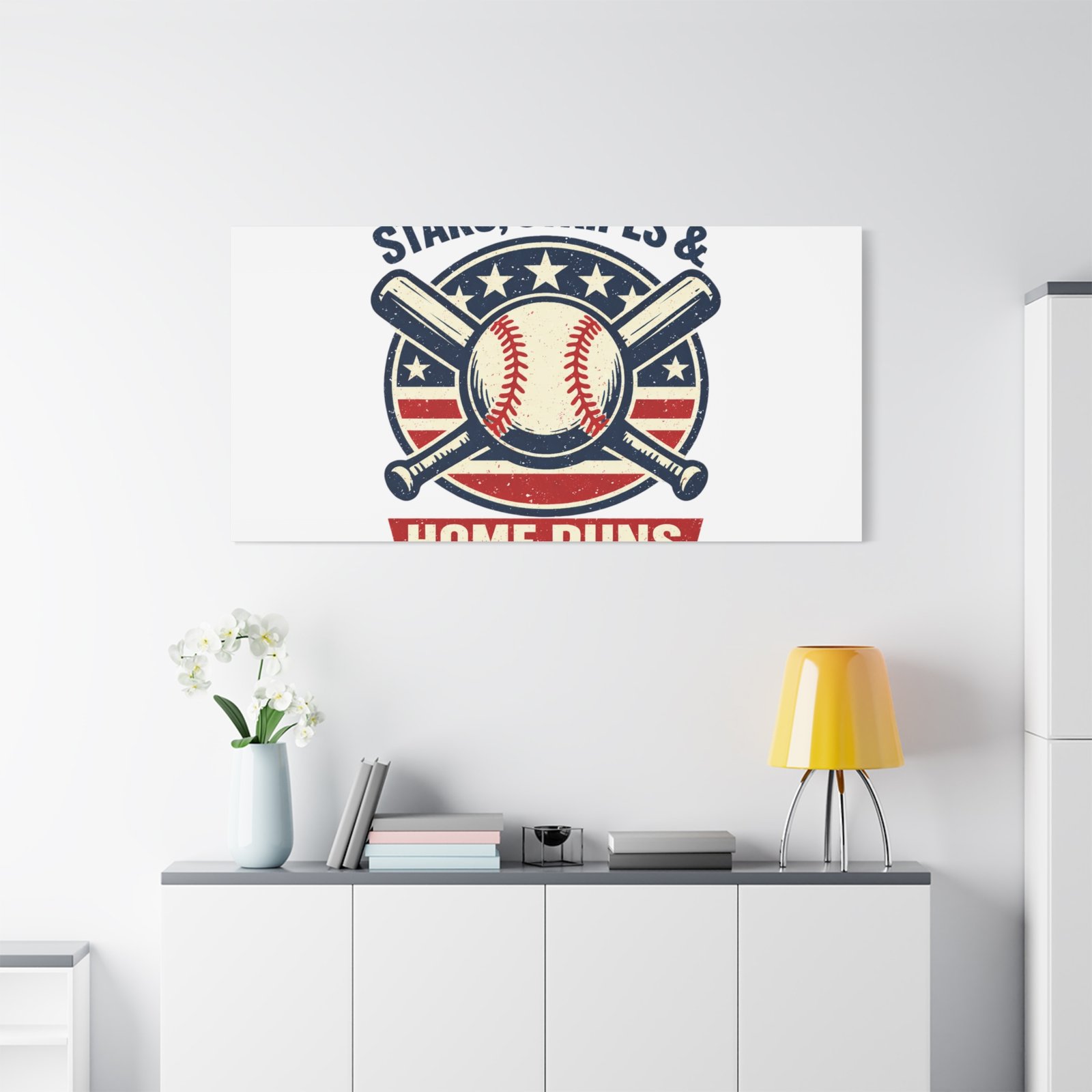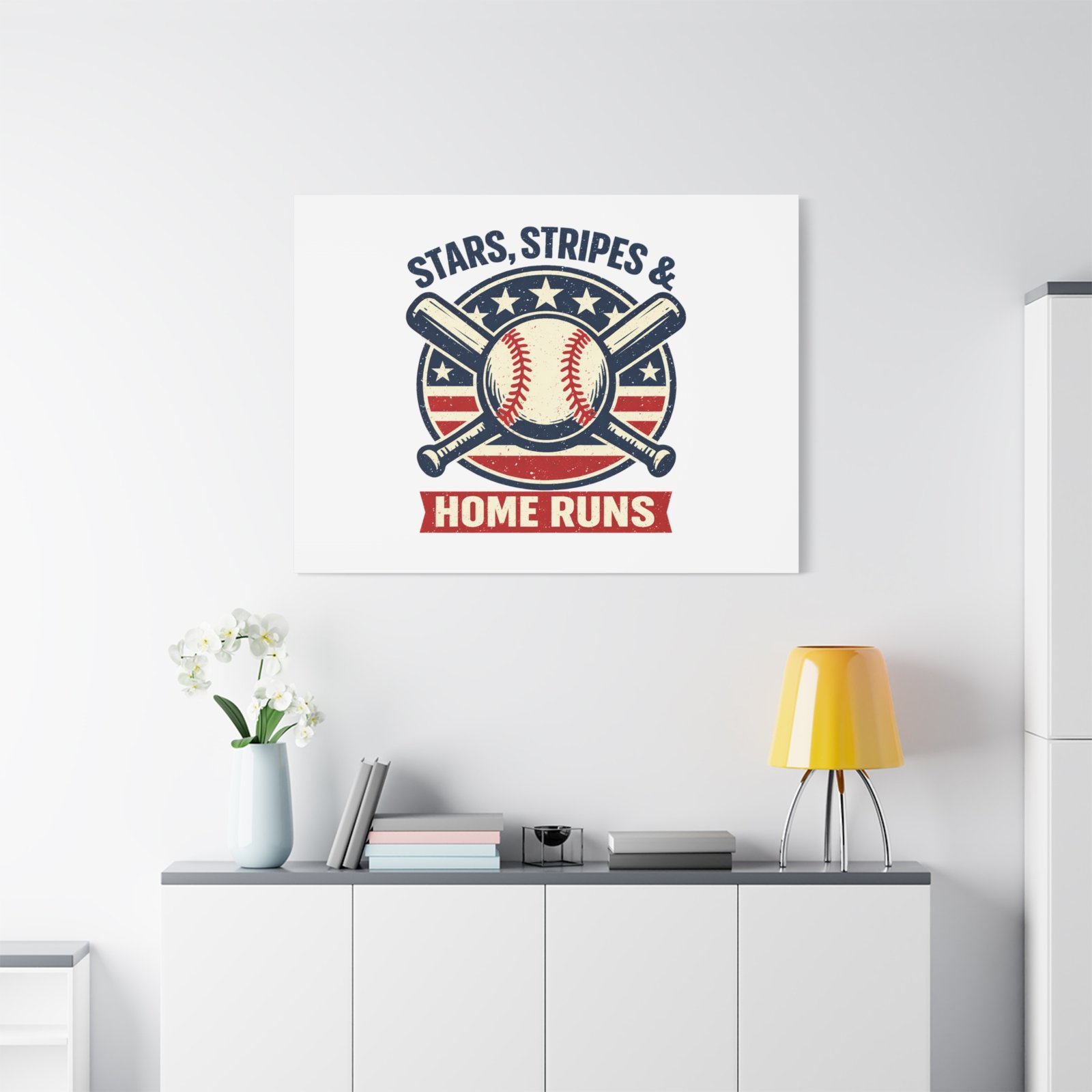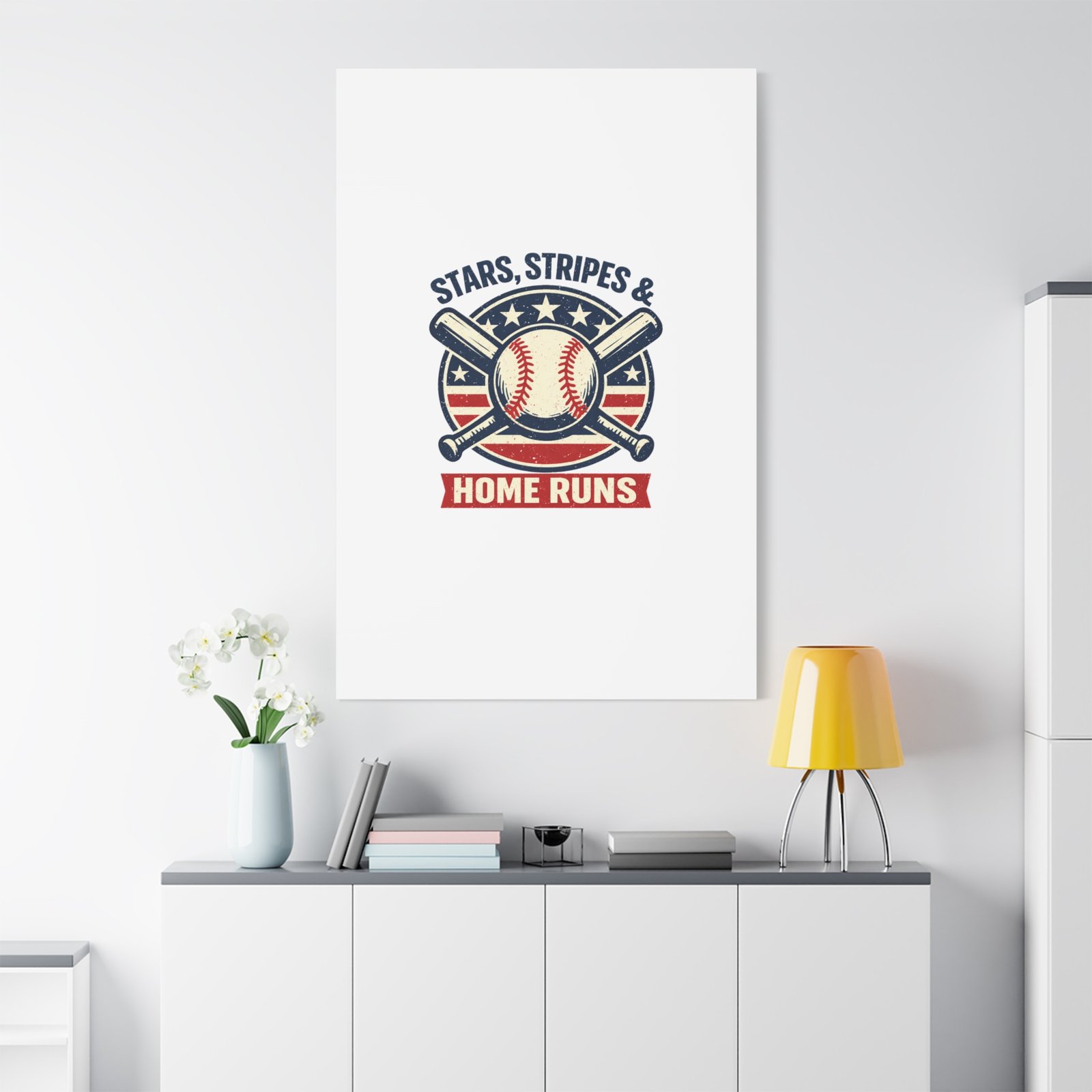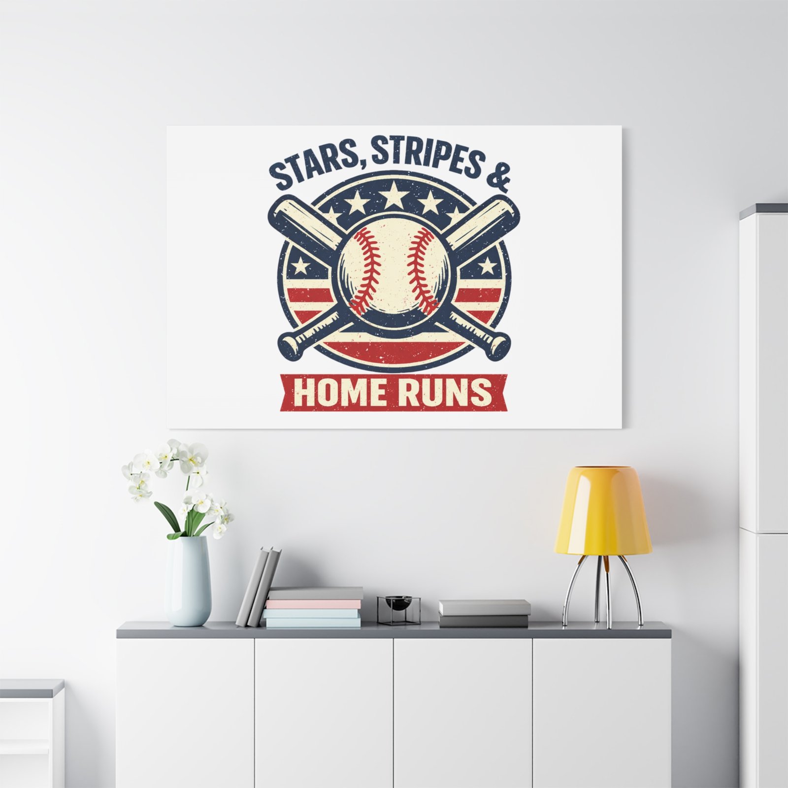 Stars, Stripes & Home Runs Canvas | Patriotic Baseball Vintage Graphic